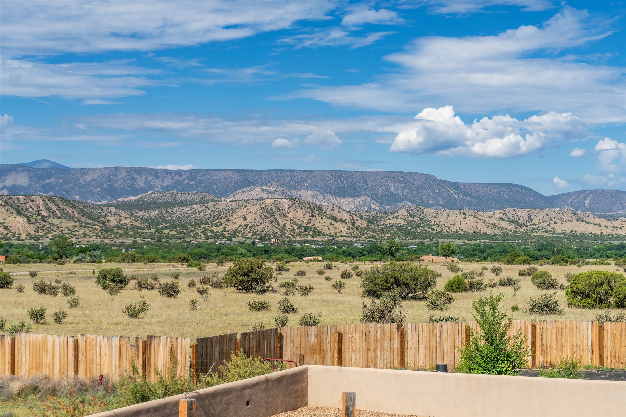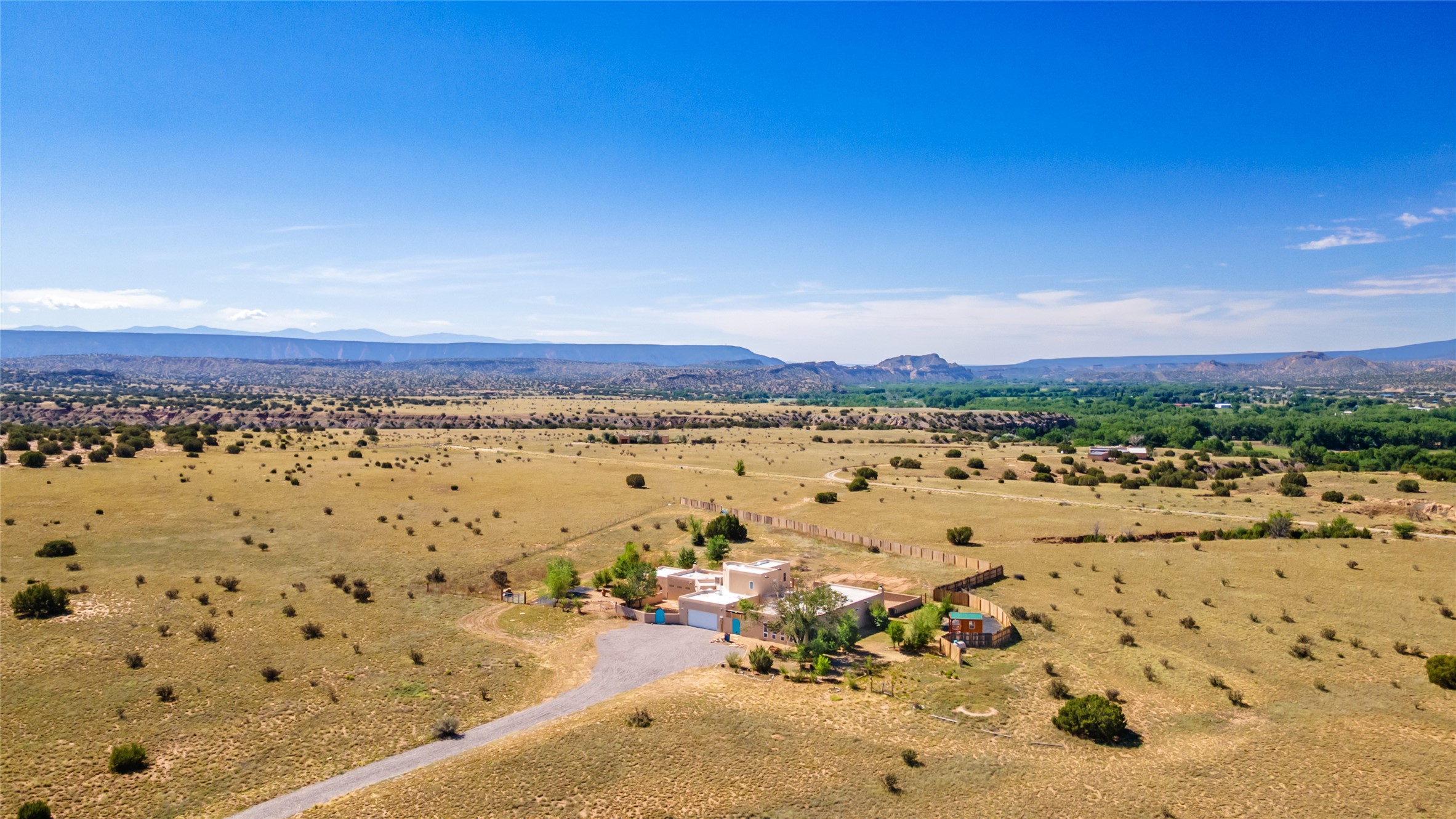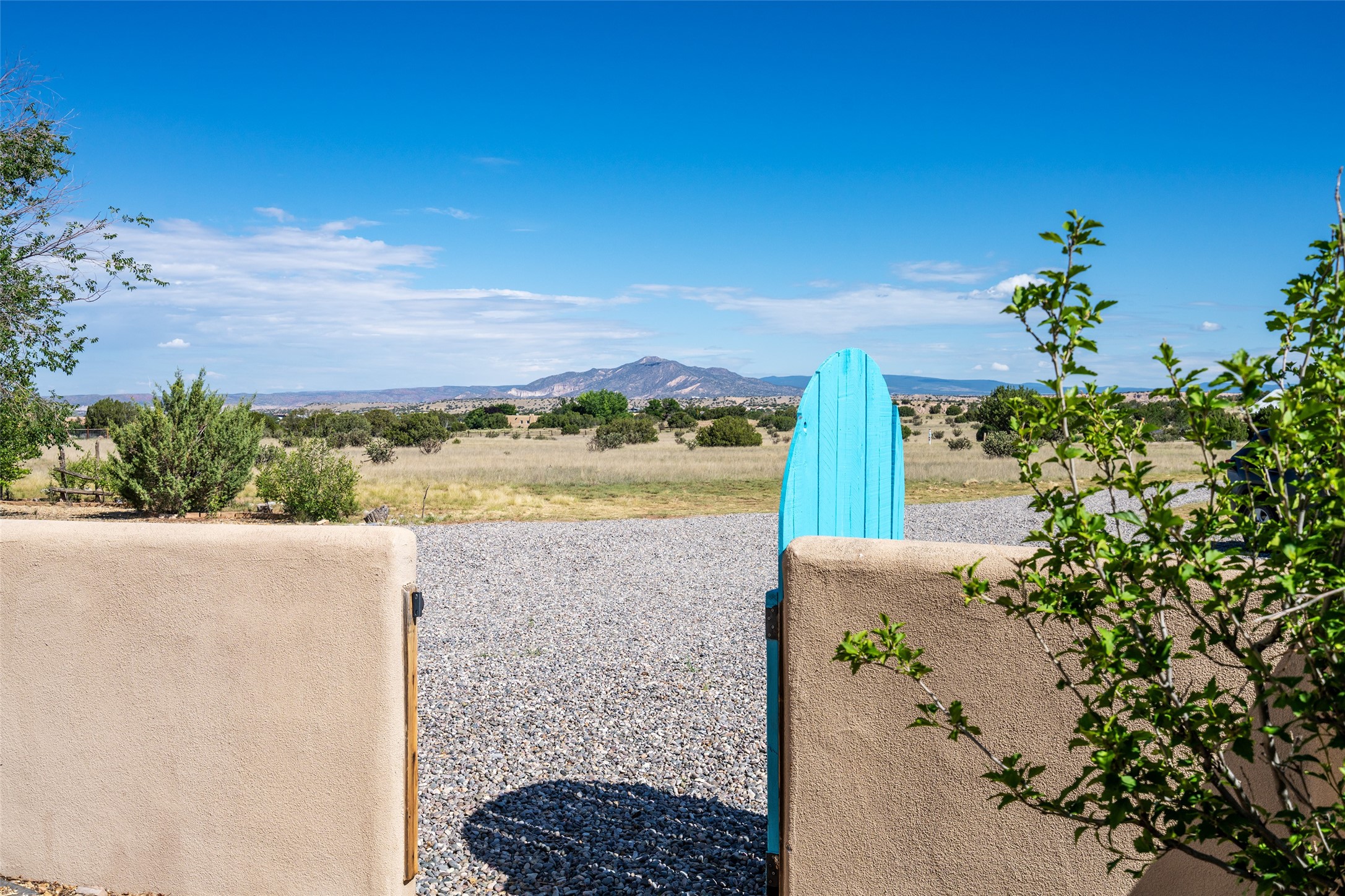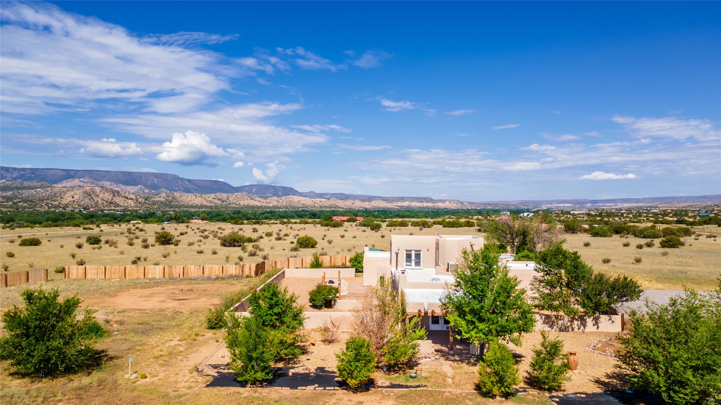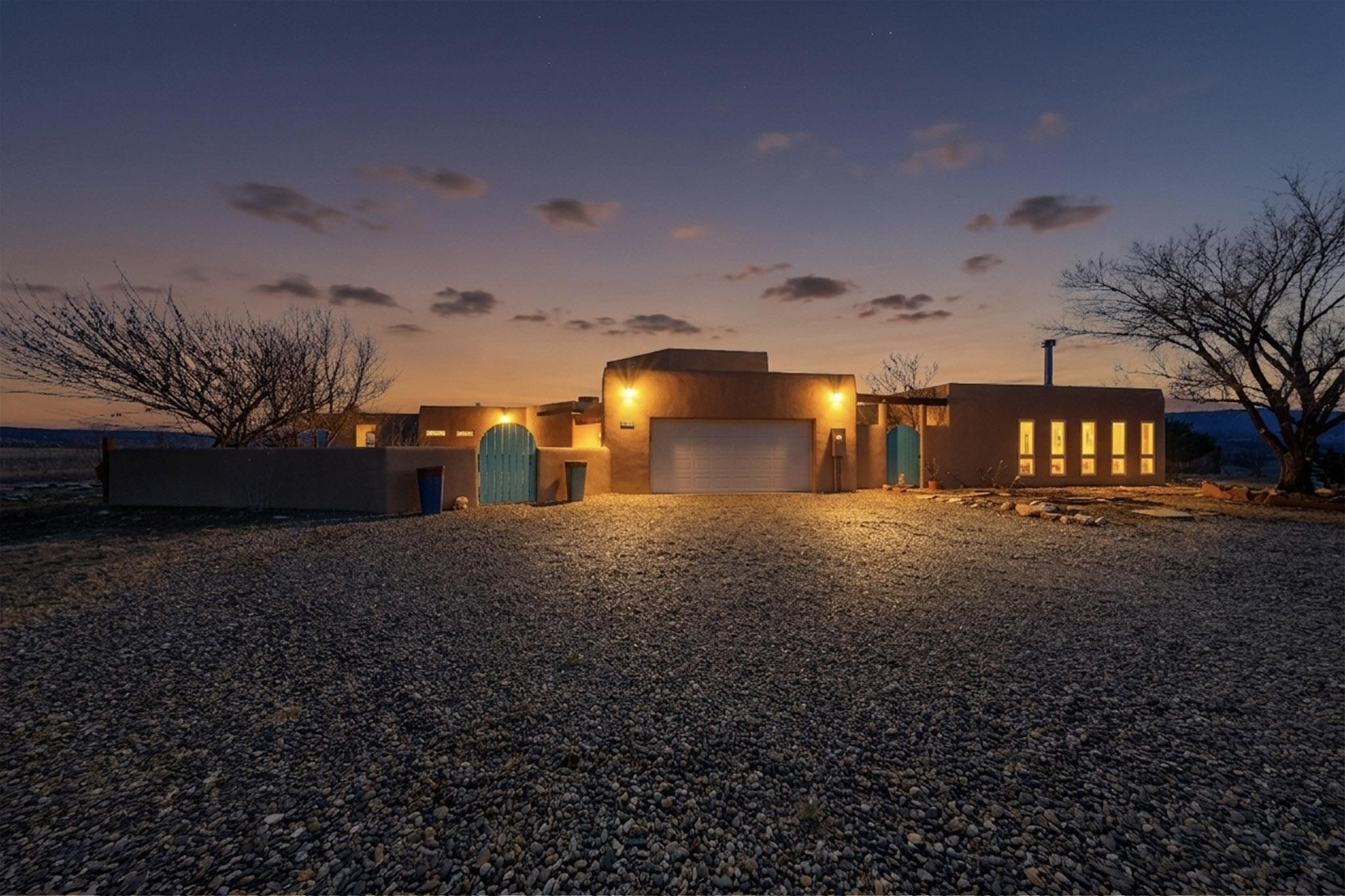 Ideally located for an easy commute to Espanola, Los Alamos and Santa Fe, this classic New Mexico-style home in the Mesa's de Medanales subdivision with No HOA! offers timeless Southwestern character, sweeping mountain views, and exceptional indoor-outdoor living. Set on five peaceful acres with horses welcome and surrounded by open vistas in every direction, the property provides an ideal balance of privacy, space, and convenience just minutes from Abiqui Lake, national forest, and Ojo Caliente Mineral Springs and Spa. At just under 4,000 square feet this mostly single level home features three spacious ensuite bedrooms & four baths. The main-level fourth bedroom/bonus room is a large, light-filled space complete with a wood stove and cedar closet, offering excellent versatility as an art studio, recreation room, family room or forth bedroom. Throughout the home, classic Southwestern details create warmth and authenticity, including brick floors, beamed ceilings, nichos, radiant heat, multiple wood stoves, and three traditional kiva fireplaces. A generous eat-in kitchen serves as the heart of the home and opens to a formal dining room, while a dedicated office or flex space supports remote work, hobbies, or creative pursuits. All bathrooms have been tastefully remodeled with custom finishes and walk-in showers, enhancing both comfort and luxury. Outdoor living is a true highlight, with multiple serene courtyards and expansive exterior spaces designed for year-round enjoyment. A substantial covered portal with a traditional kiva fireplace invites relaxing evenings, entertaining, or simply taking in the remarkable high-desert surroundings. Recent updates add peace of mind and modern convenience, including remodeled bathrooms throughout, new stucco, updated electrical and lighting, fresh driveway gravel, security system and a water filtration and softener system.