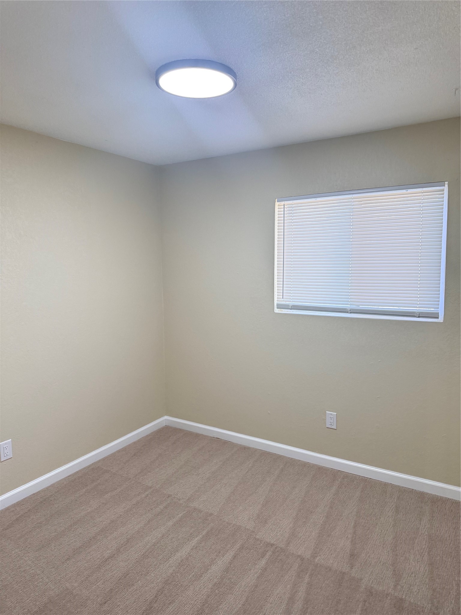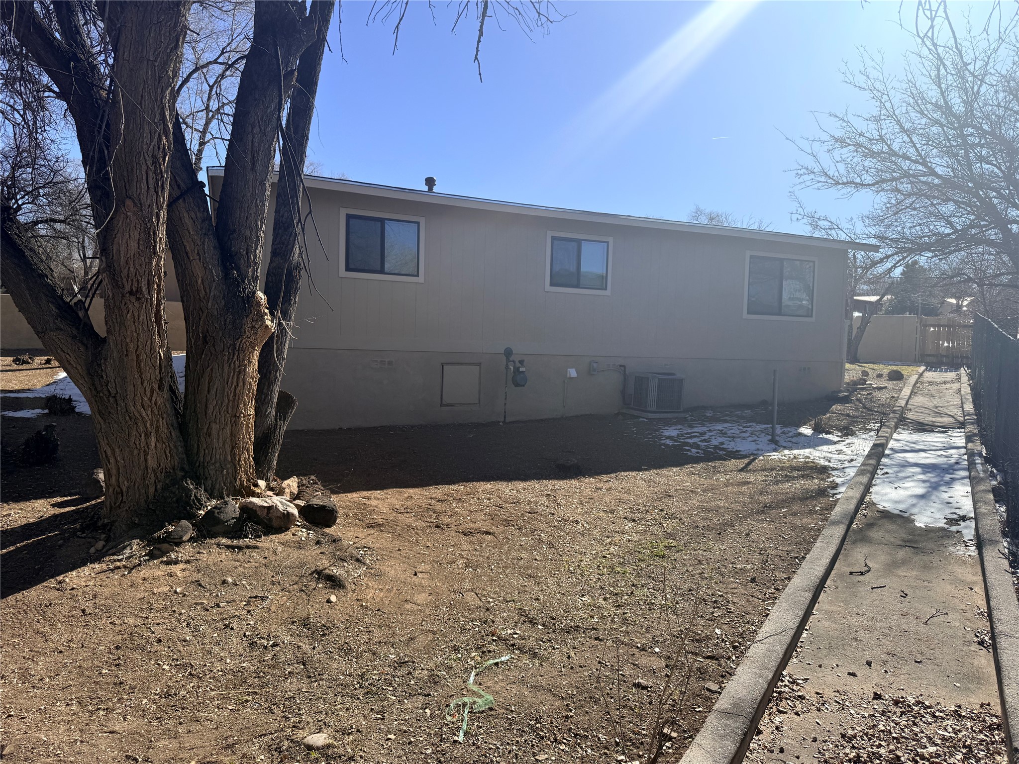 Single Story Home - 4 bedrooms, 2 baths located at end of cul-de-sac. Fenced yard with access to walking trail in rear. New paint, flooring, cabinets, solid surface countertops, carpet, fixtures. Refrigerated air. Stainless appliances with stackable washer dryer located in kitchen area. Fridge will be provided. Large storage/workshop room accessed in backyard.
