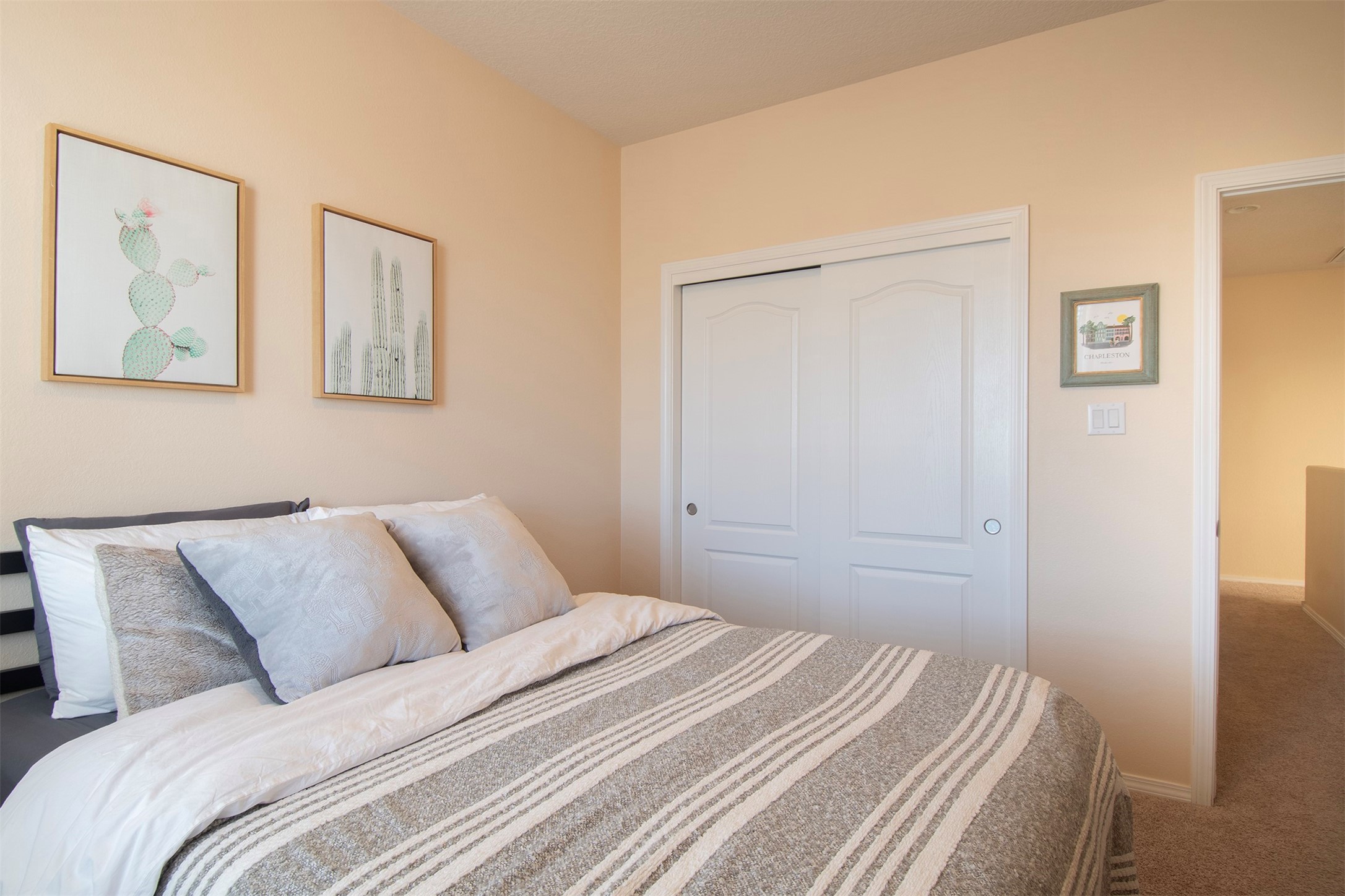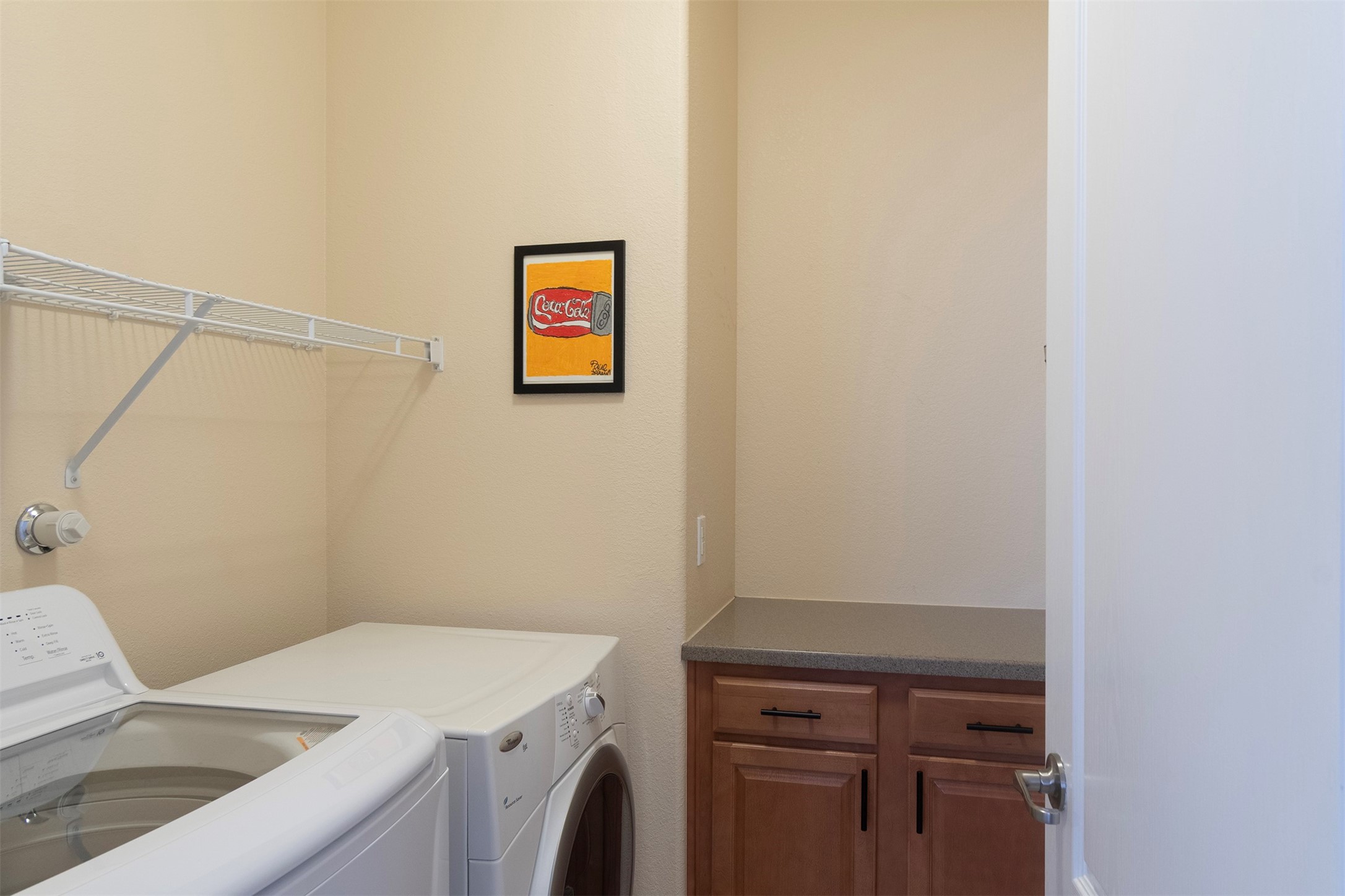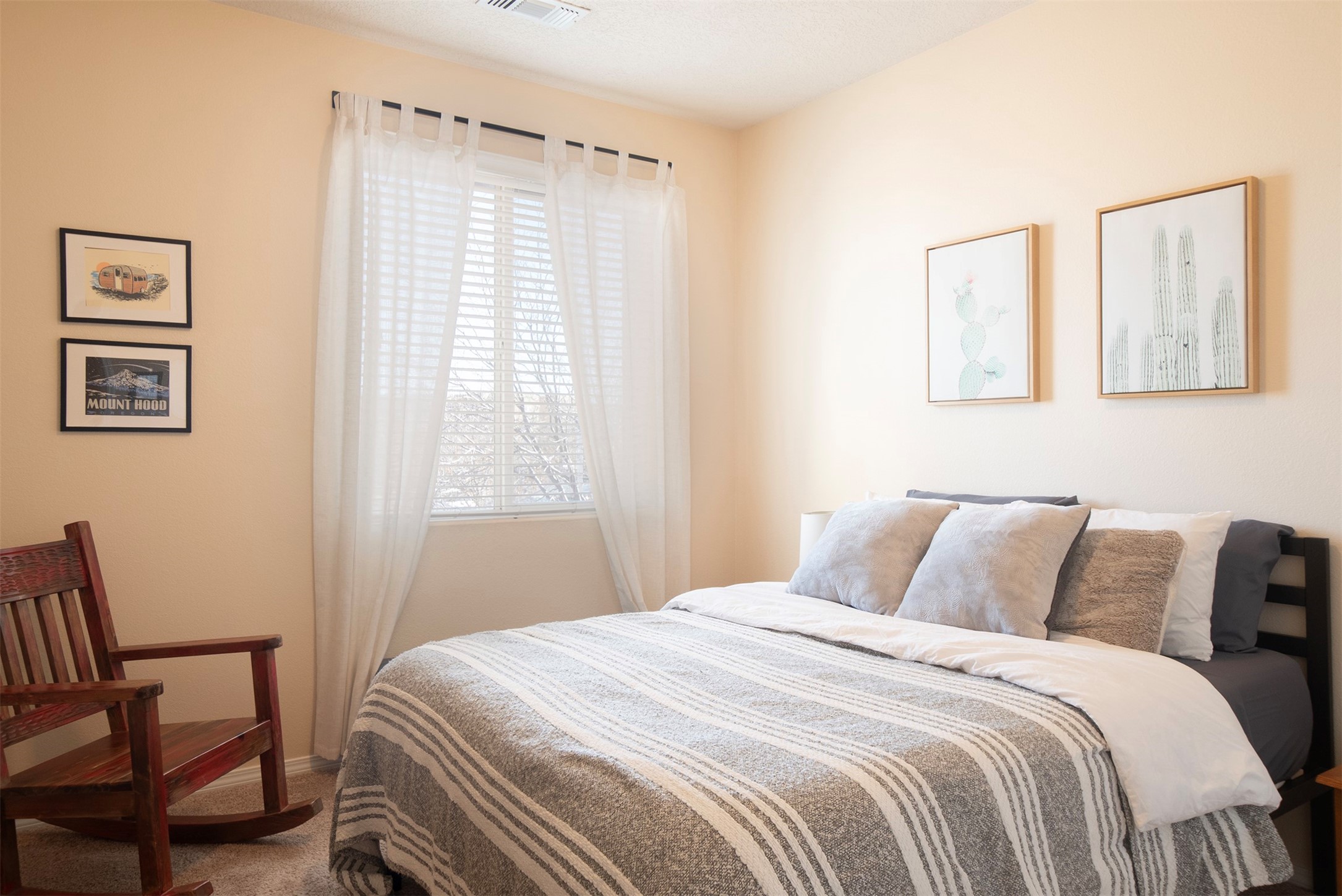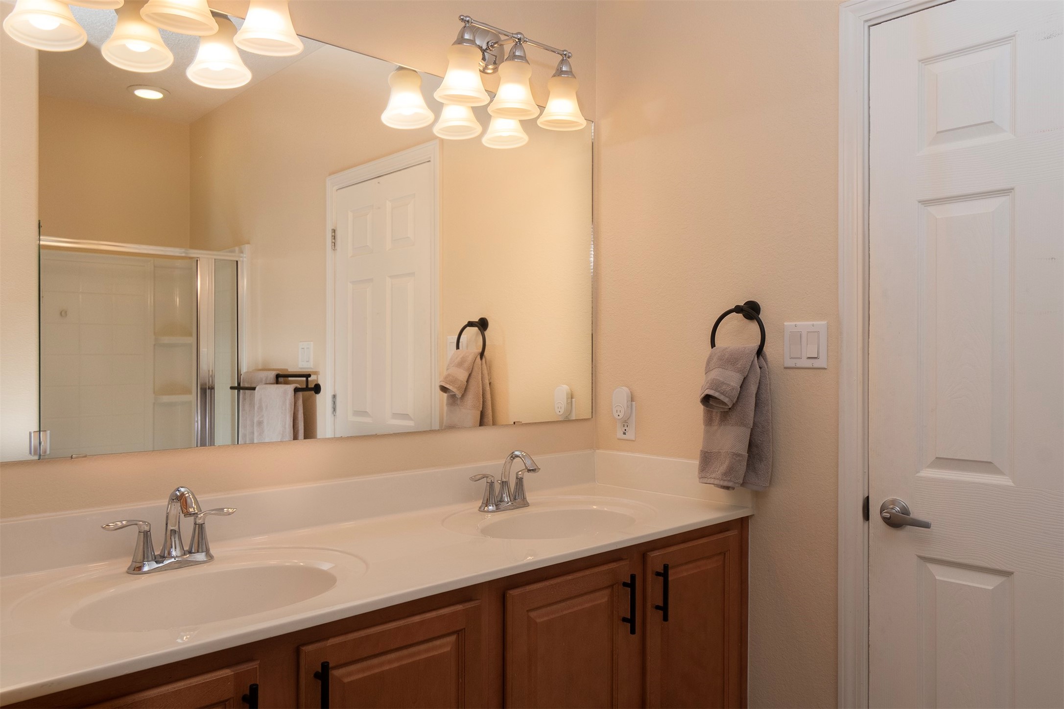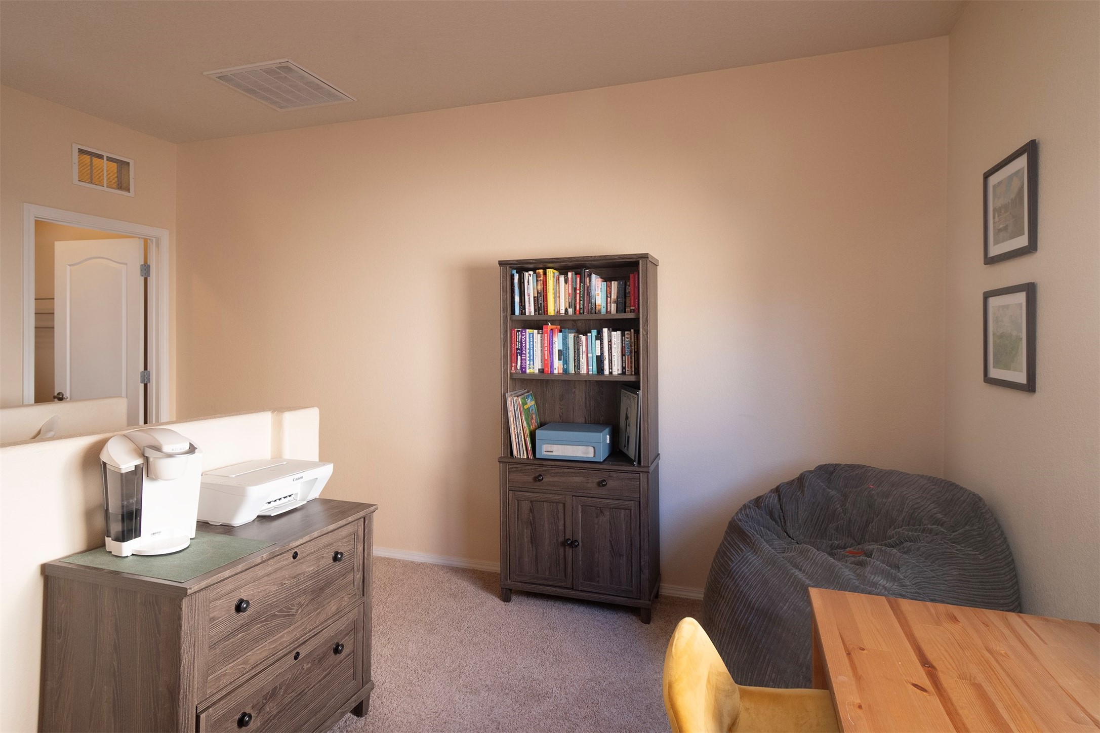 RANCHOS SANTOS MEDITERRANEAN MODERN. Modern Living in Ranchos Santos Condos of Santa Fe. Tucked away on a cul-de-sac, this Spanish Mediterranean style 2 Bed, 2 Bath, 2 Car garage condo has a convenient and beautiful lifestyle with nearby conveniences to grocery stores, restaurants, and shopping centers. This move-in ready two floor plan features with 18' ceilings in the Living Room that give an elevated and airy feel to the whole space. Great kitchen with modern appliances, wood cabinetry, matte black hardware, solid countertops. Open floor-plan with a first floor Bedroom Suite with private, enclosed patio, en-suite bath with separate shower, soaking tub and walk-in-closet. Upstairs is a second bedroom, full bath, laundry room and a fantastic open loft. The large loft space is ideal for home office, flex and remote workers space, - ideal for office, yoga workout area, or second living area. The garage offers great space for storage. Features include refrigerated air conditioning, 2 car direct entry garage, solid surface kitchen countertops, upgraded cabinets, Dish Washer, and Range, microwave, tile flooring, ceiling fan. Built in 2009 by Centex Homes.