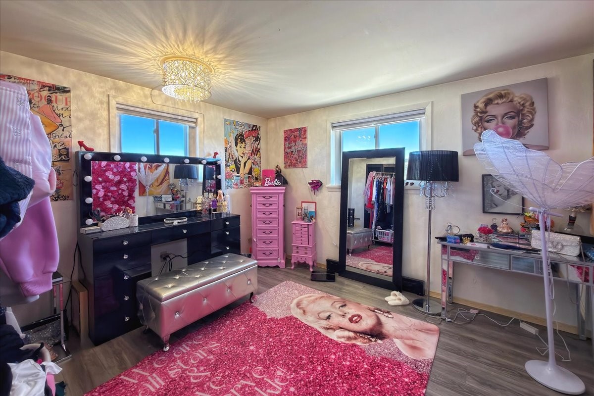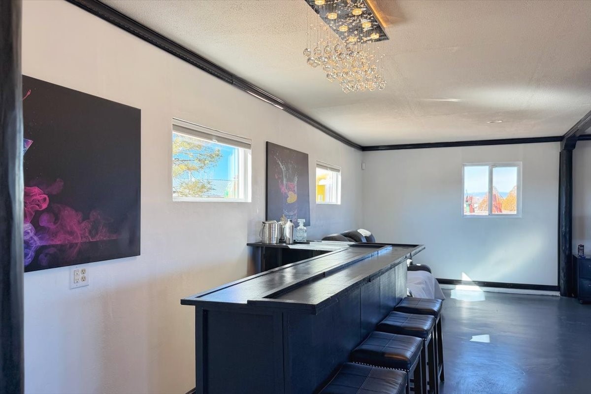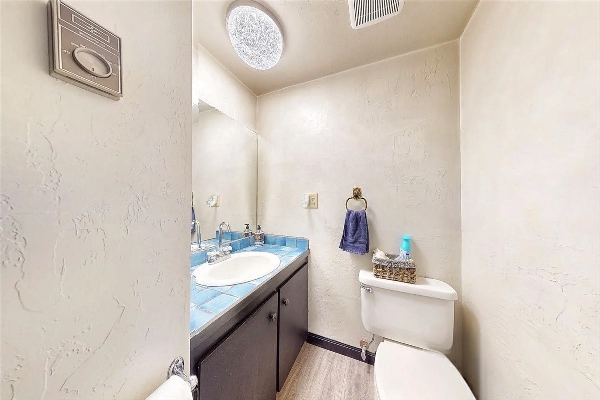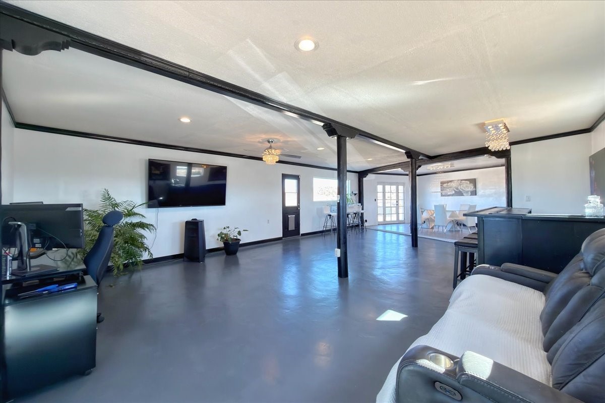Set on 1.5 private acres with stunning 360-degree views, this beautifully updated home blends sparkle, warmth, and comfort in a peaceful cul-de-sac setting. Featuring 3-4 bedrooms and 3 bathrooms, the home welcomes you with a grand entry, striking lighting, and an open-concept layout designed for both everyday living and entertaining. The main level offers a spacious living area with a cozy pellet stove, a formal dining space highlighted by a gorgeous light fixture, and a bright kitchen updated with granite countertops, a shimmering backsplash, and picturesque views from the sink. A conveniently located laundry room and half bath add ease, while a bonus room or bedroom showcases a beautiful wood-burning fireplace for extra charm. Upstairs, you'll find two generously sized bedrooms with an updated full bath, plus a serene primary suite with an en-suite bathroom and private deck to take in even more breathtaking scenery. Additional features include newer windows, a fenced yard, outbuildings with a detached garage/shop and large shed for storage or projects. The roof and septic system are only seven years old, offering peace of mind. Enjoy quiet country living with easy access to Santa Fe, Espaola, and Los Alamos--privacy, beauty, and convenience all in one sparkling, welcoming home.