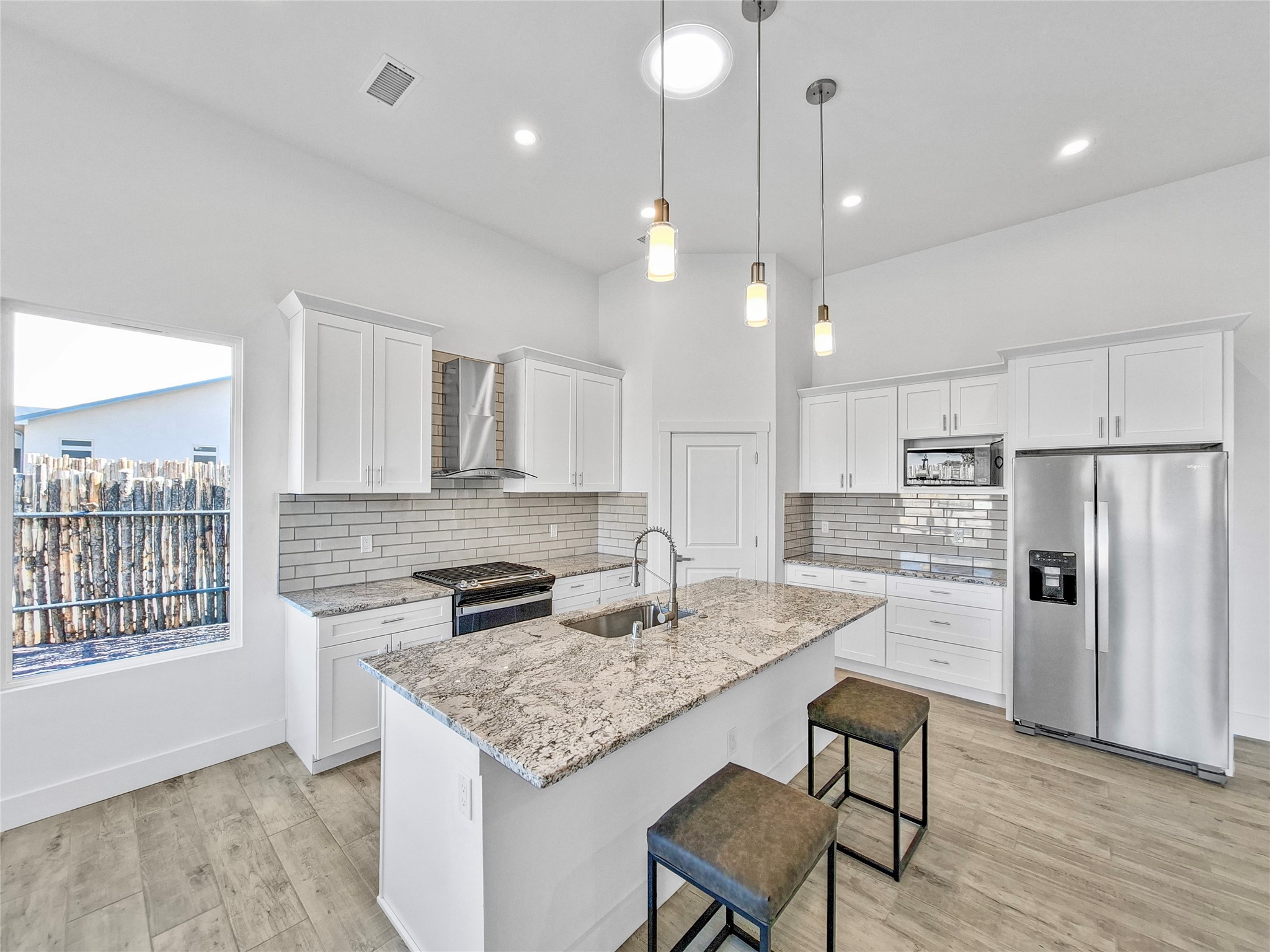 This beautifully laid-out home features high ceilings, solar tubes, and an abundance of windows that flood the interior with natural light throughout the day. The open floor plan creates an inviting flow for both daily living and entertaining, while smart separation of spaces provides a distinct yet connected living area; perfect for gatherings or quiet evenings at home. The primary suite is thoughtfully positioned away from the additional bedrooms, providing peace and privacy. Set on a generously sized lot, the home boasts a large yard with endless potential making it ideal for outdoor entertaining, gardening, or enjoying views.