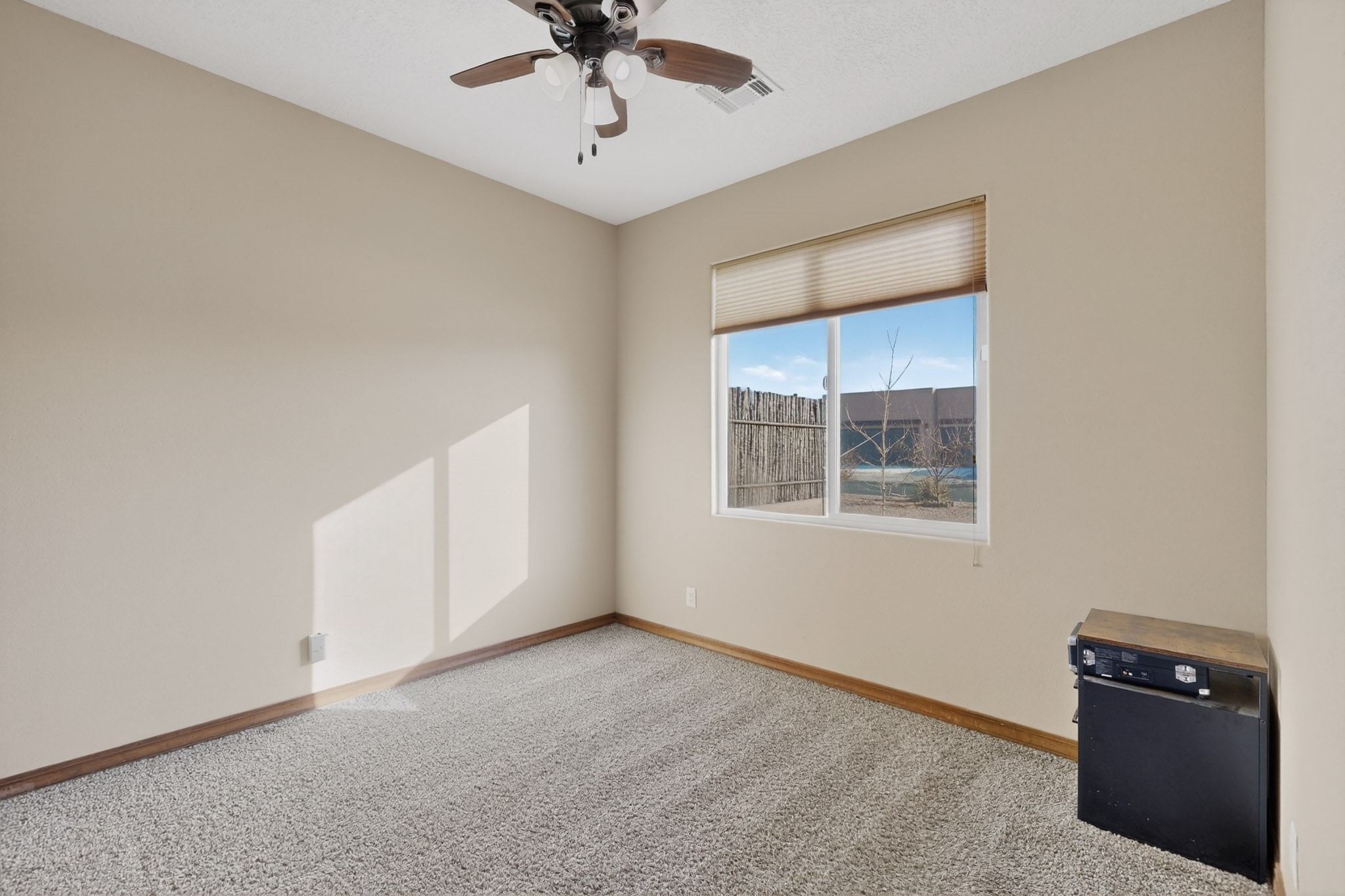 Welcome to this enchanting home in La Pradera. Built in 2018 it is designed for modern living. The open concept layout is enhanced by high ceilings, creating an airy and inviting atmosphere. The chefs kitchen features granite countertops and a walk-in pantry that is perfect for culinary enthusiasts. The primary suite is thoughtfully separated from the other bedrooms, allowing for privacy and comfort. Additional features include a tankless water heater, soaking tub, separate shower and spacious walk-in closet. Enjoy the serene outdoor living space which includes a private sanctuary with a swinging daybed, ideal for relaxation. With easy commuting to Los Alamos or Albuquerque and nearby walking trails and open space, this home is a perfect blend of convenience and tranquility.