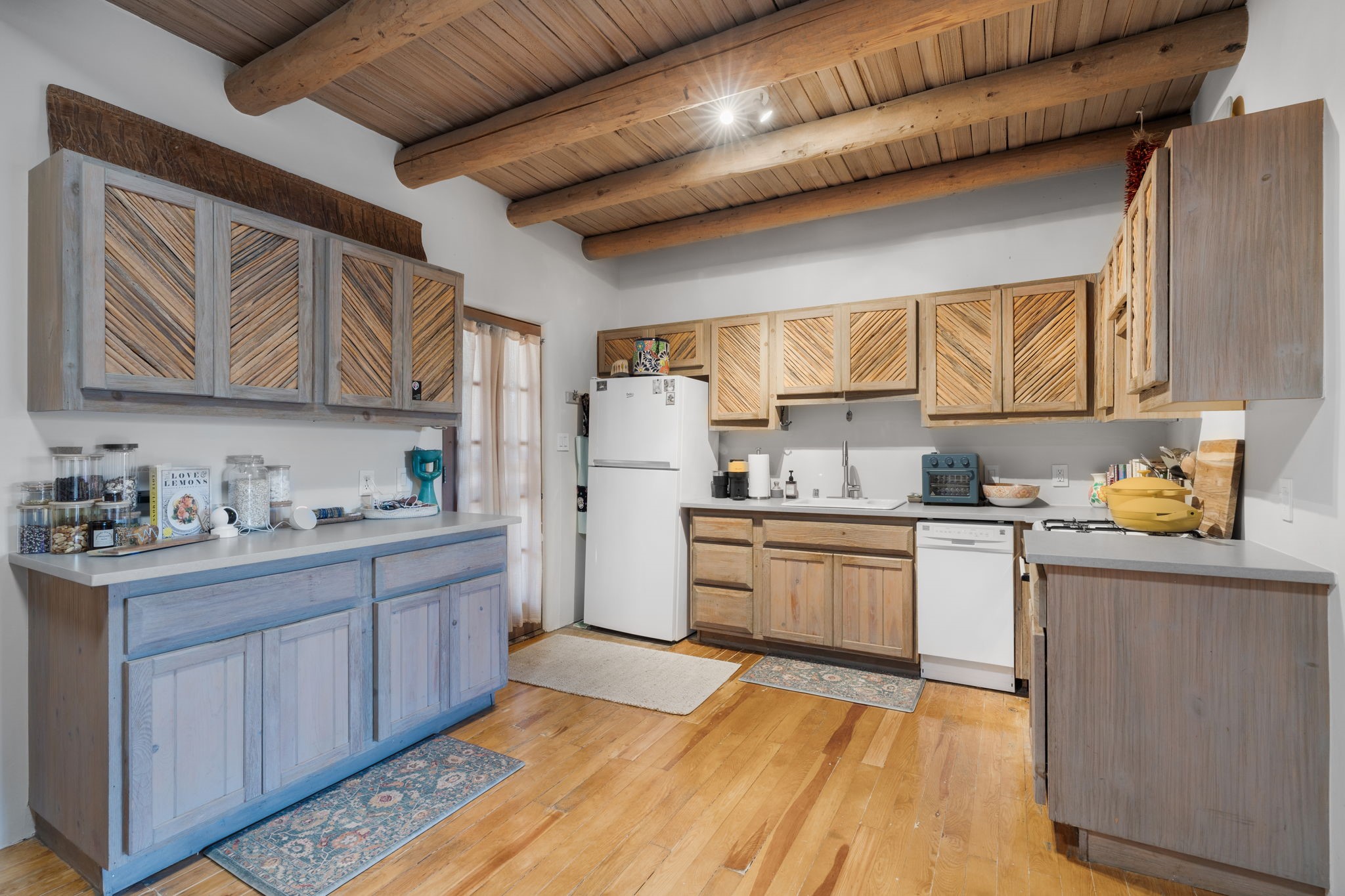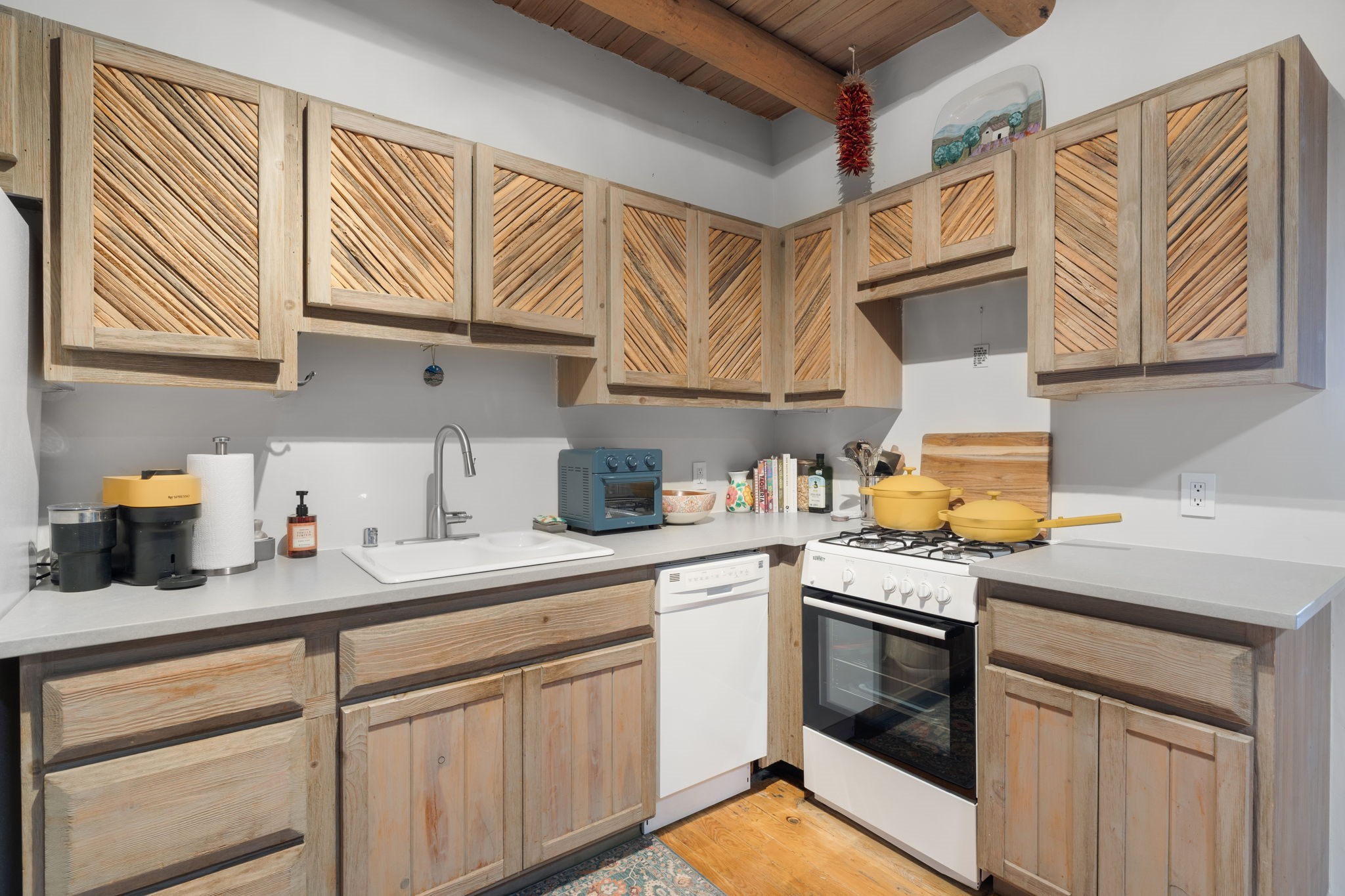 Discover this warm and cozy condo in a small, quiet compound in the Historic Guadalupe District, with easy access to the Santa Fe Plaza. This home will allow you to enjoy a vibrant lifestyle with walking opportunities (urban trails nearby) to multiple restaurants, Santa Fe's well-acclaimed Farmers Market, shopping, and entertainment. This authentic Adobe home includes a cozy kiva fireplace, pine flooring, and, for warmer weather, a beautiful and generous fenced flagstone patio for enjoying outdoor dining and relaxing. This is the Santa Fe get-a-way you have been waiting for!