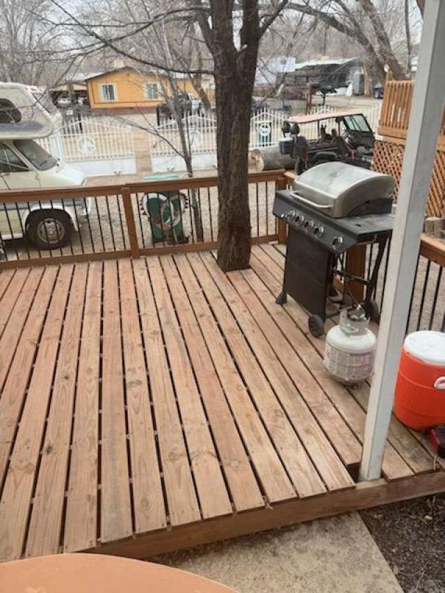 Discover this well-kept 3-bedroom, 2-bathroom residence in Farmington, offering 1,280 square feet of comfortable living space. The property features a split floor plan with laminate flooring and an eat-in kitchen. Recent outdoor enhancements include a new front deck, perfect for enjoying the local atmosphere. The exterior is fully fenced with a sliding gate for added privacy. Notable features include a durable metal roof and a swamp cooler for seasonal comfort. This property is in good condition and ready for its next owner to move in and enjoy the 0.23-acre lot.