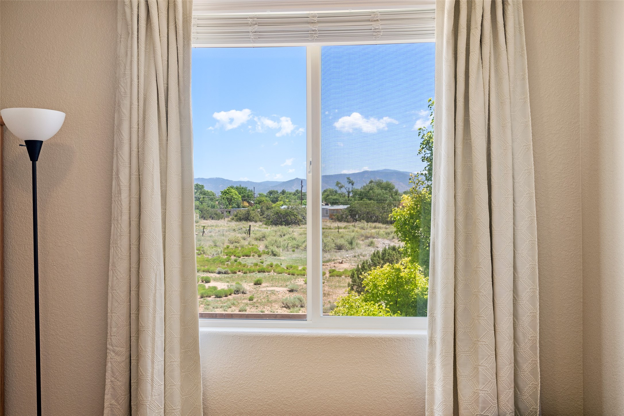 You are going to love this executive-style condo in Santa Fe! Whether you're seeking the perfect starter home or a stylish lock-and-leave retreat, this beautifully upgraded residence offers comfort, convenience, and modern flair. Engineered wood floors and soaring ceilings in the living area create a warm and elegant ambiance, enhanced by abundant natural light from the many windows. The well-appointed kitchen features stainless steel appliances, solid surface Corian countertops, a custom tile backsplash, ample cabinetry, and a generous pantry--ideal for any home chef. The spacious primary suite is conveniently located on the main level and opens to a private, enclosed courtyard--perfect for morning coffee or quiet evenings. The ensuite bath includes a soaking tub, separate shower, and a large walk-in closet for all your storage needs. Upstairs, a flexible loft space offers endless potential as a home office, den, or creative studio. A secondary bedroom enjoys lovely mountain views, and guests will appreciate the separate full bath. Stylish LVT wood flooring continues throughout the upper level, adding warmth and continuity. Additional features include custom blinds, ceiling fans, upgraded lighting, and a high-end Bosch washer and dryer. This turnkey home is ideally located near a variety of shops and restaurants, making day-to-day living effortlessly convenient. HOA dues cover exterior maintenance, roof, and insurance--providing peace of mind and a low-maintenance lifestyle. Some of the furnishings are available for separate bill of sale.