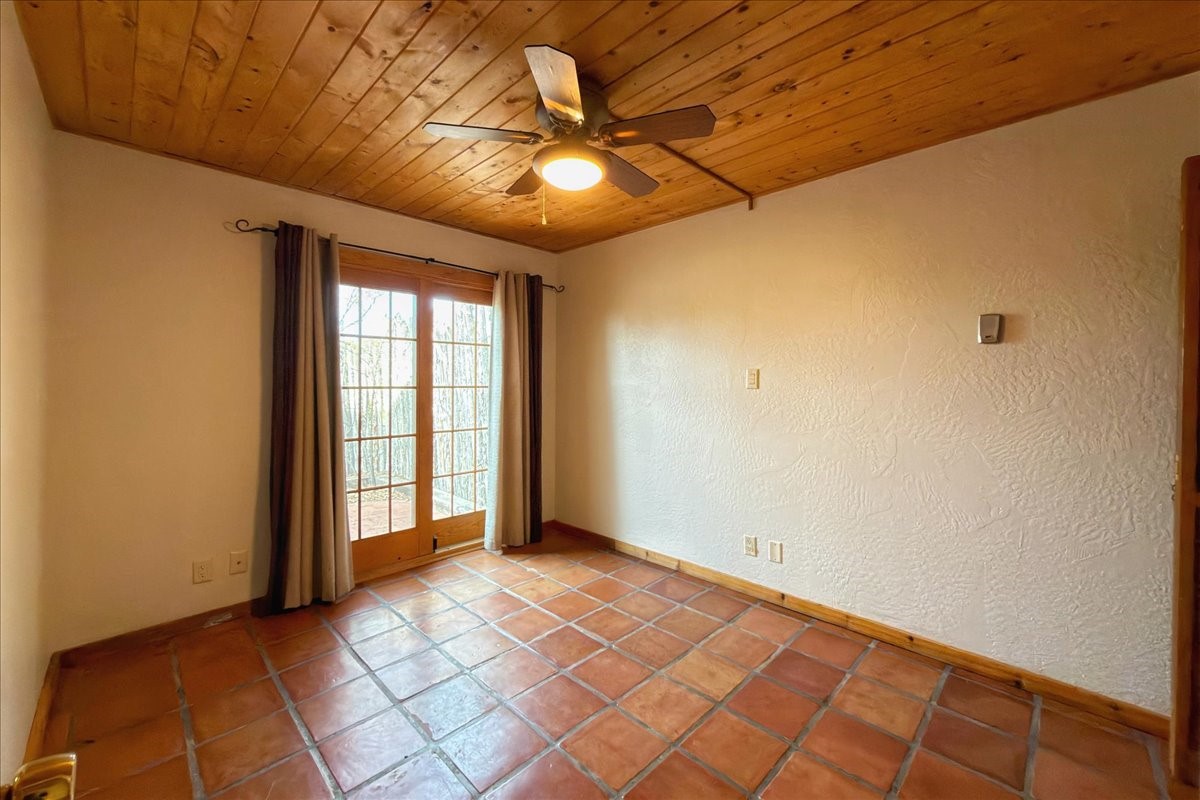 Beautifully remodeled end-unit townhome filled with warmth, light, and classic Santa Fe character. Designed with passive solar orientation, the open and inviting home is bathed in natural light, seamlessly connecting the kitchen, dining, and living areas--perfect for everyday living or entertaining.Two bedrooms and a fully remodeled bath are conveniently located on the main floor, while the private upstairs primary suite features a walk-in closet and hardwood oak flooring. Brick floors on the main level add charm and easy maintenance, complemented by wood beams and tongue-and-groove ceilings that create a timeless Southwestern feel.The thoughtfully redesigned kitchen showcases rich hardwood cabinetry, granite countertops, and a spacious island with added storage. Upgraded Andersen wood windows enhance energy efficiency while framing stunning sunset and Jemez Mountain views from the kitchen.A detached, fully finished two-car garage with built-in cabinetry provides exceptional storage and functionality. Whether you're seeking a primary residence or a Santa Fe retreat, this inviting home offers comfort, style, and unforgettable views.