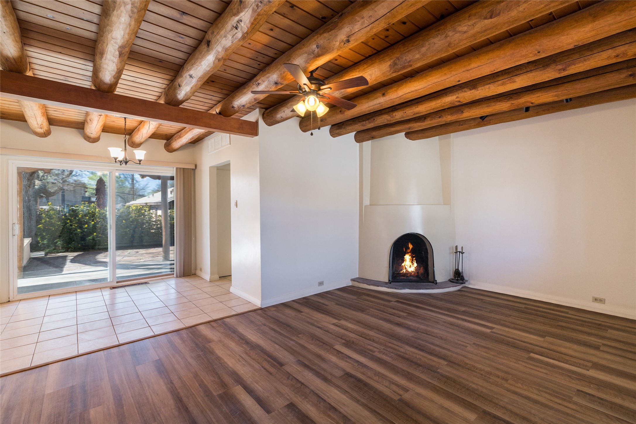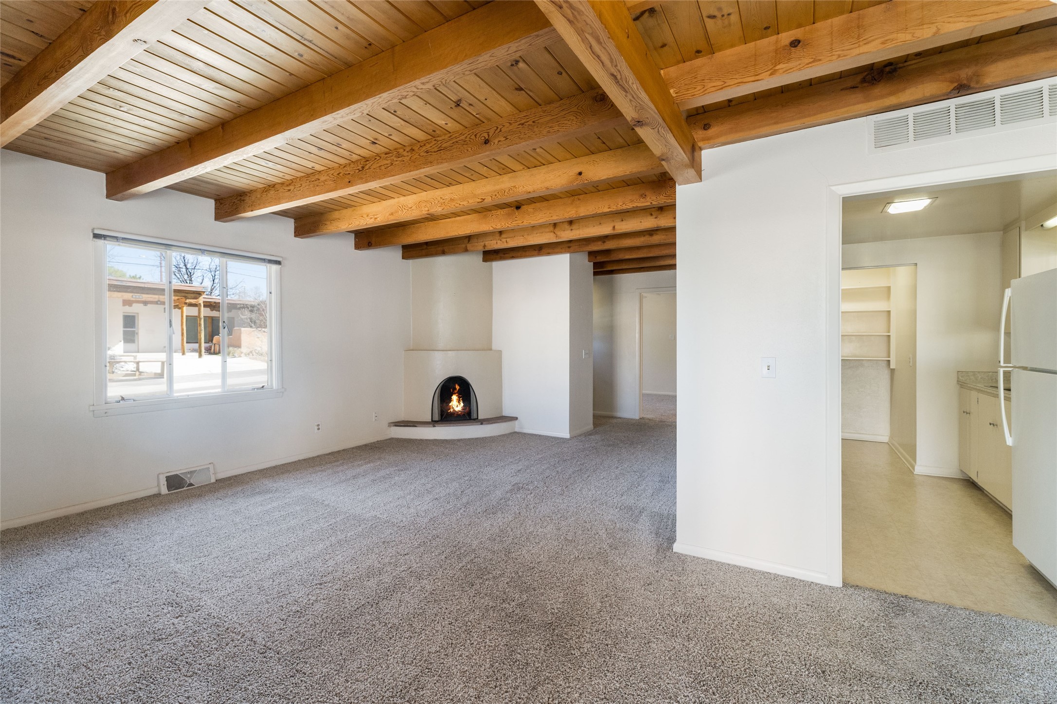 Experience the lifestyle of Downtown Santa Fe at Plaza Del Monte, a gated community located within one of the Southwest's most iconic destinations, just minutes from the historic Santa Fe Plaza. This rare offering presents a compelling opportunity for investors, second-home owners, and adventure travelers alike, with the added benefit of allowable short-term rentals. The community offers a unique and peaceful setting with nearby access to open space, hiking and biking trails, and outdoor recreation, while remaining close to Santa Fe's celebrated galleries, restaurants, and cultural landmarks. A rare chance to own in a community that blends lifestyle, location, and strong investment potential. A versatile duplex opportunity with strong investment potential. This property offers flexibility for investors seeking rental income, a multi-generational living option, or a Santa Fe retreat with built-in income potential. This versatile duplex floor plan offers a 2-bedroom, 1-bath unit (859 SF) and a 1-bedroom , 1-bath unit (810 SF), both with covered parking spaces per unit. Each residence features a traditional kiva fireplace, and one features wood-beamed ceilings, the other unit has vigas and a beamed ceiling, adding warmth and classic Santa Fe charm to the living spaces. If you're not ready to update, the units can be enjoyed as they are. Take your time and update and add personal touches when the moment is right. This unit is also well-suited for a single-family residence by modifying the floor plan.