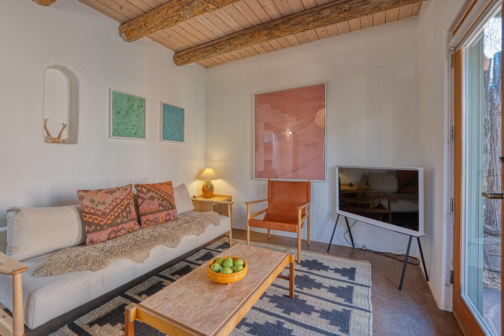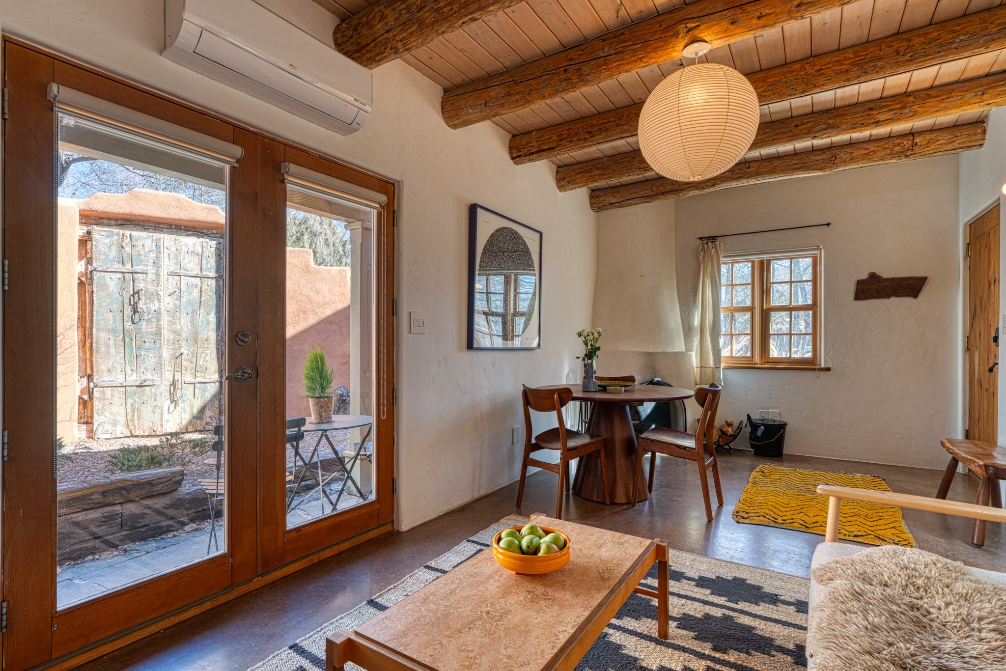 Nestled on a shaded lot in the Eastside of Santa Fe is where you will find this beautiful 2 bedroom adobe home and a completely private separate 1 bedroom casita. This home features all the Santa Fe classic charm with numerous artistic and thoughtfully planned modern updates. The casita has been a successful short term rental. Minutes to the Plaza and surrounded by trails ready to be enjoyed! This is a treasure that you won't want to miss!