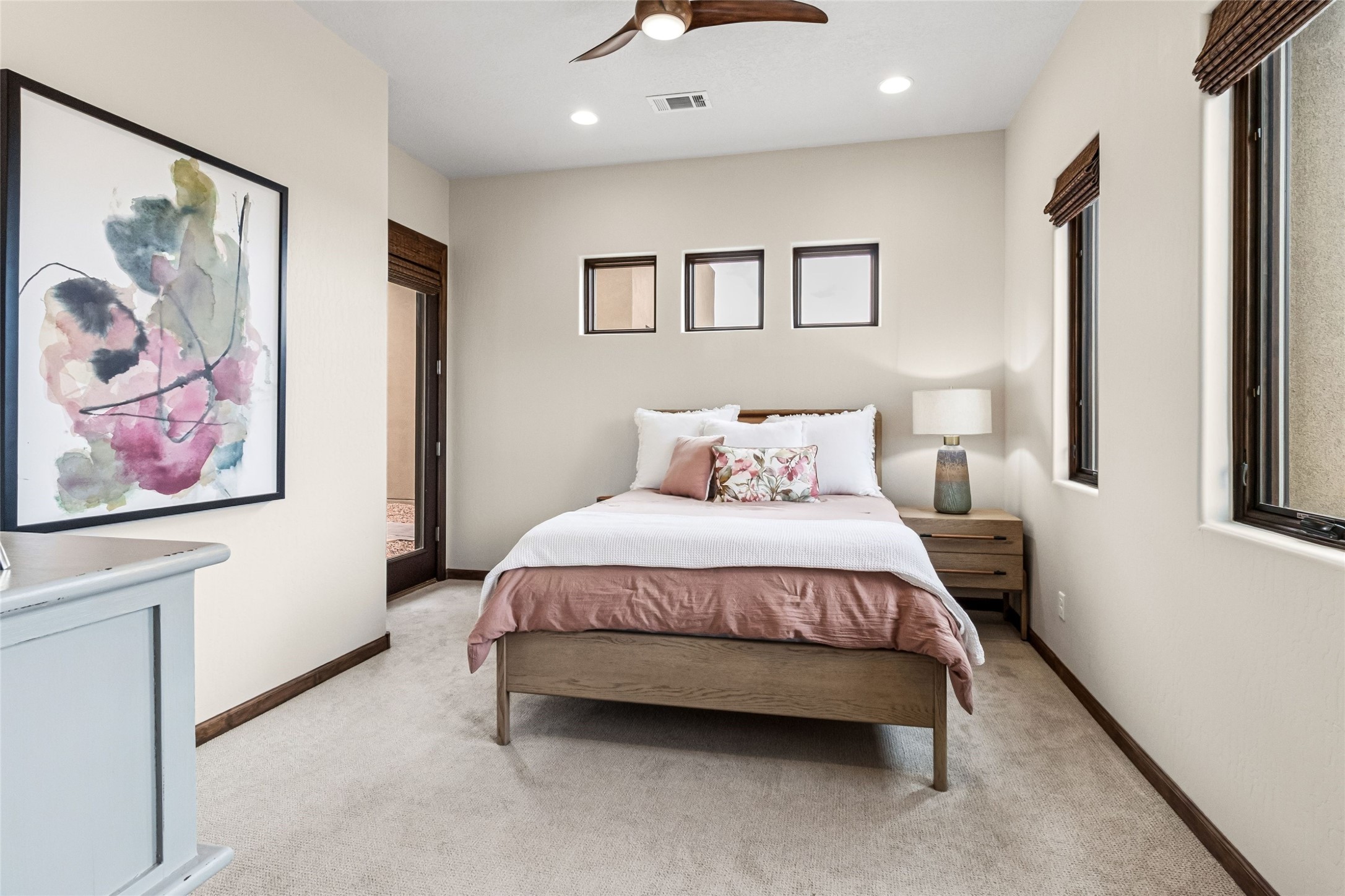 Set at the end of a quiet cul-de-sac in Las Terrazas at Las Campanas, this recently completed 2023 home offers a thoughtful blend of gathering spaces and private retreats. An inviting entry courtyard connects the main residence and a separate casita, creating flexibility for guests, work, or extended stays. Inside, the open layout unfolds with distinct yet connected living, dining, and kitchen spaces, along with a tucked-away family room for more relaxed moments. The kitchen centers around a generous island with quartz countertops, bar seating, and abundant prep space, complemented by double ovens, a coffee bar, and a large walk-in pantry. Retracting sliding glass doors open to a covered portal with a fireplace and a walled, low maintenance yard. The primary suite offers a spa-like bath and spacious closet, while three additional bedrooms are set along a private hallway with a secondary living area. A dedicated office with French doors, along with a tandem three-car garage, mudroom, and ample storage, complete a home designed for comfort, flexibility, and everyday ease. Adjacent to dedicated open space and walking paths, with HOA-covered maintenance, gated entry, 24-hour security, and EMT services.