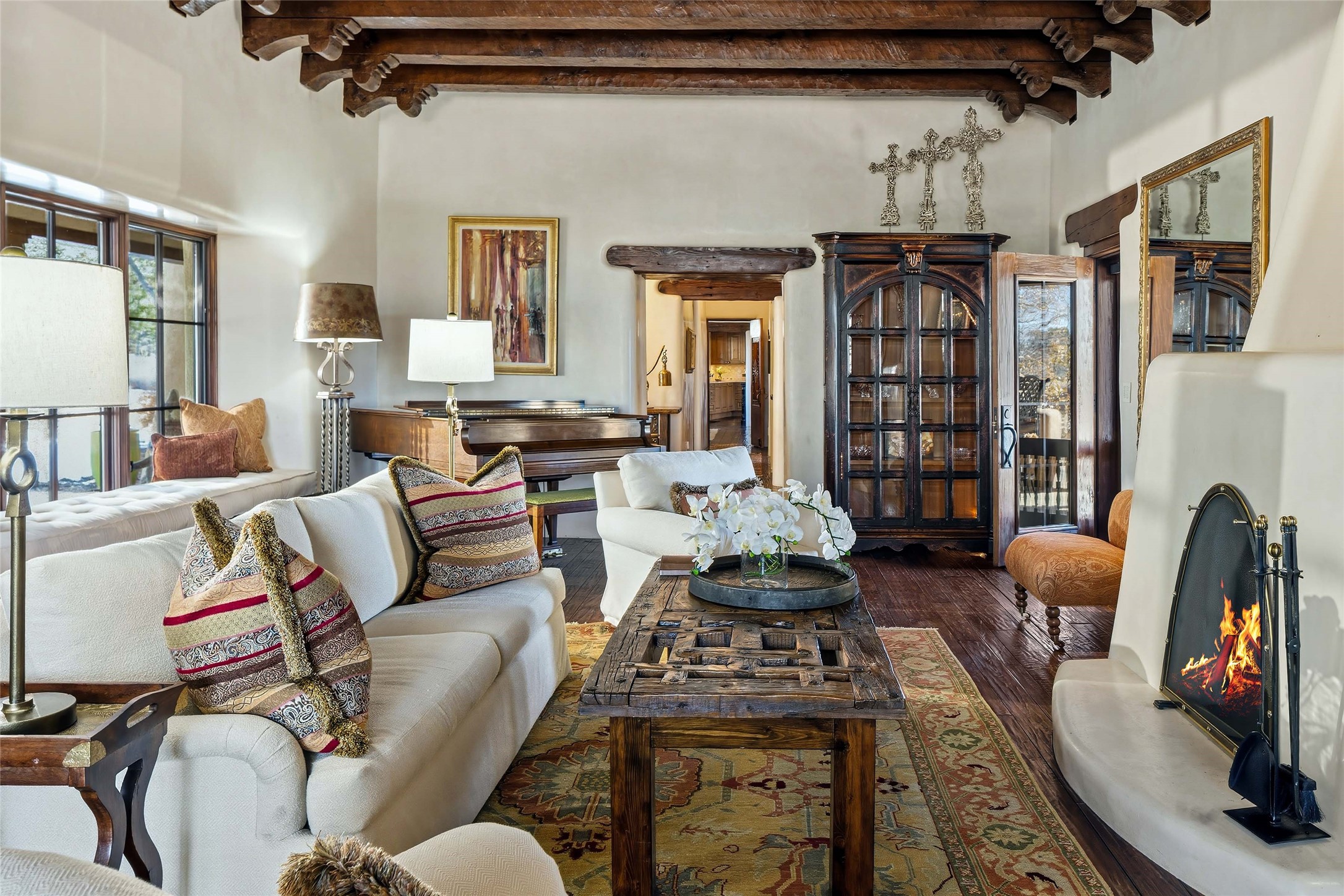 There are estates -- and then there are legacies.Originally commissioned in 1931 by Governor John Dempsey, Casa Alegre stands as one of Santa Fe's most storied residential compounds. Just minutes from the Plaza yet unfolding across 11 private acres, the property represents a rare intersection of political history, architectural integrity, and enduring Southwest elegance.The six-bedroom adobe main residence remains grounded in its original character -- thick adobe walls, hand-finished details, and fireplaces that anchor gathering spaces with warmth and permanence. A meticulous four-and-a-half-year restoration in the early 2000s revitalized the estate with extraordinary care, enlisting master artisans to preserve its authenticity while discreetly integrating modern systems and comfort. The result is not renovation, but stewardship.Three independent guest houses create a true compound -- allowing the estate to function as both intimate family retreat and gracious host to distinguished guests.Beyond the residences, the grounds unfold as a private sanctuary: mature trees, curated gardens, orchard, stone walking paths, a tennis court, and a heated pool -- each element placed with intention. The scale is rare. The privacy is complete. The proximity to Santa Fe's cultural center is immediate.Over the decades, Casa Alegre has quietly passed through the hands of notable stewards, each contributing to its preservation. Today, it stands as one of the Southwest's most significant legacy offerings.Private. Historic. Irreplaceable.