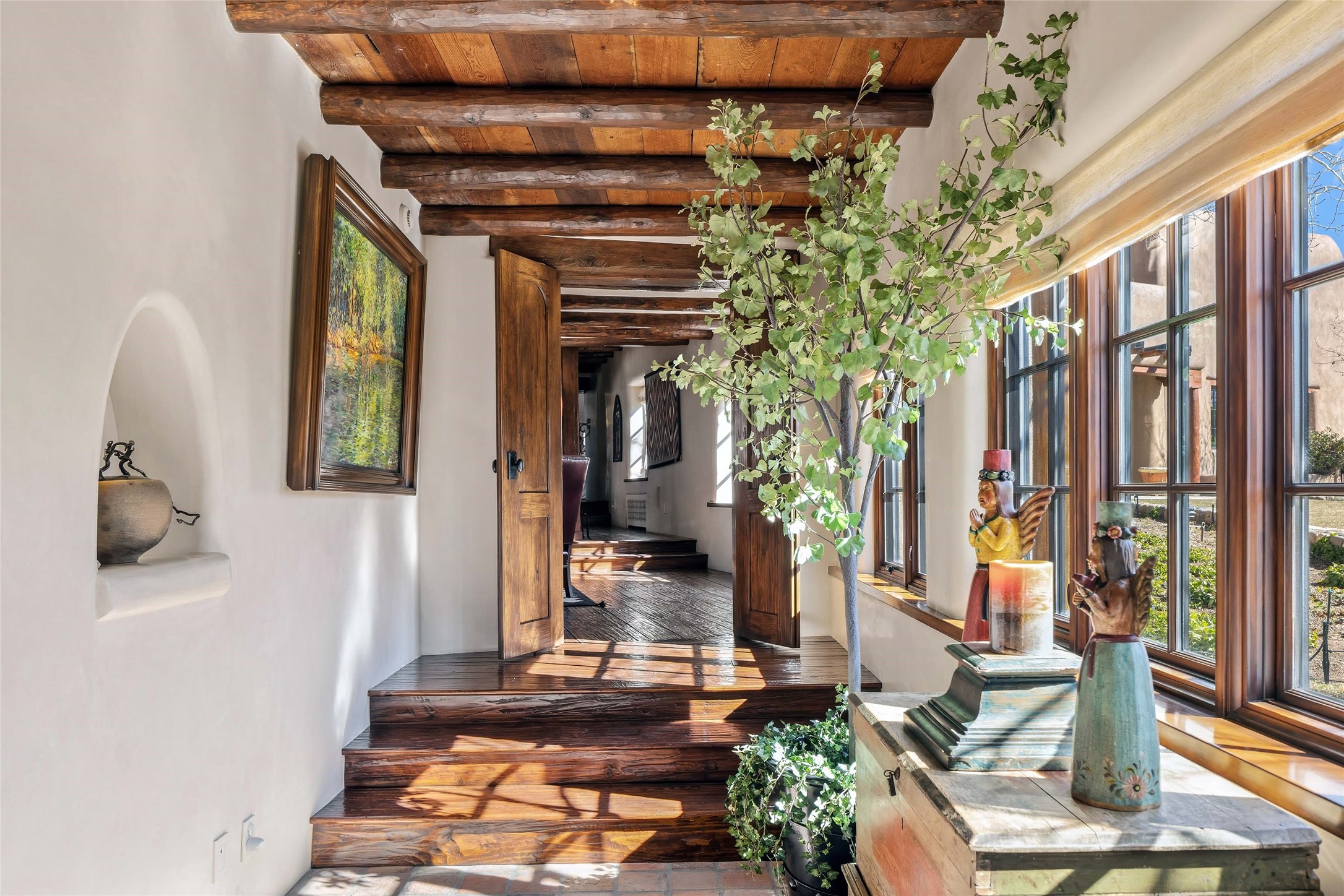 Santa Fe’s Historic Plaza resides on the NE side of Santa Fe. This area runs east from St. Francis Drive, north of East Alameda to Hyde Park and the climb to Ski Santa Fe and the Sangre de Cristos. Deemed as highly desirable both in price and design, Santa Fe’s Northeast area, while conveniently located, provides close-in quiet living.
