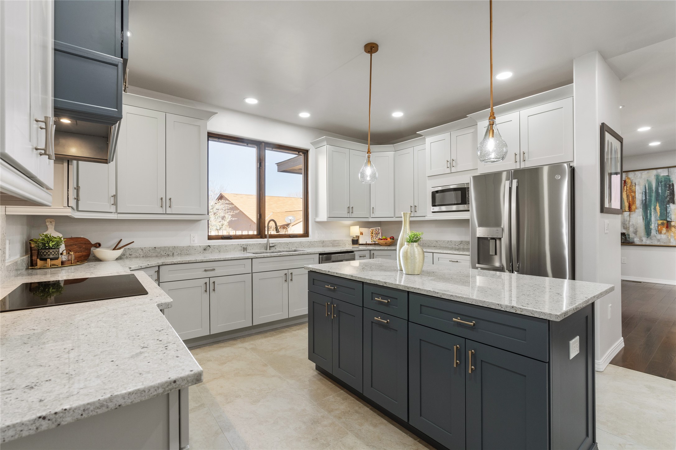 This lovely new home has 3 beds, 3 baths and 2 bonus rooms. Bottom level includes a beautiful open kitchen with all the perks ~ soft close cabinets, granite counters, large island/bar table. The living area next door is cozy with a gas fireplace. A bonus room, 3/4 bath and mudroom also sit on the lower level. The second story includes 3 bedrooms, 2 full bathrooms, another bonus room and the laundry room. Beautiful master bed and bath with a spacious closet. Let's not forget this home has an attached two car garage, xeriscaping with sprinkler system, granite counters and soft close cabinetry in all the bathrooms and laundry room, step lighting along the stairs, plenty of natural light, thoughtful storage spaces, exterior sitting areas in front and back, an awesome driveway and so much more!