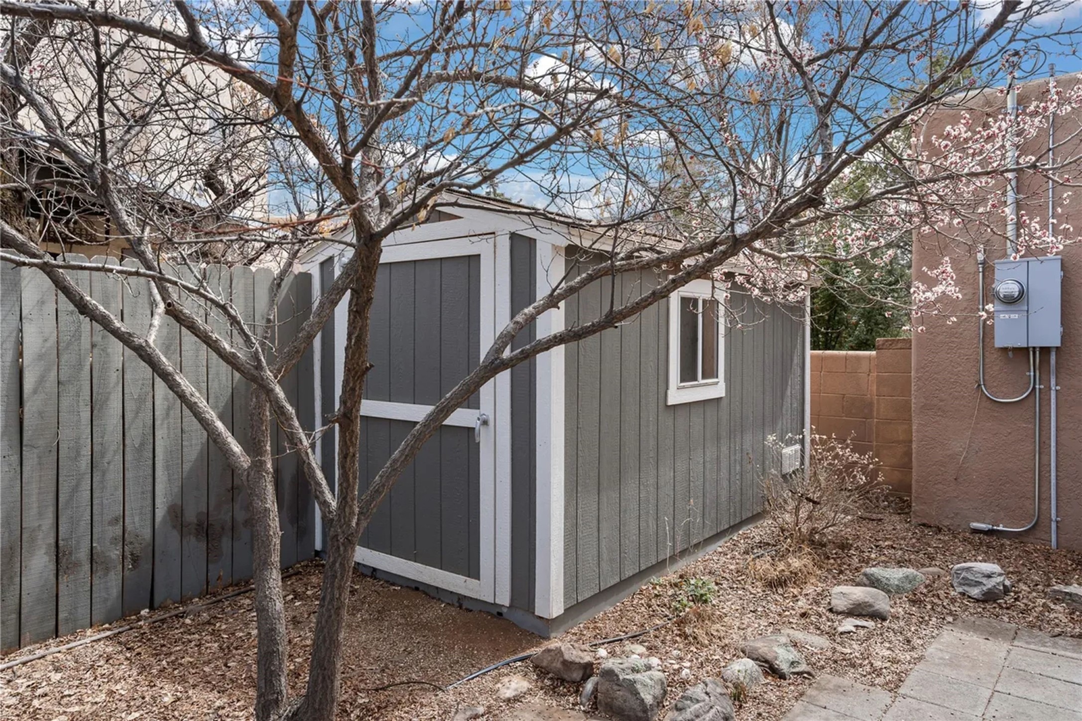 Immaculately preserved Allen Stamm-designed home on Casa Alegre's most sought-after street. Built in 1957, this charming three-bedroom, two-bathroom residence perfectly balances authentic mid-century character with thoughtful modern updates. Ideally situated in the heart of Casa Alegre, just steps from Gregory Lopez Park, this home offers the best of Santa Fe living in one of the city's most desirable neighborhoods. The sun-filled living room features a classic kiva fireplace and frames enchanting views of the lush front garden. An inviting dining room flows seamlessly into a beautifully updated kitchen, creating an ideal space for both everyday living and entertaining. Three bedrooms provide comfortable, peaceful sanctuaries, complemented by two tastefully remodeled bathrooms. Authentic details abound, including original hardwood floors, a traditional kiva fireplace, exposed vigas in most rooms, and original Stamm architectural character. From front and back portals, enjoy mature landscaping, deciduous trees, vibrant plantings, and established shrubs. Recent updates include a new sewer line to the street, updated windows, an updated hot water heater and boiler, a newer washer and dryer, mini-split systems in two bedrooms and the living room, and new tile flooring in the third bedroom.