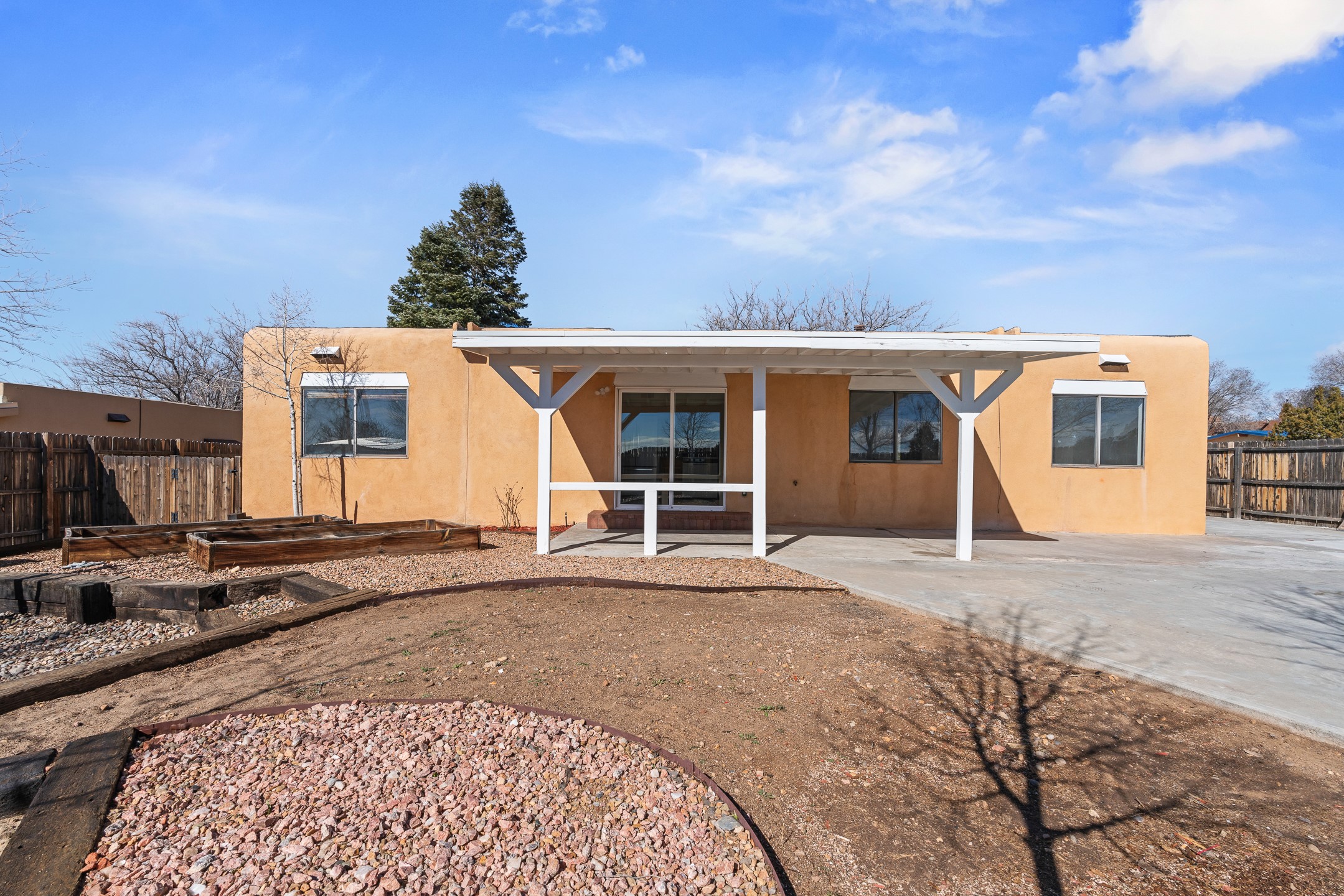 Welcome to 2477 Camino Capitan in the desirable La Paz II East community, centrally located just off Rodeo Road for easy access to shopping, dining, schools, and all that Santa Fe has to offer. This freshly painted 4-bedroom, 2-bath home offers a well-designed floor plan with excellent separation between the primary suite and guest bedrooms, providing both privacy and flexibility. The spacious living room features tall ceilings that create an open, airy feel, while tile flooring throughout ensures easy maintenance and a clean, cohesive look. The large eat-in kitchen offers plenty of space for gathering and includes a sliding glass door that opens to a covered portal and the expansive, fully fenced backyard perfect for entertaining, gardening, pets, or simply enjoying the outdoors. Situated on a generous corner lot, the property provides added space and privacy. Complete with an insulated and heated 2-car garage and a functional, comfortable layout, this home is a wonderful opportunity in a convenient, central location.