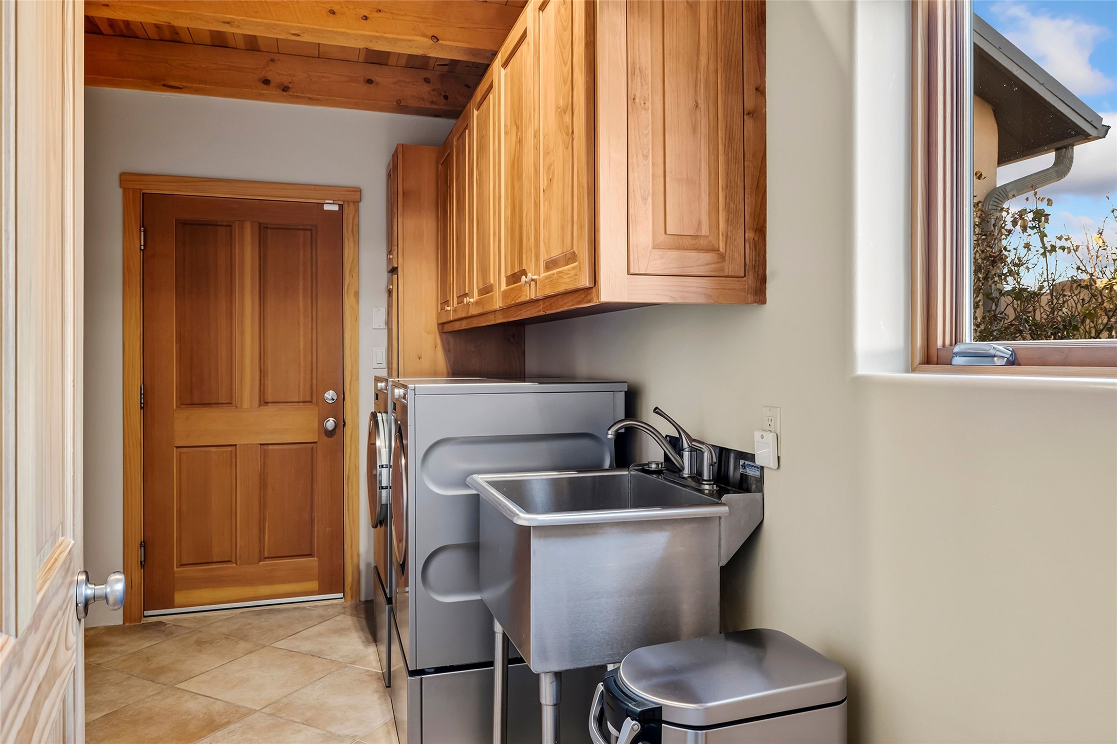 Inspired by the minimalist excellence of the famed Georgia O'Keefe, this 12.5-acre northern New Mexico estate, with horse privileges, is a living canvas where over 3,800 square feet of authentic Santa Fe architecture with an impressive main house and detached studio, captivates with one of most vibrant backdrops of vast mountain ranges and magnificent sunsets. Recently upgraded with quality improvements, this exceptional adobe-built Santa Fe sanctuary with 3 bedrooms and 2 baths within the main house and a private detached studio, sets itself apart with its quality craftsmanship, views, vast acreage, a superior outdoor living experience and flexible use of space. Design features include a stunning living room, anchored by a substantial fireplace, framed mountain views, endless walls for art and dual outdoor access to both courtyards. At its heart lies a professional epicurean kitchen which is well-appointed with Wolf and Sub-Zero appliances, excellent storage and a breakfast bar, all of which opens to the intimate dining room which overlooks the courtyard with expansive views. The luxurious, private owner's suite delights with a Kiva fireplace, French doors leading to the back portal, views and a spa-like bath. Two additional spacious guest bedrooms offer privacy, comfort and views and share an elegant full bath. The property's creative pulse is found in the custom detached studio which offers a light-drenched space with scored concrete floors, a wood-burning fireplace and offers endless possibilities for use. Additional highlights include quality windows which frame long-range mountain views, no interiors steps, warm plaster walls, authentic vigas and wood planked ceilings, neutral finishes throughout, fully enclosed front and back courtyards, a large 3-car garage, vibrant landscape and updated hardscape. ThisSanta Fe home is a rare find and offers a seamless blend of high desert luxury and the rugged, artistic spirit of the land.