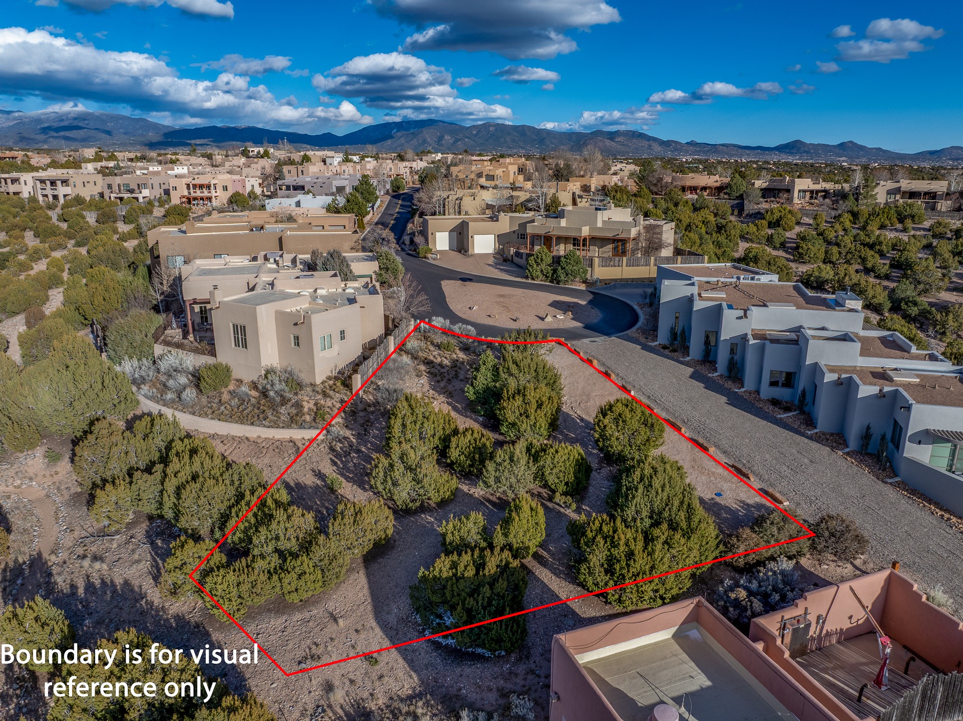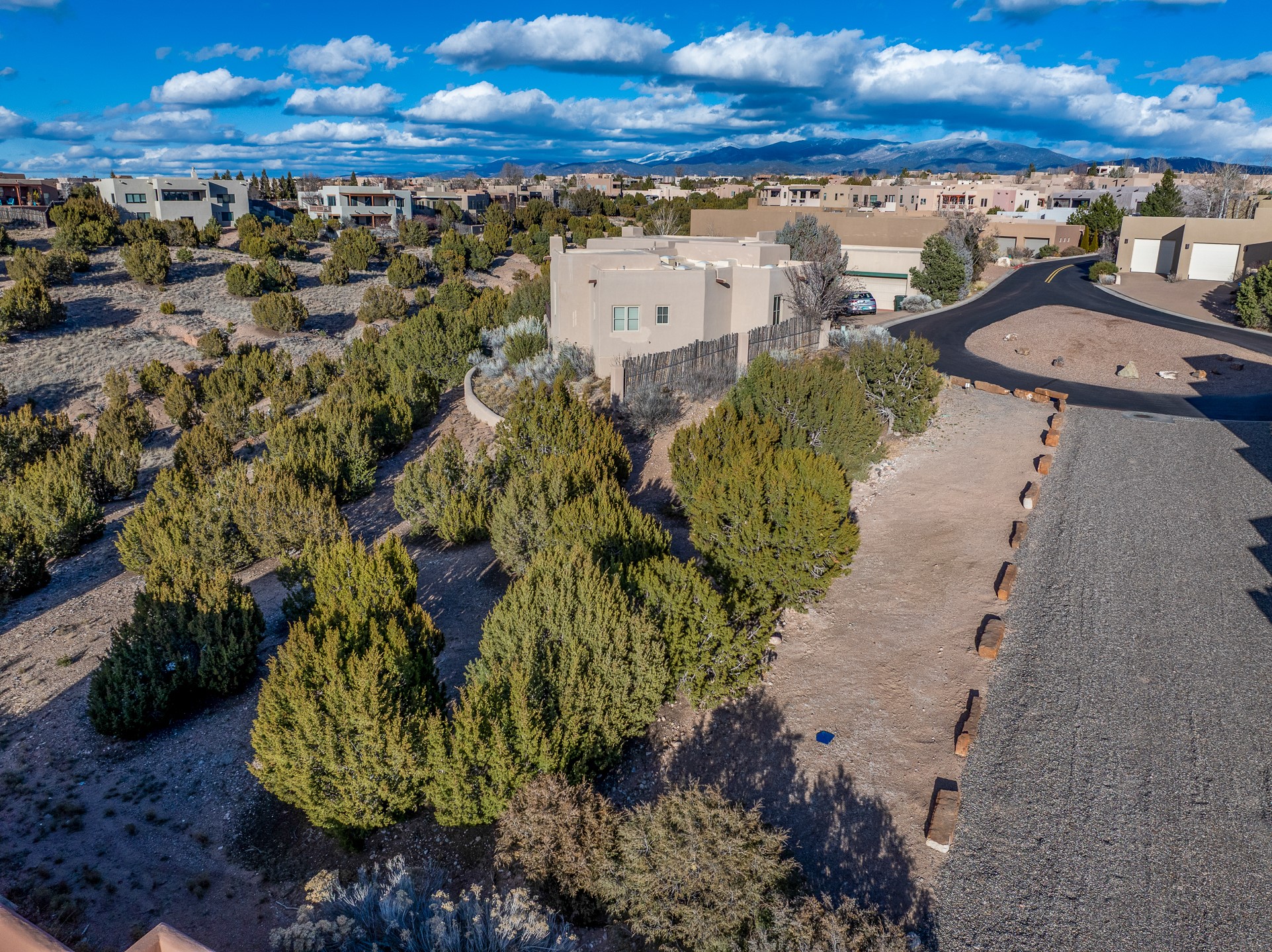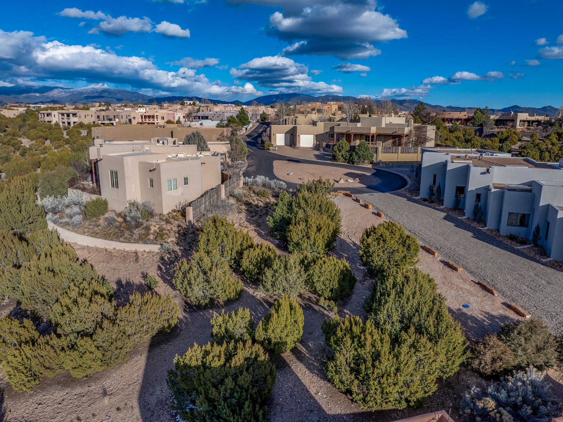 A rare opportunity to build your dream home on one of the final remaining lots in sought-after Aldea de Santa Fe. Tucked away on a quiet cul-de-sac, this premium homesite offers unobstructed sunset views toward the Jemez Mountains and effortless access from the street--an ideal canvas for thoughtful architectural design. Floor plans have been rendered to give you an idea of what you can build.The lot gently backs to open space and a nearby community walking trail, providing both privacy and a seamless connection to Aldea's expansive natural landscape. Mature tree cover and native vegetation enhance the setting, creating a beautiful balance of serenity and village-style living.Aldea is celebrated for its miles of preserved open space, paved streets, and welcoming Community Plaza. Residents enjoy tennis courts and an active neighborhood atmosphere, all just minutes from downtown Santa Fe.All public utilities are readily accessible, including gas and electric at the street, with connections available to community sewer and Santa Fe County water (meter required).An exceptional setting to create a custom residence that embraces panoramic views, brilliant sunsets, and the distinctive lifestyle Aldea is known for.