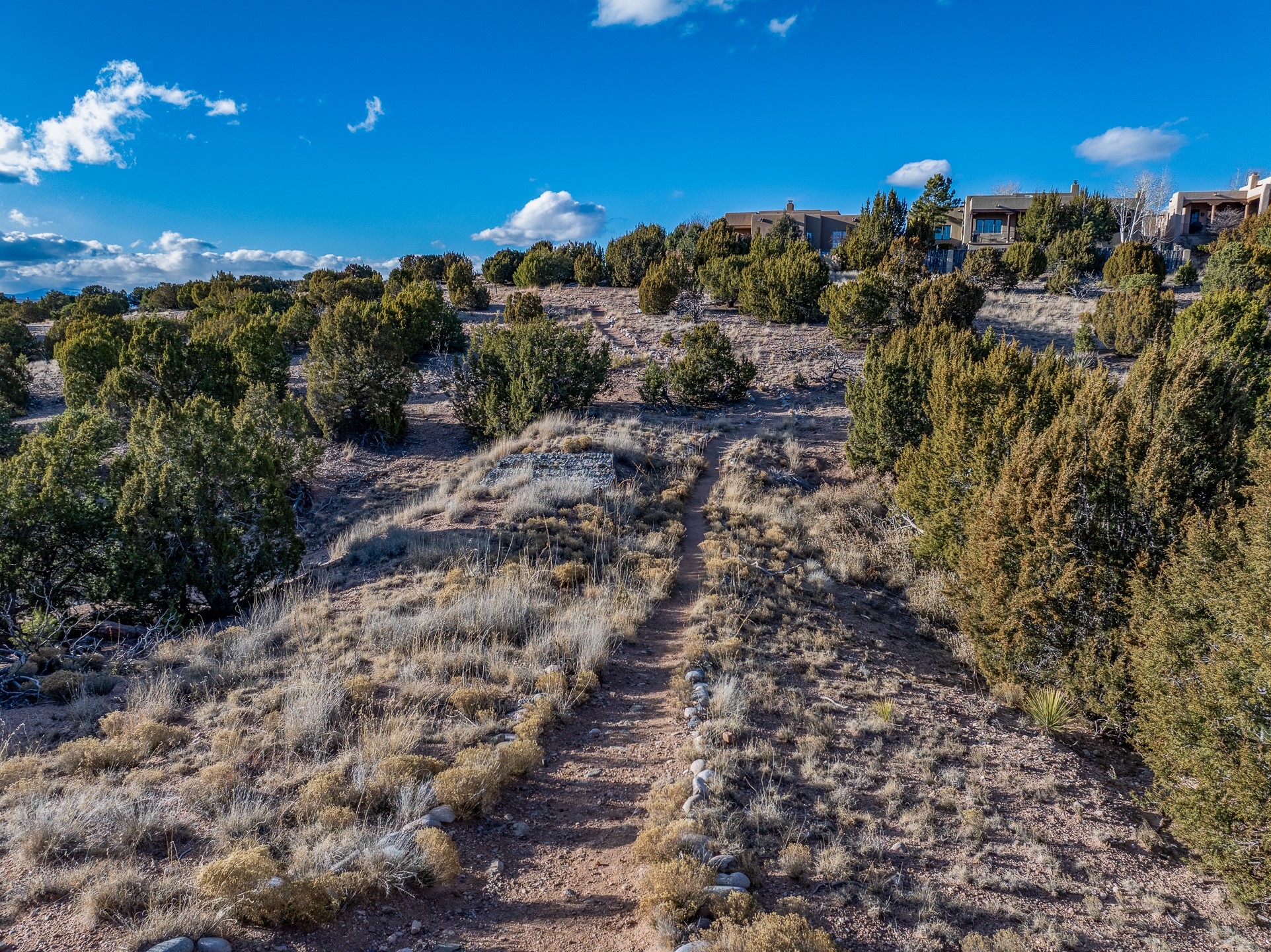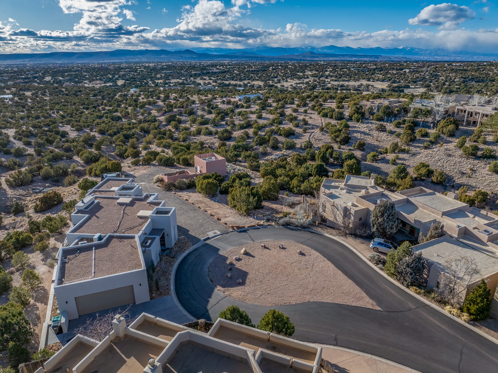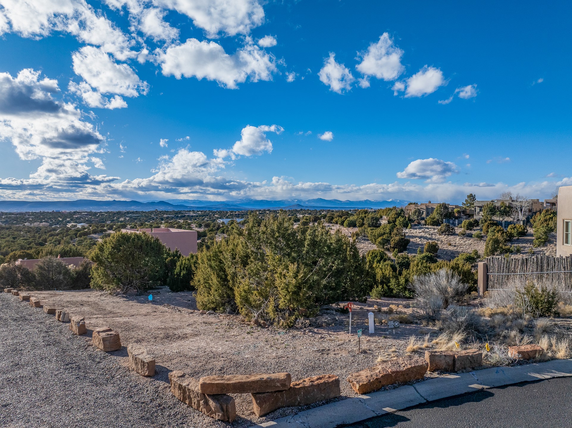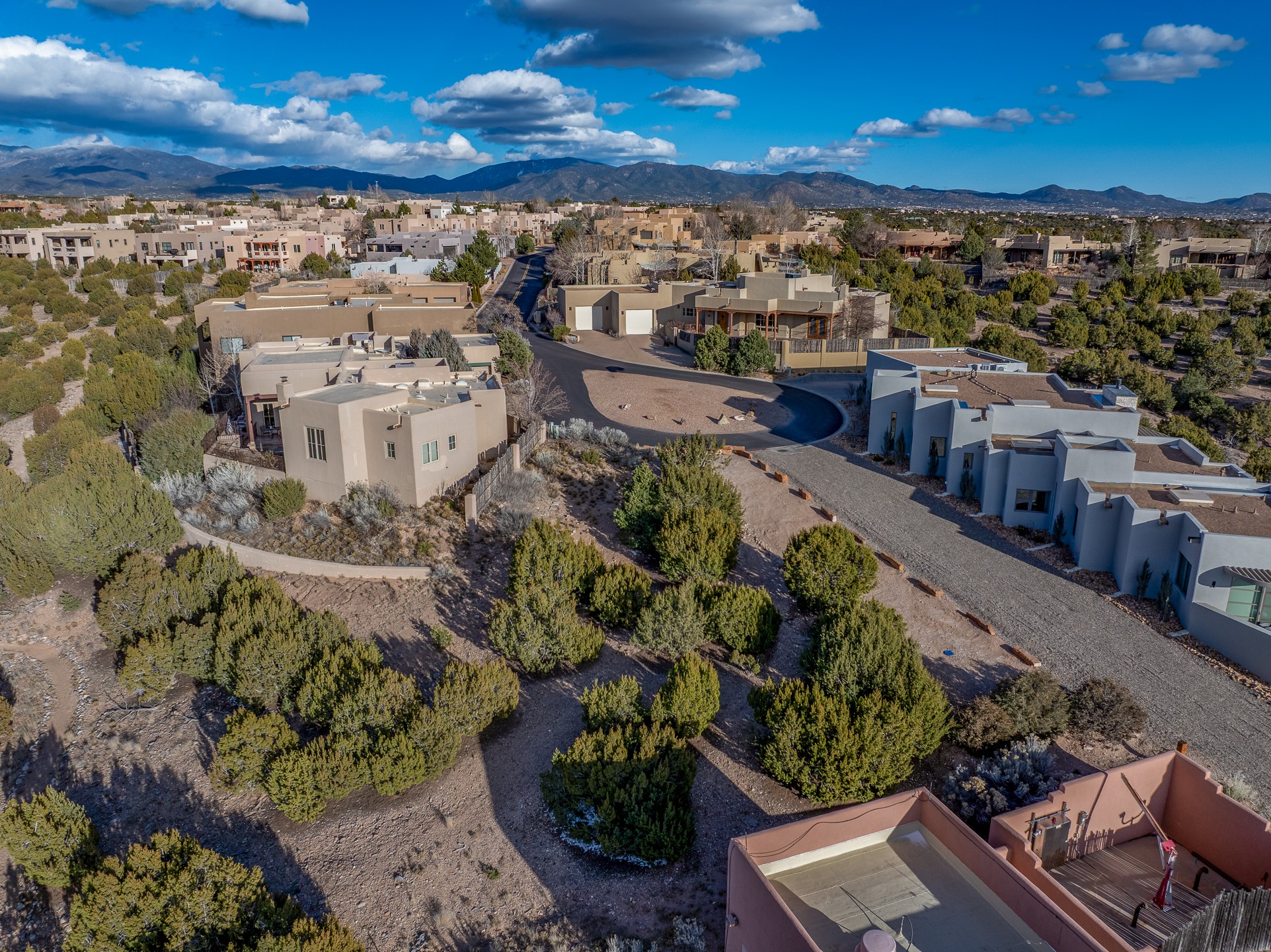 A rare opportunity to build your dream home on one of the final remaining lots in sought-after Aldea de Santa Fe. Tucked away on a quiet cul-de-sac, this premium homesite offers unobstructed sunset views toward the Jemez Mountains and effortless access from the street--an ideal canvas for thoughtful architectural design. Floor plans have been rendered to give you an idea of what you can build.The lot gently backs to open space and a nearby community walking trail, providing both privacy and a seamless connection to Aldea's expansive natural landscape. Mature tree cover and native vegetation enhance the setting, creating a beautiful balance of serenity and village-style living.Aldea is celebrated for its miles of preserved open space, paved streets, and welcoming Community Plaza. Residents enjoy tennis courts and an active neighborhood atmosphere, all just minutes from downtown Santa Fe.All public utilities are readily accessible, including gas and electric at the street, with connections available to community sewer and Santa Fe County water (meter required).An exceptional setting to create a custom residence that embraces panoramic views, brilliant sunsets, and the distinctive lifestyle Aldea is known for.