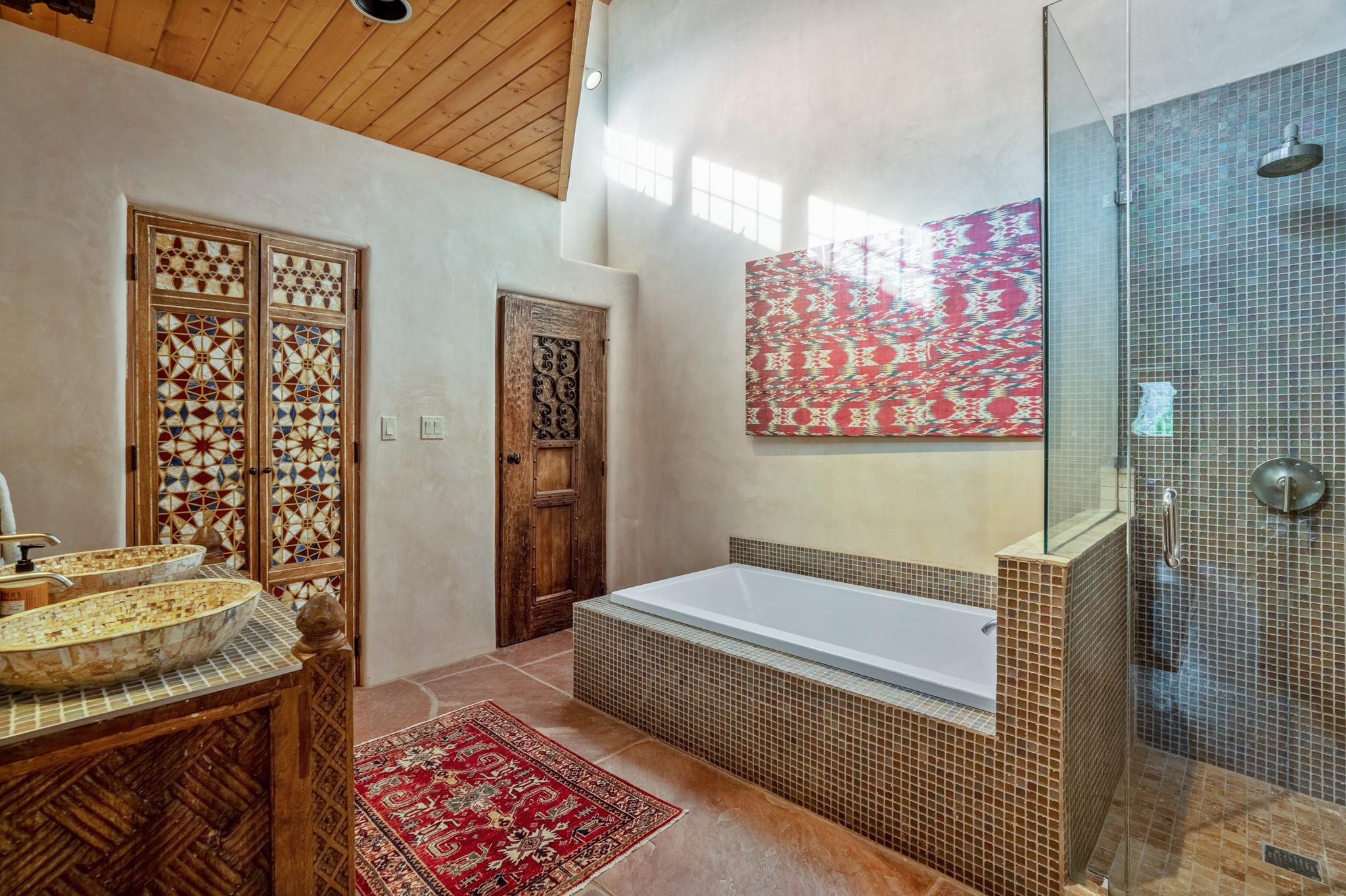 1564 Cerro Gordo Road is a Seret family legacy property, the legendary designers whose vision have shaped Santa Fe style for over five decades. This isn't simply a beautifully appointed 5-bedroom, 5-bathroom compound spanning 5,398 square feet across three distinct structures on 1.5 lush acres. It's a living testament to a remarkable journey that began in the mountains of Afghanistan in 1968 and transformed the way the world thinks about textiles, furniture, and global design.This estate carries the Seret signature, having been curated with the same discerning eye that created The Inn of the Five Graces, and other well-known properties around the world, with authentic architectural treasures. An East meets West aesthetic, where ancient craftsmanship meets contemporary living, and every detail invites you to experience a feast for the senses. The compound is surrounded by the best of Santa Fe's natural beauty, with stunning views of Picacho Peak, and the Dorothy Stewart Trail. Enjoy ultimate serenity and unwind to the sounds of the Santa Fe river running just behind the property. This is more than a home. It's a piece of Santa Fe history, and a rare opportunity to own a property that tells the story of creativity, global adventure, and the very spirit that defines our city.