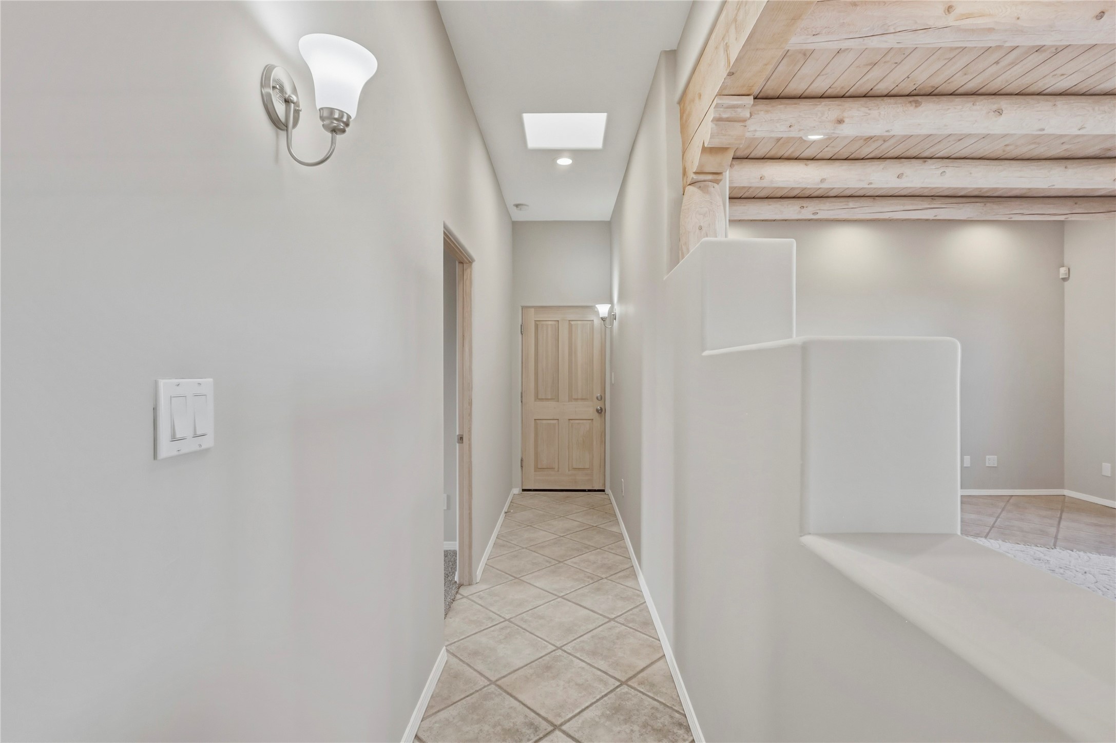 Spacious Southwestern retreat situated on a generous 1.3-acre lot, offering privacy and charm behind a classic stucco wall. The beautifully landscaped grounds create a serene setting, perfect for relaxing or entertaining on the expansive patio while taking in breathtaking New Mexico sunsets.Inside, the home blends warmth and character with modern updates. The expansive great room features a stunning tongue-and-groove ceiling, dramatic vigas, and a traditional kiva-style fireplace--creating a true Southwest ambiance. Fresh neutral paint and recently replaced carpet add a crisp, move-in-ready feel throughout.The primary suite offers a peaceful escape with an ensuite bath and walk-in closet. Two additional bedrooms provide ample space and generous closets. A well-appointed chef's kitchen flows seamlessly into the adjoining dining area, making it ideal for both everyday living and hosting gatherings.This private, beautifully maintained property captures the essence of Southwest living with space, style, and unforgettable sunsets.