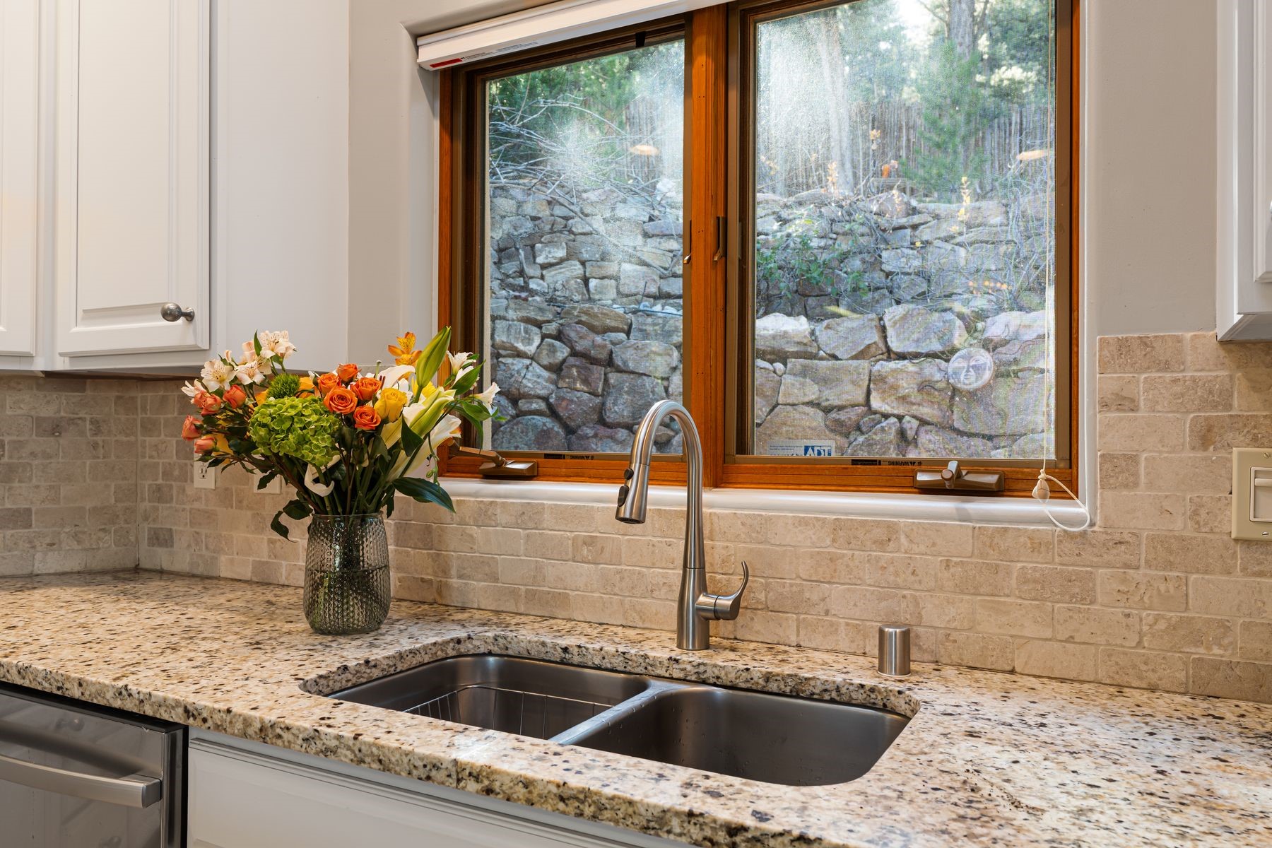 Tranquility and architectural grace define this polished, 3-bedroom, 2.5 bath residence on a quiet cul-de-sac in gated Santa Fe Summit. Step through handcrafted wood doors into the walled front courtyard with fountain and glorious seasonal roses. Inside, robust beams with splendid corbels and a floor-to-ceiling gas kiva add grandeur to the well-proportioned Great Room. The kitchen offers all stainless appliances, including a newer fridge, gas range and double-oven, plus granite counters, a tumbled marble backsplash and an operable window overlooking the backyard's mature pines and lichen-dappled rock work. A private den/office with exterior access introduces the Primary Suite. This true retreat features new wood flooring, soft natural light, and a professionally designed and remodeled en-suite bathroom with dual-vanity, quartzite counters, custom cabinetry, and a spacious walk-in shower. In the well-separated Guest Wing are two additional bedrooms, with newly installed wood floors, and a shared, full bathroom. Recent upgrades include 4 mini-splits for cooling, newer stucco (2022), a 2025 silicone coating on the 2019 roof, and a Navien Heating System (2023). Back yard is fully enclosed. The attached two-car garage is direct access. Enjoy sophisticated living in a refined mountain setting, minutes from the Ski Basin and Santa Fe's historic downtown.