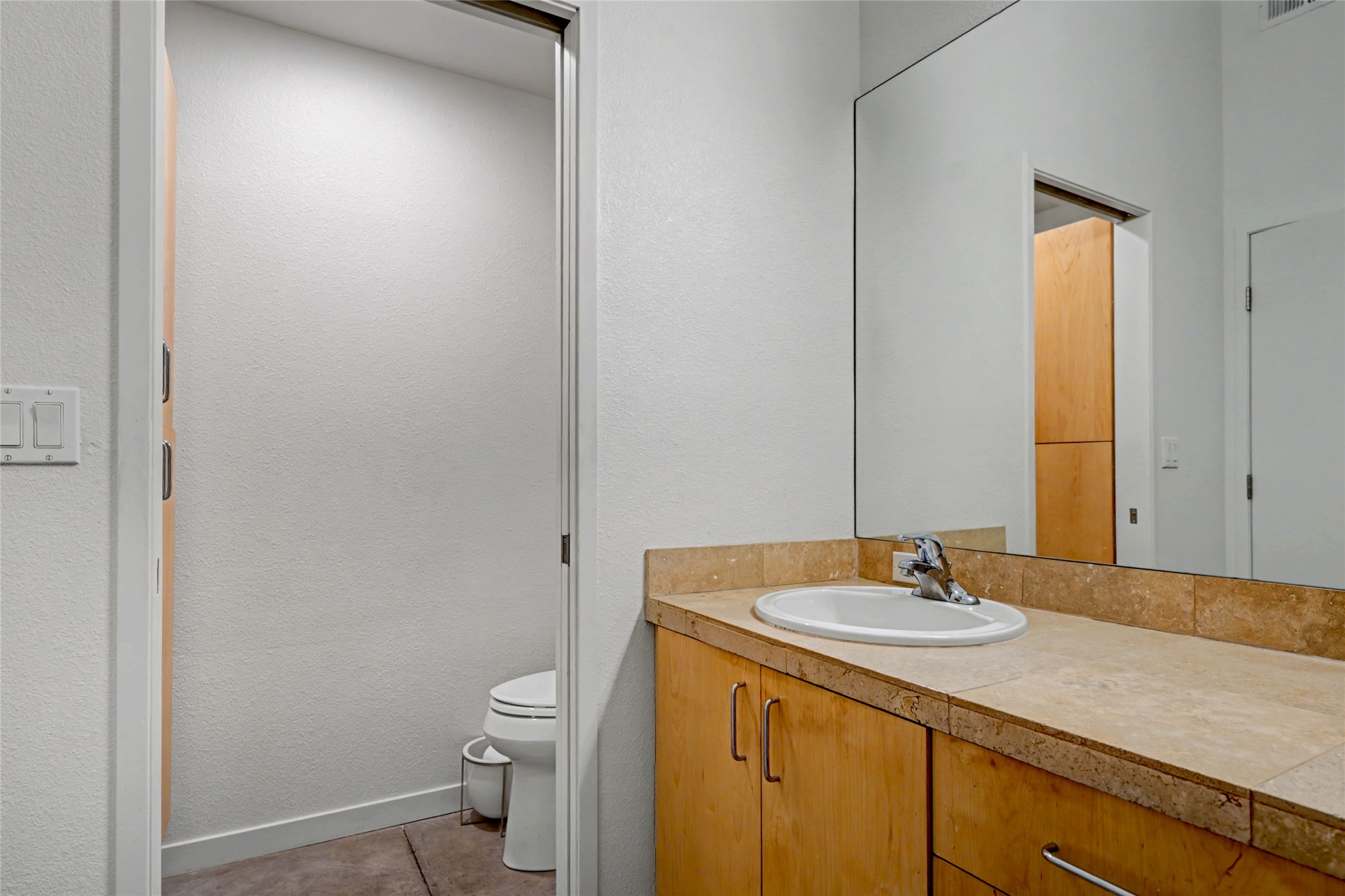 Situated within the architecturally celebrated Zocalo community, this refined ground-floor residence embodies the bold Mexican-modern aesthetic that defines one of Santa Fe's most distinctive neighborhoods. Clean lines, polished concrete floors, high ceilings, and walls of natural light create a sophisticated yet welcoming atmosphere.Morning sun pours into the living spaces, highlighting the home's open-concept design and seamless indoor-outdoor flow. The thoughtfully curated 1,039 square-foot floor plan offers effortless single-level living, enhanced by central air conditioning, travertine tile bathroom, quartz kitchen countertop, stainless steel appliances, laundry, and one-car garage with generous storage -- a rare and valuable amenity.Step outside to your private patio, an intimate setting for morning coffee or evening wine beneath the Santa Fe sky. Just beyond your door, scenic hiking trails connect you to nature, while a pedestrian and bike path provides easy access toward downtown.Zocalo residents enjoy resort-style amenities including a clubhouse, pool, spa, bbq grills, and two fitness facilities - all within a community known for its architectural integrity and strong sense of place.Ideally located near the Santa Fe Plaza, Los Alamos, Santa Fe Opera, premier shopping, and the Santa Fe Airport, this residence offers accessibility.For the discerning buyer seeking design, convenience, and a lock-and-leave lifestyle in one of Santa Fe's iconic communities, this is an exceptional opportunity.