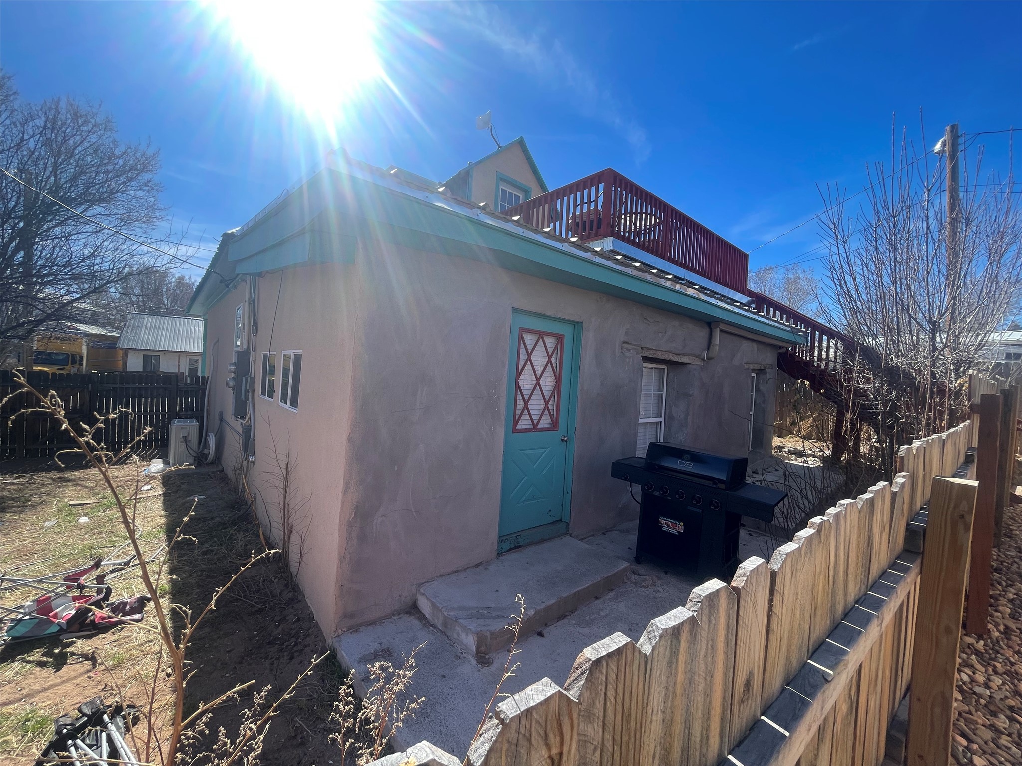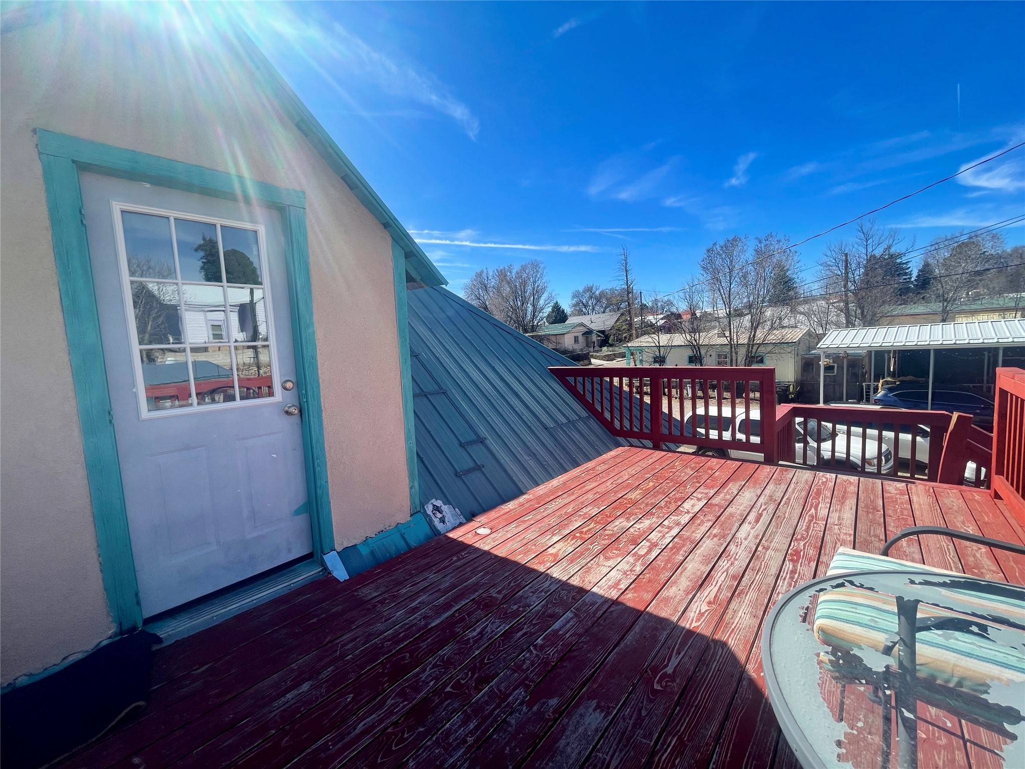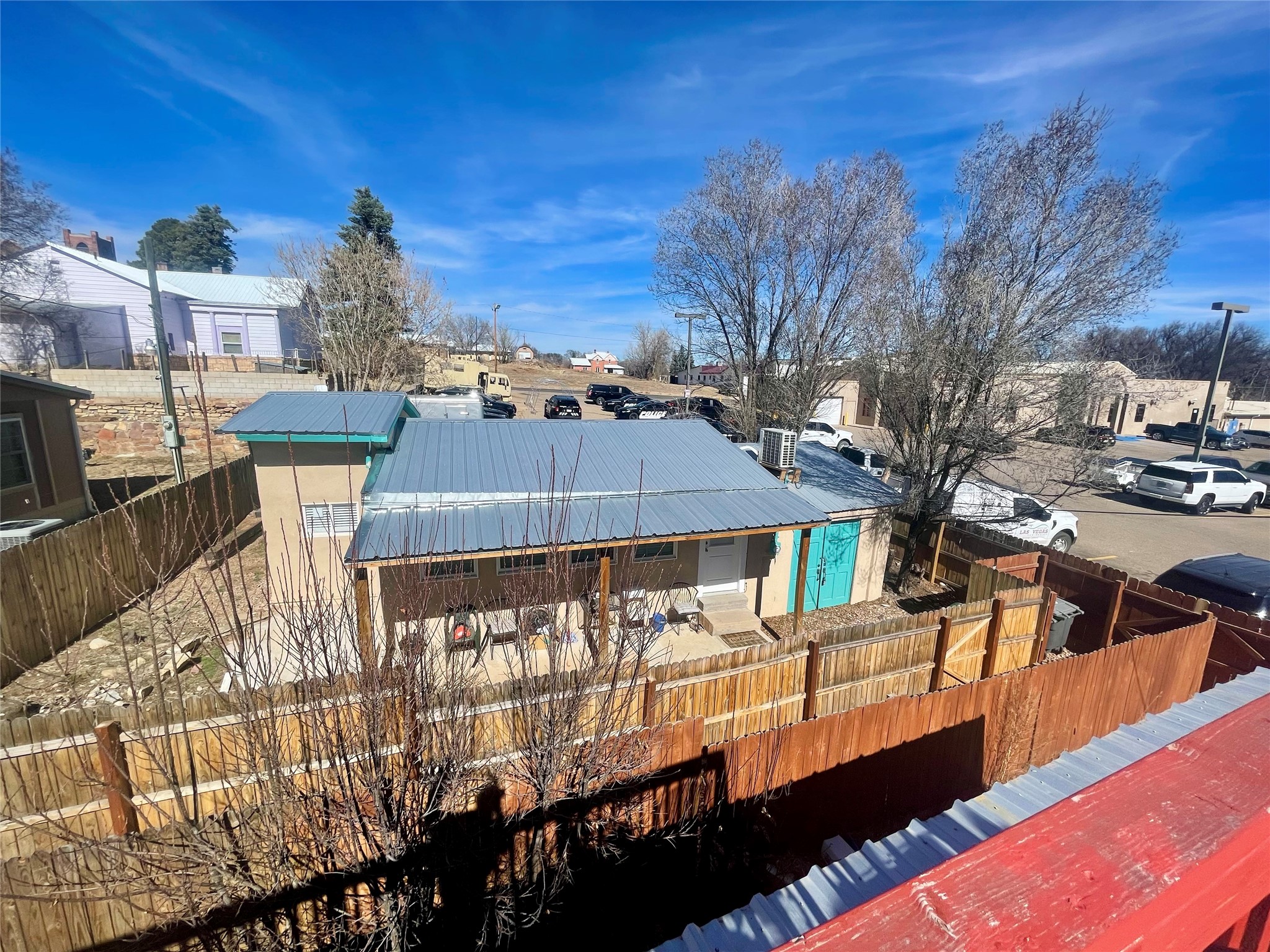Completely updated three unit investment property less than a block away from the historic Las Vegas, New Mexico plaza! The main home at the front of the property has 3 bedrooms, 1 and 3/4 bathrooms, lots of closet space, a charming covered front porch, high ceilings, nichos, wood floors, granite countertops, stainless dishwasher, built in microwave, laundry room with front loading washer dryer, transom windows, ornate ceilings, large fenced yard, and mature perennials. The upstairs studio apartment has granite counters, 3/4 bathroom, and a spacious deck with views of the plaza. The third unit is a stand alone home with a new covered portal, 2 bedrooms, full bathroom with stackable washer/dryer, granite counters, stainless dishwasher and fridge with bottom freezer drawer, built in microwave, completely fenced yard, and a large enclosed room waiting to be finished in whatever way you like - rec room, large 3rd bedroom? Newer ProPanel roof, mini-splits, stucco, appliances, cabinets, etc. etc. Live in the front home and rent the other 2 out or rent out all 3 to continue with a hefty income.