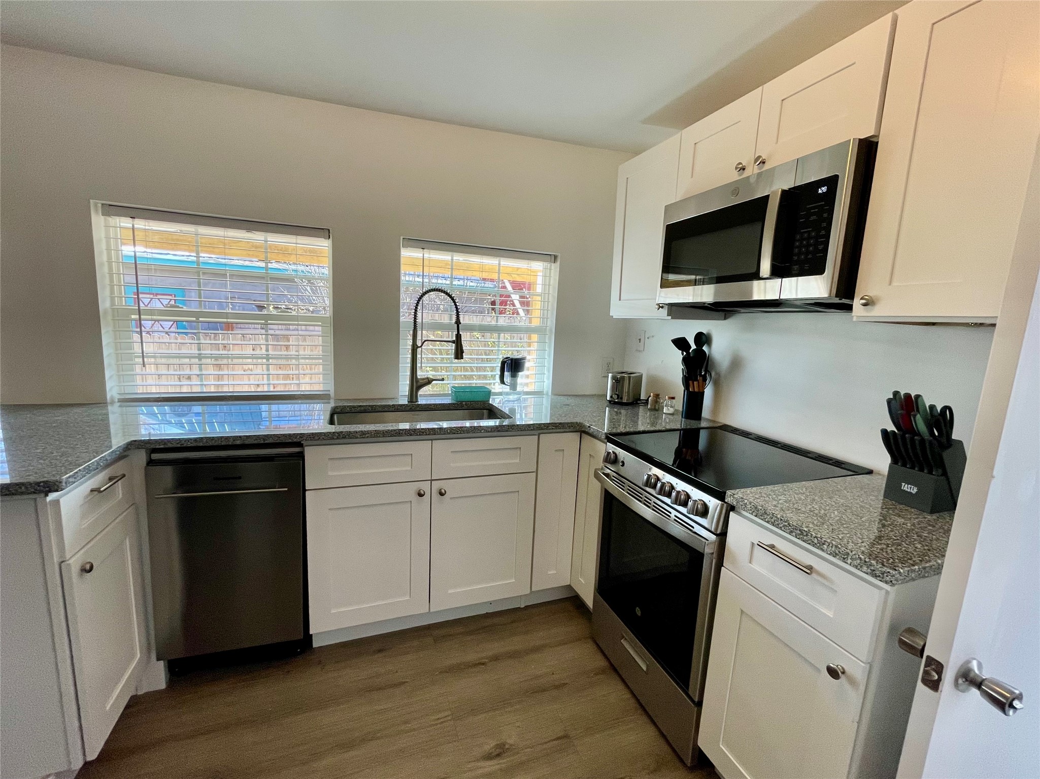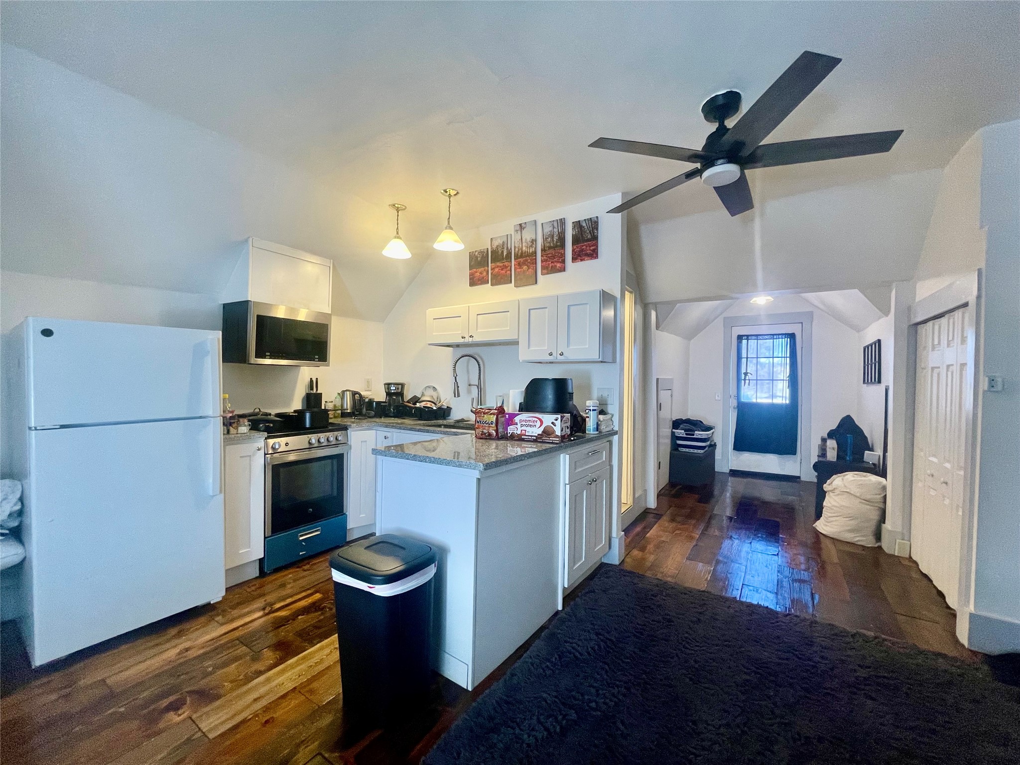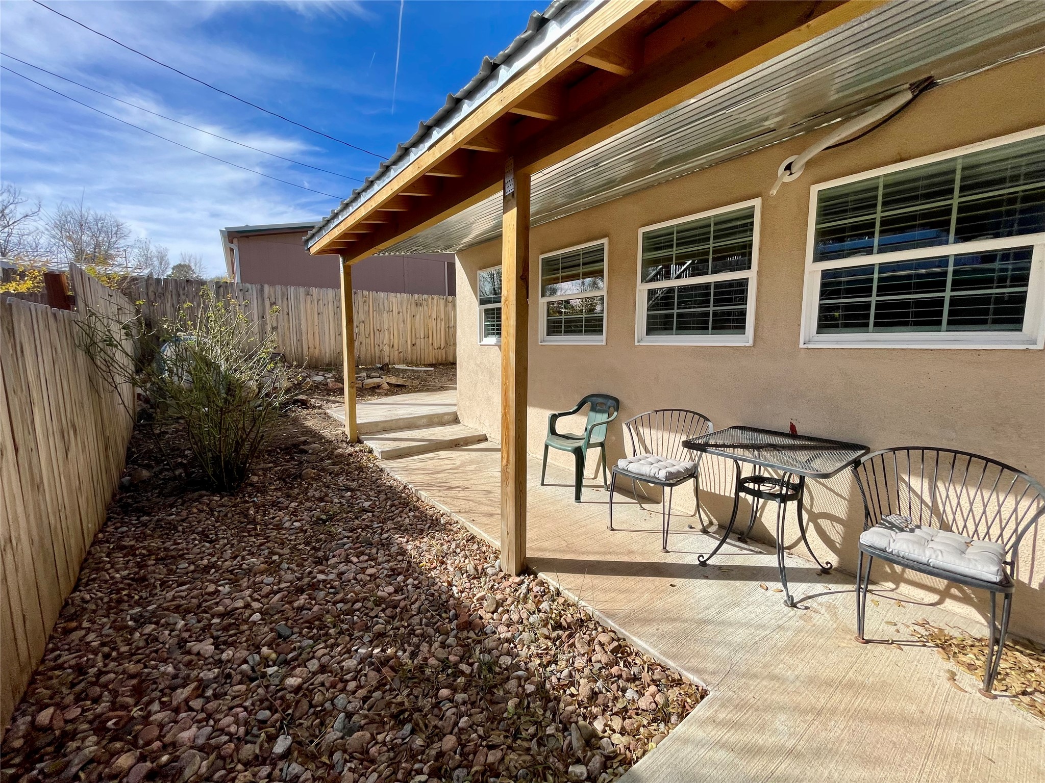 Completely updated three unit investment property less than a block away from the historic Las Vegas, New Mexico plaza! The main home at the front of the property has 3 bedrooms, 1 and 3/4 bathrooms, lots of closet space, a charming covered front porch, high ceilings, nichos, wood floors, granite countertops, stainless dishwasher, built in microwave, laundry room with front loading washer dryer, transom windows, ornate ceilings, large fenced yard, and mature perennials. The upstairs studio apartment has granite counters, 3/4 bathroom, and a spacious deck with views of the plaza. The third unit is a stand alone home with a new covered portal, 2 bedrooms, full bathroom with stackable washer/dryer, granite counters, stainless dishwasher and fridge with bottom freezer drawer, built in microwave, completely fenced yard, and a large enclosed room waiting to be finished in whatever way you like - rec room, large 3rd bedroom? Newer ProPanel roof, mini-splits, stucco, appliances, cabinets, etc. etc. Live in the front home and rent the other 2 out or rent out all 3 to continue with a hefty income.