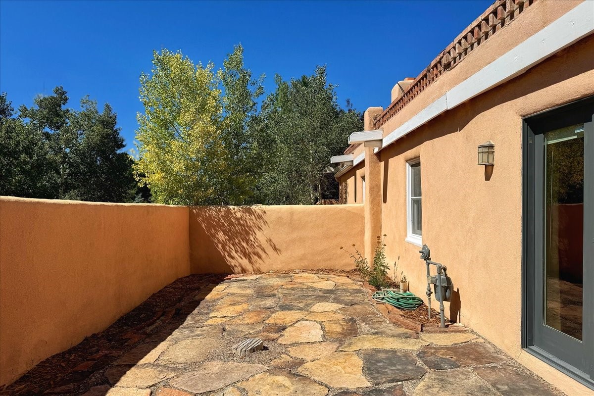 Charming Historic Adobe Home in Santa Fe's East Side Nestled in the heart of Santa Fe's coveted historic Eastside, this classic territorial style, all-adobe home, built in the 1900s, offers timeless character and exceptional location. Just a short stroll from iconic Canyon Road, this unique property includes a beautifully maintained main residence and a detached casita, large basement with bathroom and 5 parking spaces. Coming back on market Feb 2026. Main house is two bedrooms, 2 baths with kiva fireplace, original wood floors, plaster walls and traditional viga ceilings that exudes Santa Fe style. The brick-floored portal and multiple patios with adobe walls offer lovely options for outdoor living areas. Main house also features an 885 sq ft basement with separate exterior entrance, bathroom and multiple rooms for added possibilities for studio, office or remodel into living space. Property also includes a detached two-bedroom, one-bath casita--perfect for guests or as a proven income-producing rental - with a remodeled contemporary kitchen and utilities separately metered. This rare find blends convenience with traditional Southwestern charm and is a truly special opportunity to own a piece of Santa Fe history with strong rental potential and unbeatable walkability. Price subject to existing lienholder for short sale.