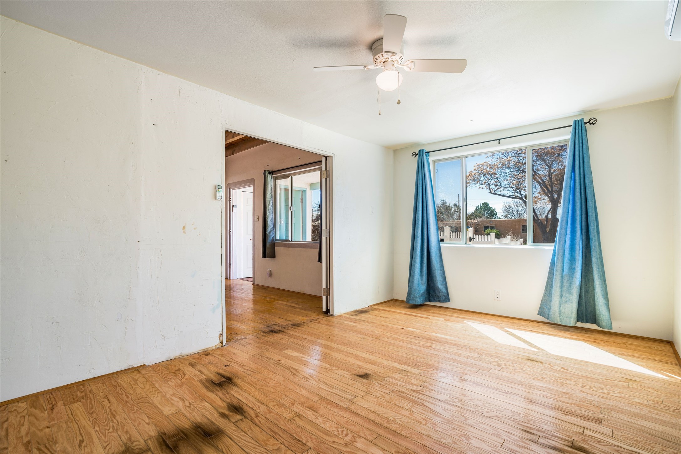 Located in one of Santa Fe's most desirable neighborhoods, this classic Stamm home in Casa Solana blends timeless charm with structural upgrades. Built in 1955, the home offers 3 bedrooms, 1 full bath and 1 bath, and approximately 1,448 square feet of living space. Warm wood and tile flooring add character and durability throughout the home, while two fireplaces create inviting spaces to gather and relax. Two of the bedrooms offer flexibility to serve as primary suites, ideal for guests or multi-generational living. Recent updates include a new roof, windows, and mini-split systems for heating and cooling. The home is connected to all city utilities. Come add your personal updates. The backyard provides space to enjoy Santa Fe's beautiful outdoors, start a garden, or relax under the open sky, and includes two convenient storage sheds. Ideally located just minutes from the Plaza, shopping, and restaurants, with easy access to the Santa Fe River trail, perfect for walking, biking, and outdoor recreation. Schedule your private showing today.