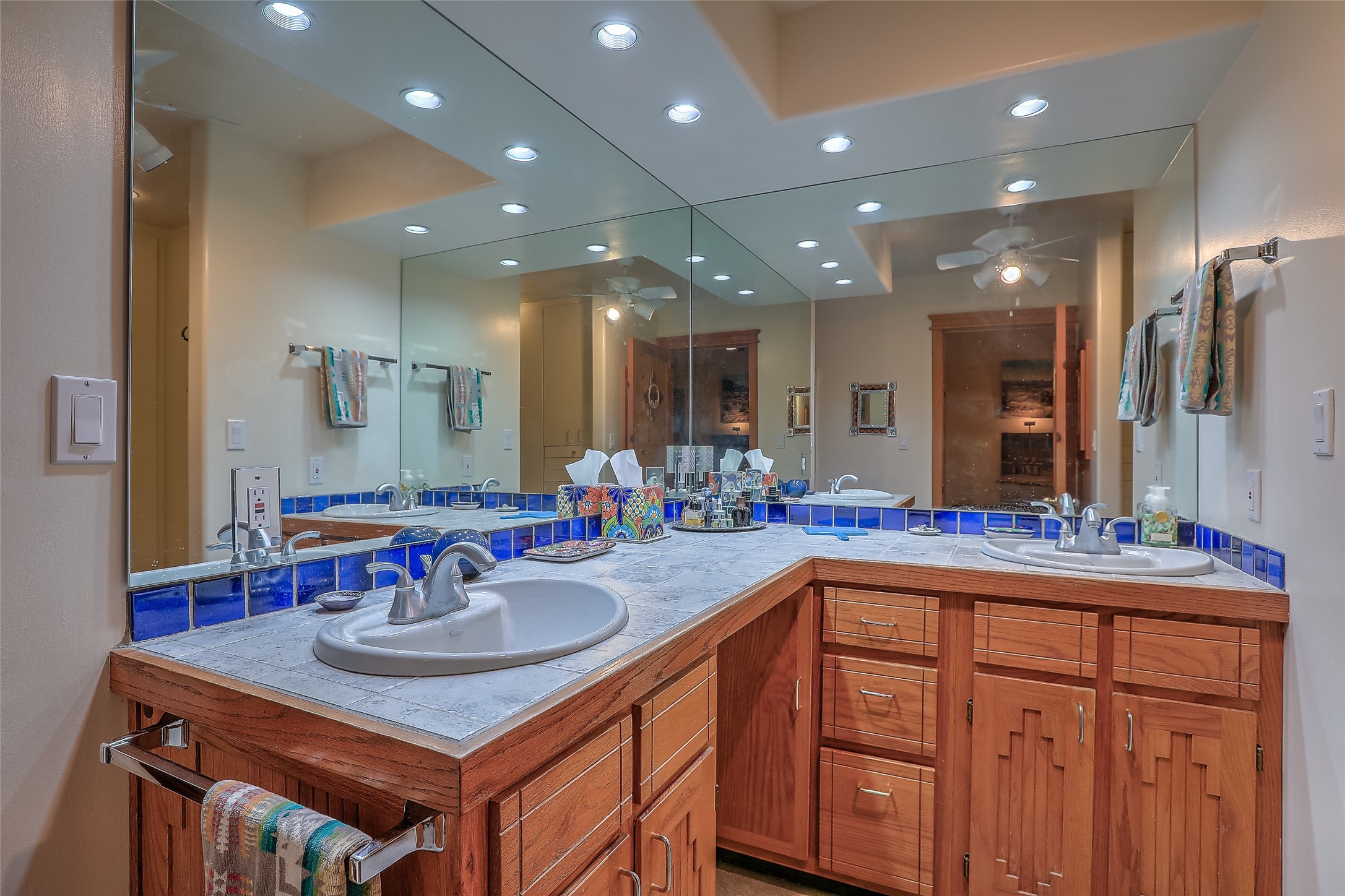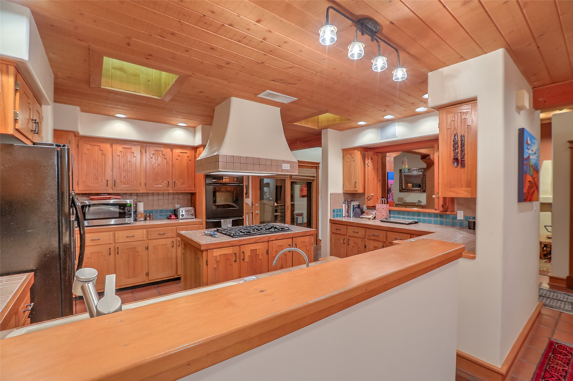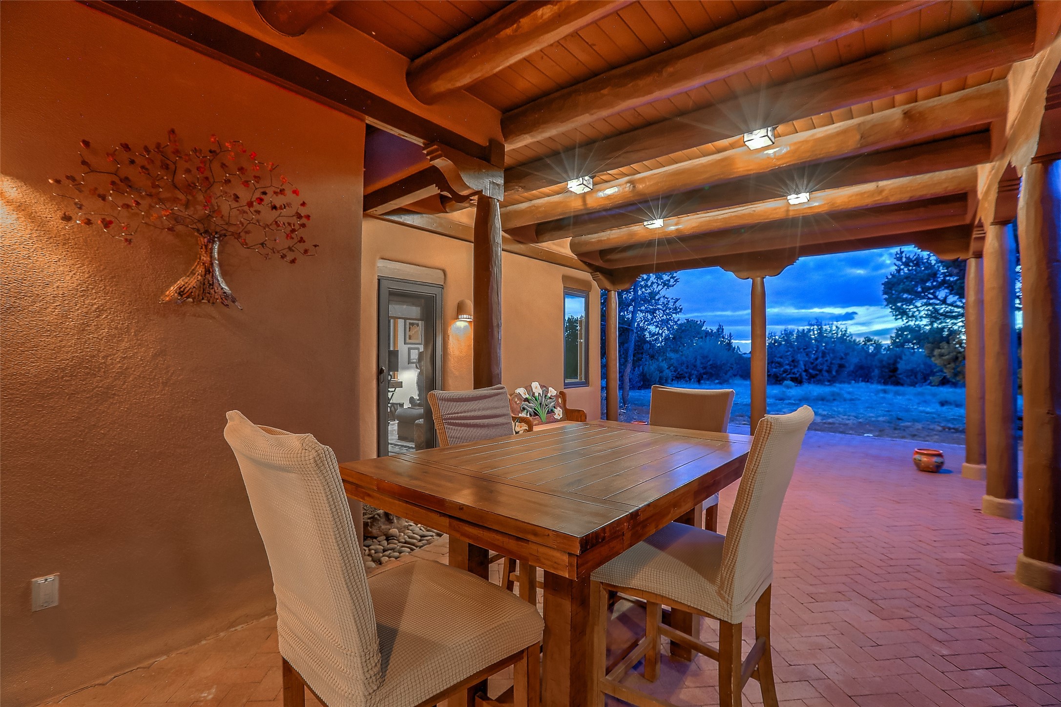 Welcome to lovely 4 Morning Glory! Salva Tierra home with Sangre views and sunset beauty. This is a SHOWCASE HOME. Thoughtful architectural custom design and handcrafted woodwork throughout with lots of natural light, this single level home (two steps to living room) is in absolutely pristine condition. Spacious master suite with kiva fireplace and sparkly custom bathroom near well planned powder room and walk in closet. Love to cook? This is a great space for entertaining! The kitchen is more than a kitchen... it is a welcoming place to spend time with loved ones, with a wonderful layout and is cozy yet also has generous counter and cabinet space plus an eat-in breakfast nook that is a favorite spot. Formal dining area too with a walk out dining area under the back portal. Private and quiet third bedroom with fireplace, has great natural light & can also be a bright office or studio space with a walk out door to access the back portal. Beautifully landscaped & low maintenance gardens. Multiple outdoor patio spaces; with a back sunset portal and a walled master bedroom patio that also has garage access and access to the yard. All rooms have outside access. This makes indoor/outdoor living truly accessible and enjoyable! Forced air heating system + AIR CONDITIONING. Newer windows & newer roof. Dream 2 car garage with lots of built-in storage keeps everything neat & organized. Sonos sound system stays too!
