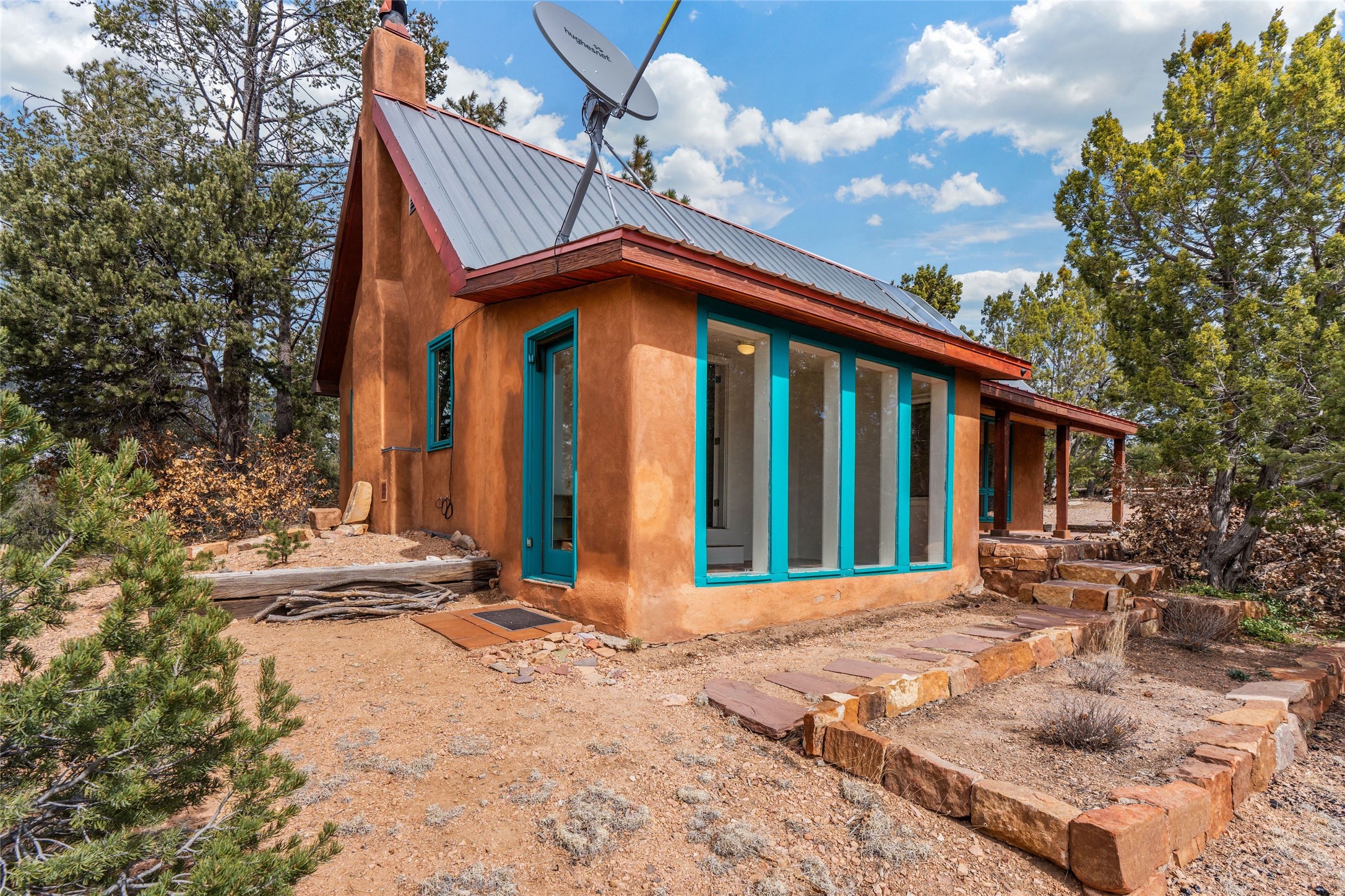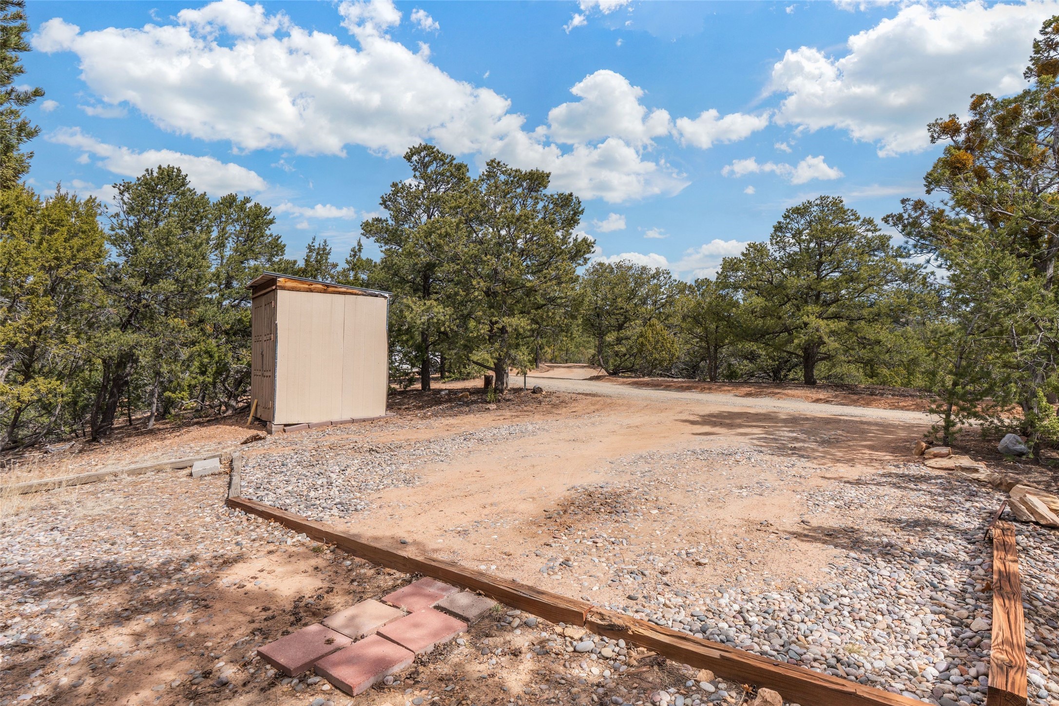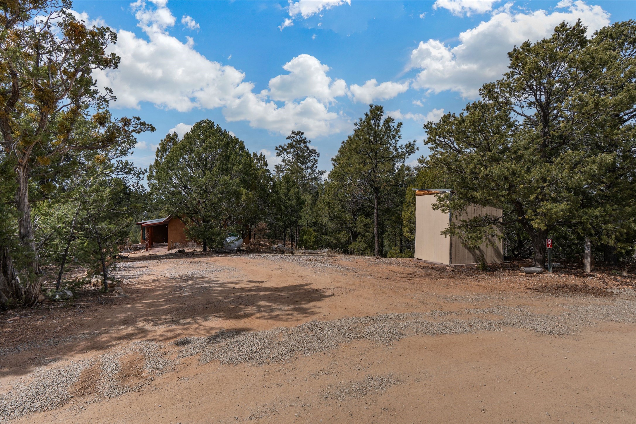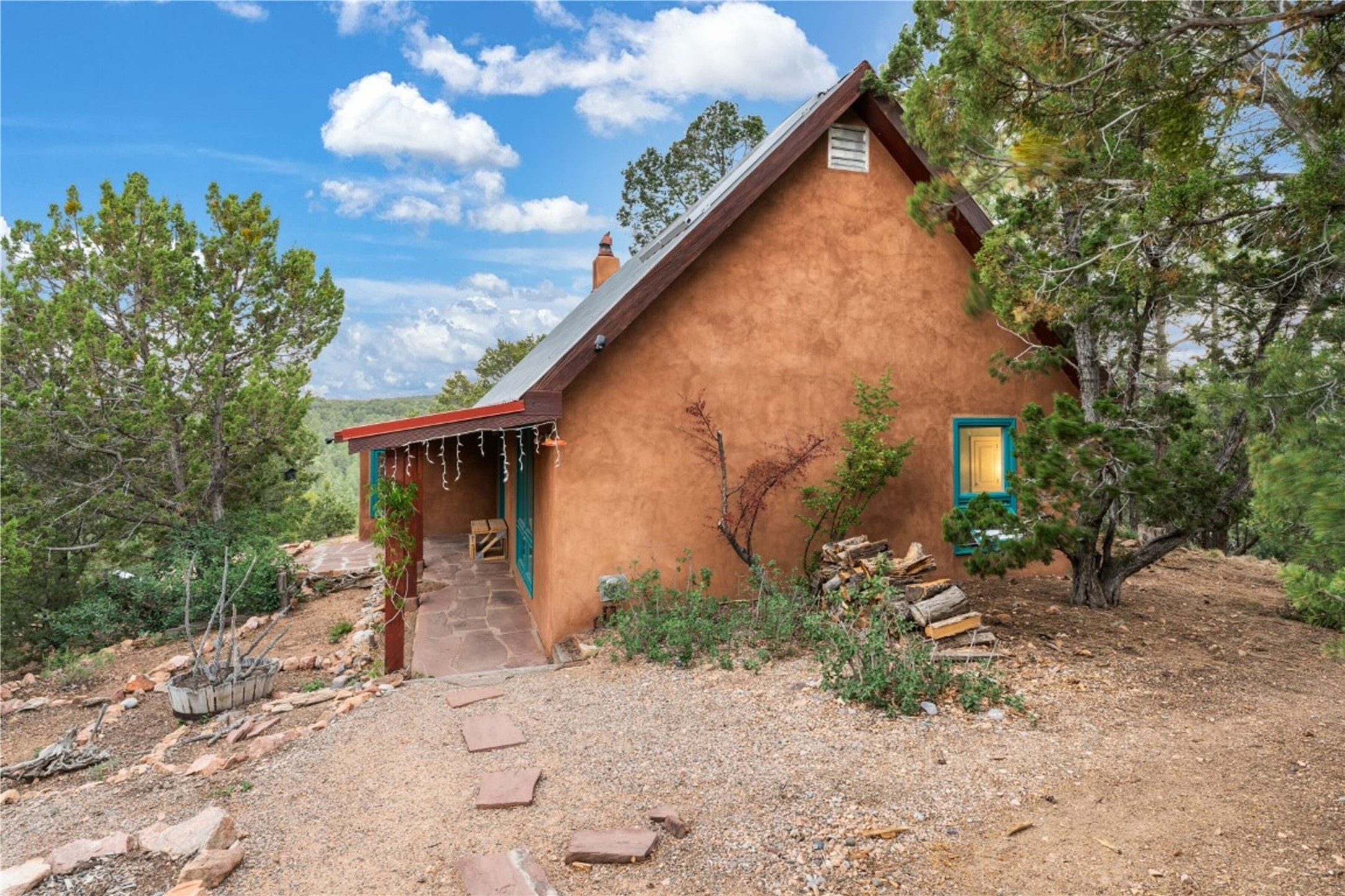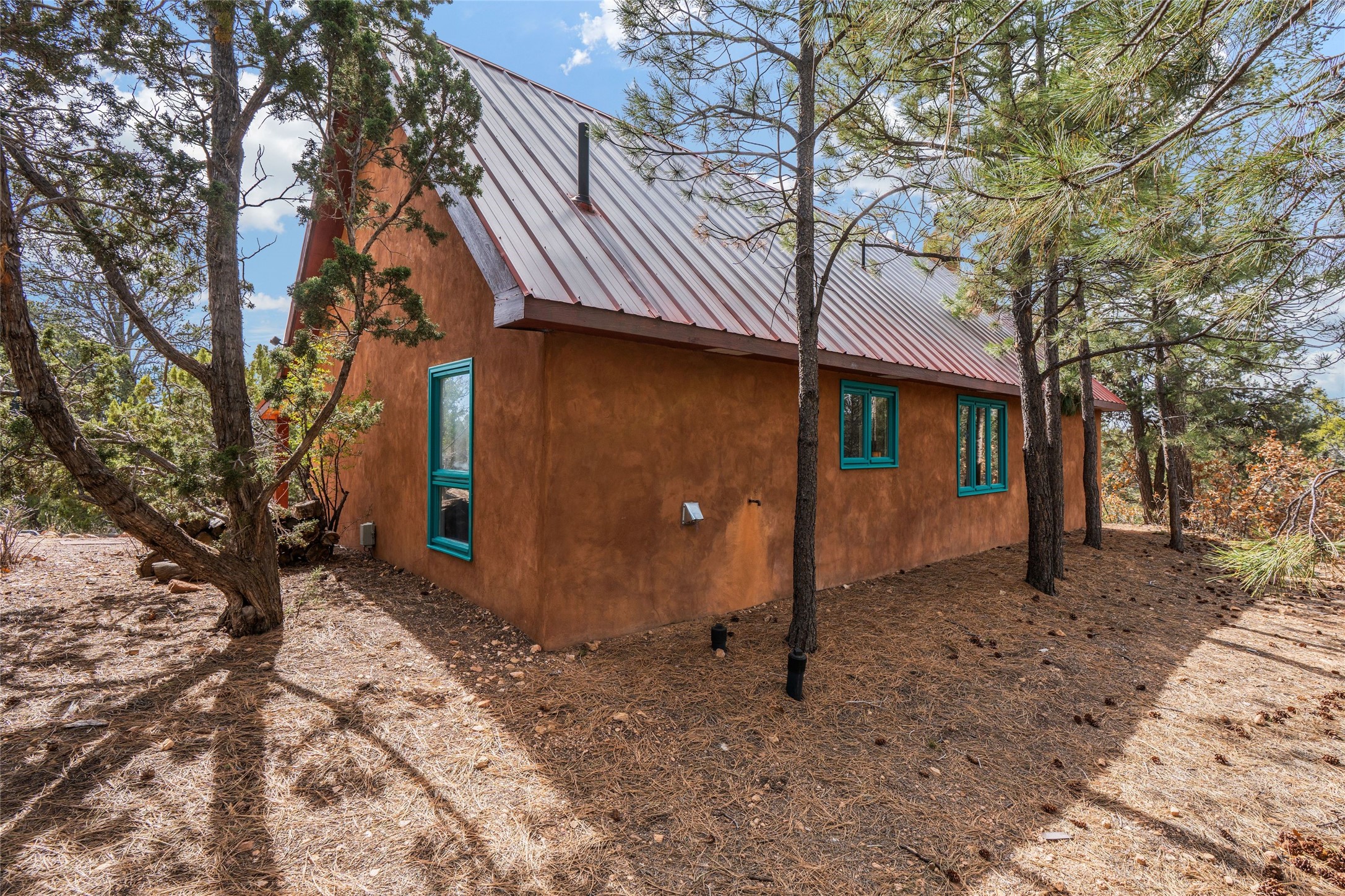 Nestled among the quiet hills of Caada de los Alamos, this tranquil 1-bedroom, 1-bathroom retreat sits atop 5 private acres overlooking a sweeping green valley of ponderosa pines and juniper, with Cerros Negros rising softly in the distance. Positioned to take in both light and long views, the 1,138-square-foot home opens with a charming living room centered around a cozy wood-burning fireplace--the heart of the space.Step down into the sun-drenched bonus room, an inviting space perfect for morning coffee, an afternoon read, or a peaceful work-from-home hideaway. Thoughtful storage is found throughout, including a usable attic and a standalone shed. The pitched roof features a solar hot water panel that helps support energy-efficient water heating.Outside, the property is defined by quiet and natural beauty--the soft wind moving through the forest, wildlife passing by, and clear night skies stretching overhead. Though wonderfully secluded, the home sits just about 25 minutes from the Plaza, offering a rare balance of mountain-retreat living with convenient access to Santa Fe's amenities and nearby National Forest trails.A calming high-desert getaway with space, privacy, and possibility--ready for its next owner to make it their own.