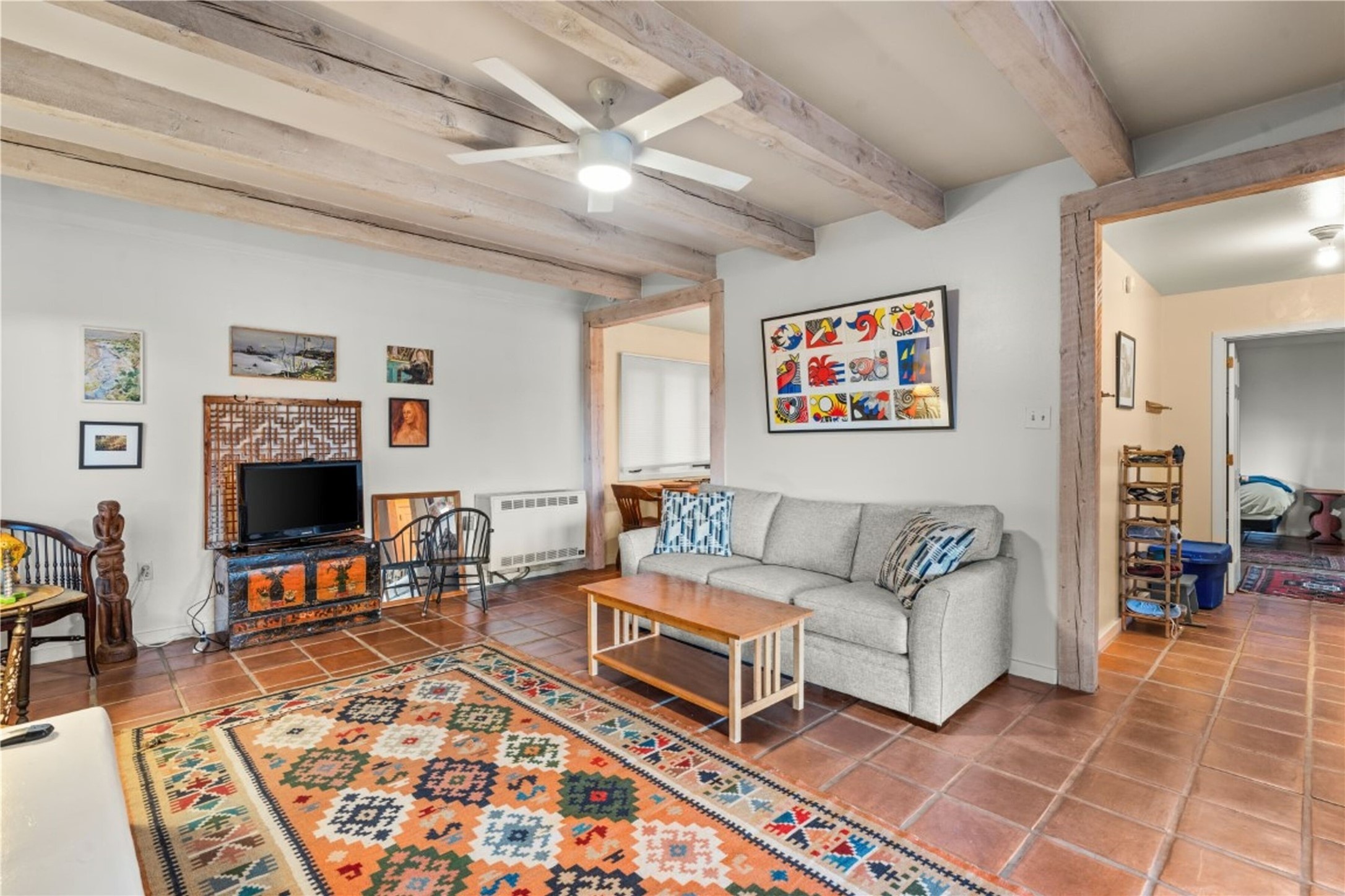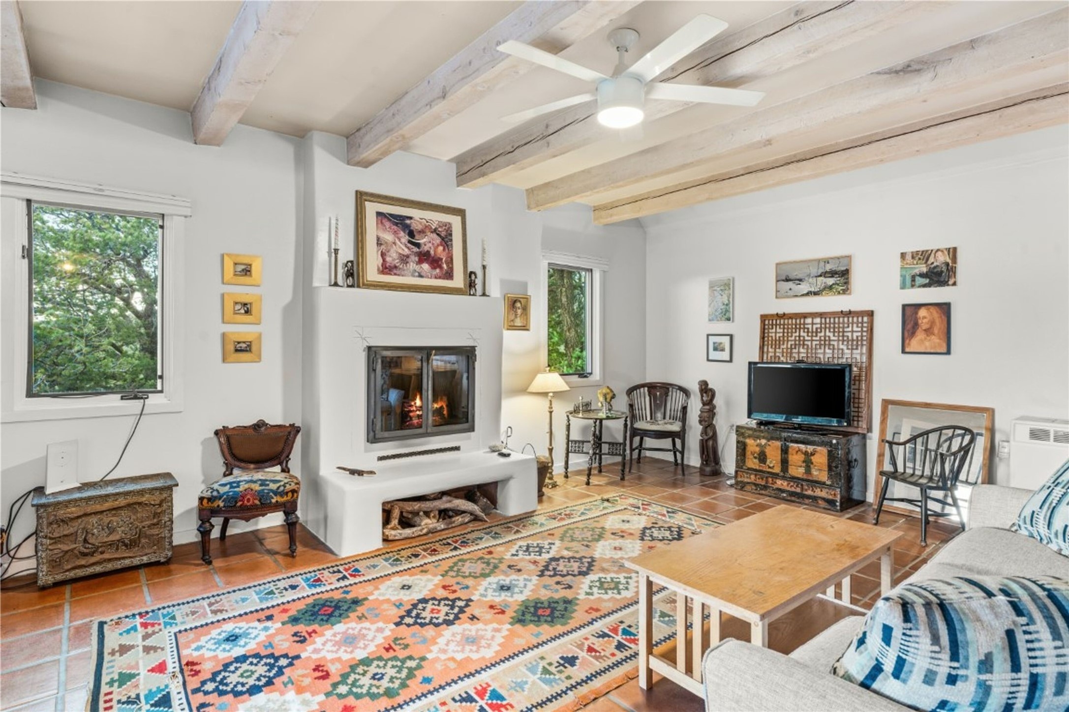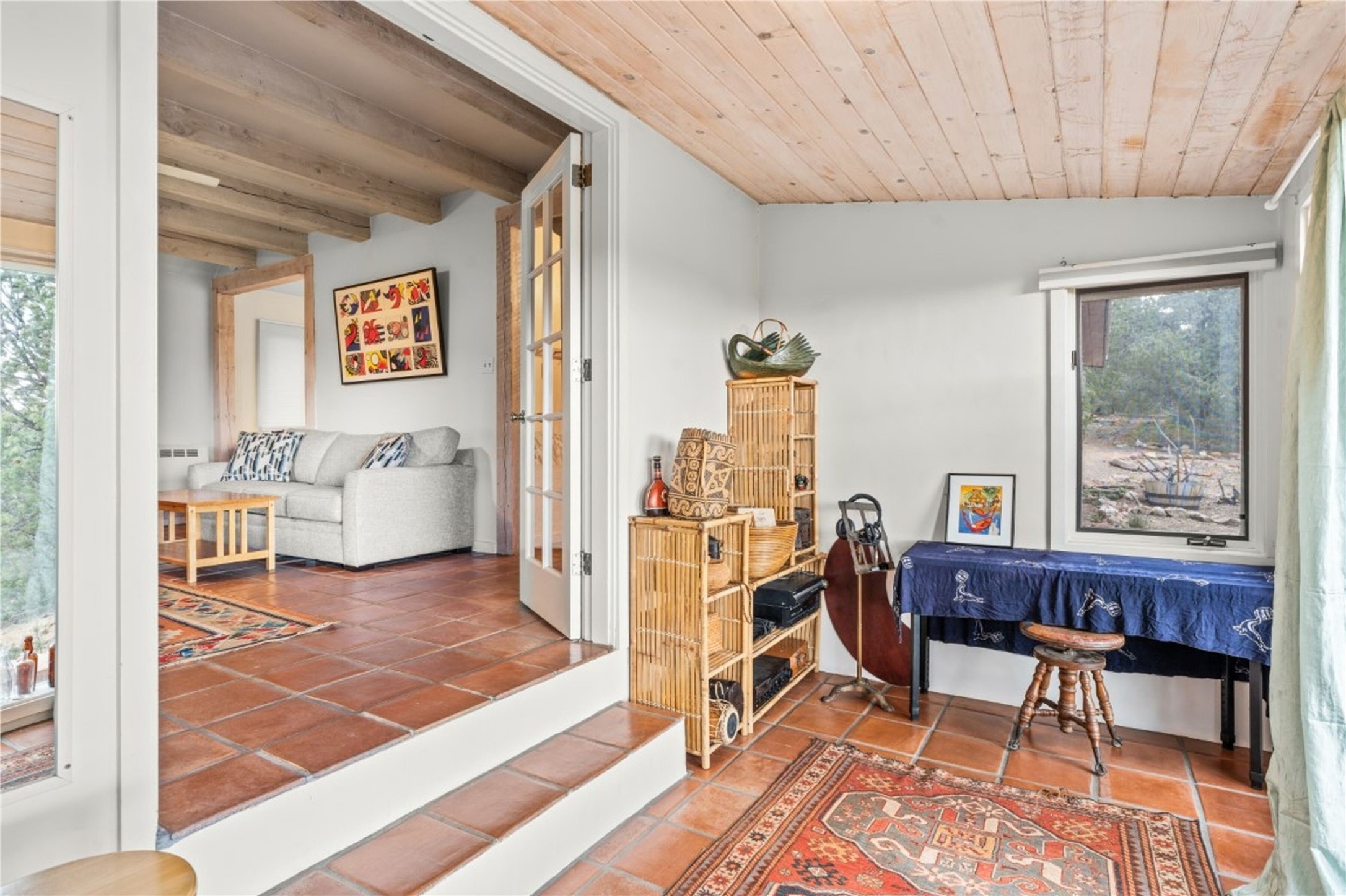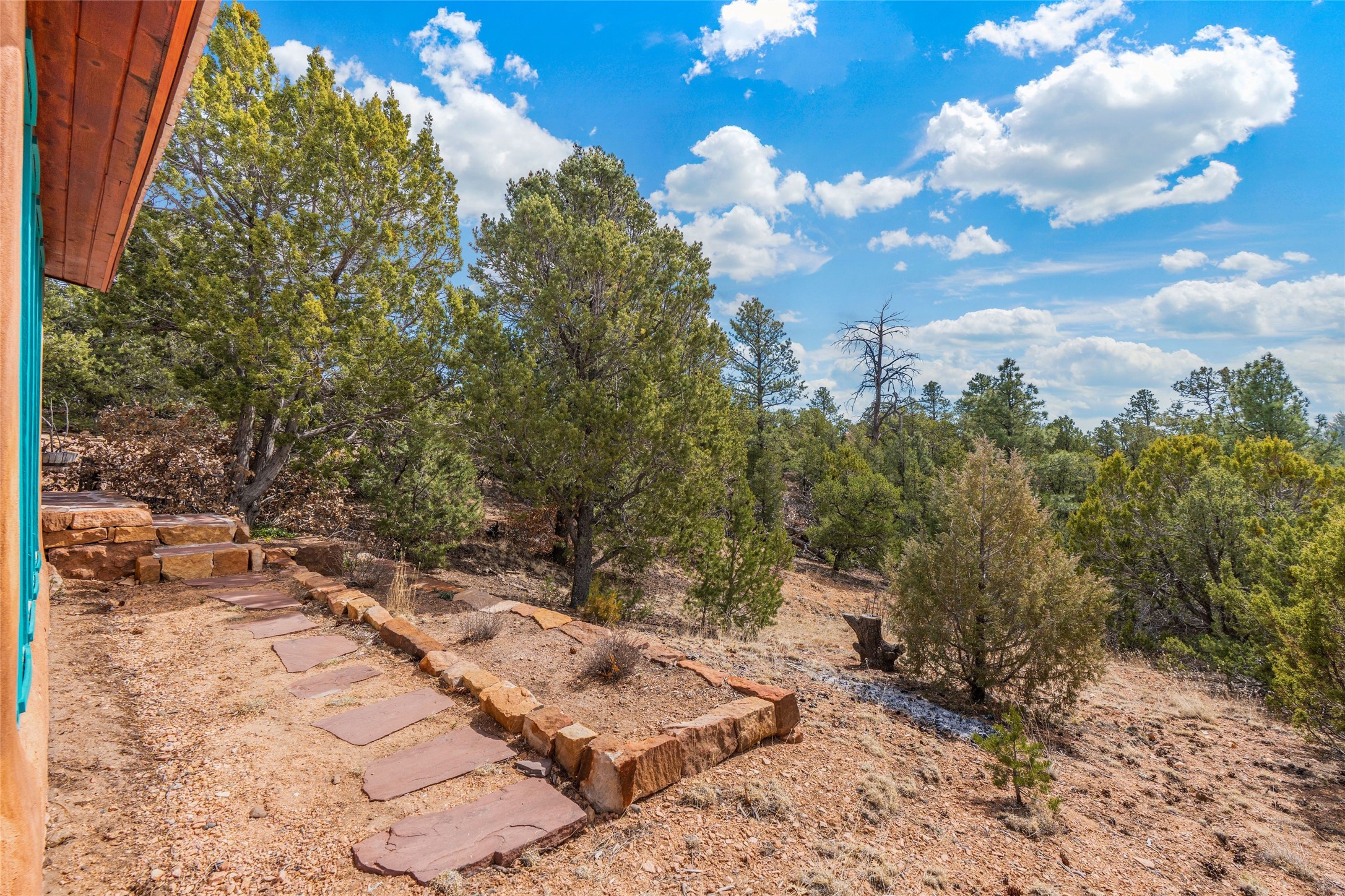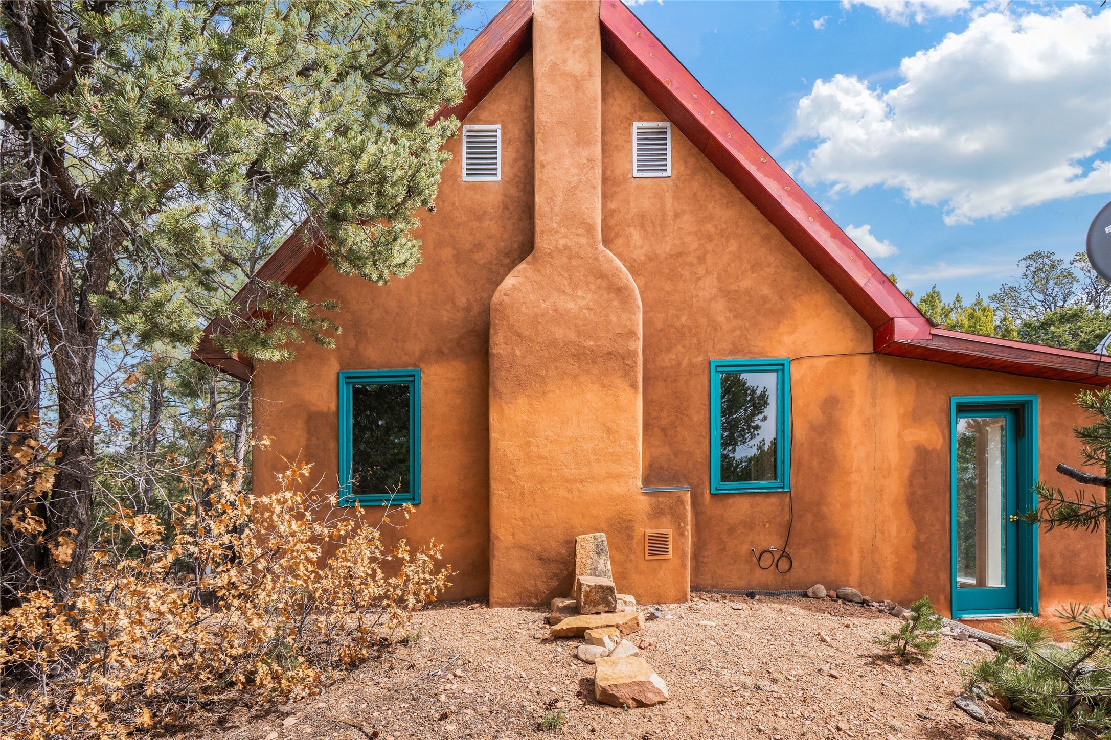 Nestled among the quiet hills of Caada de los Alamos, this tranquil 1-bedroom, 1-bathroom retreat sits atop 5 private acres overlooking a sweeping green valley of ponderosa pines and juniper, with Cerros Negros rising softly in the distance. Positioned to take in both light and long views, the 1,138-square-foot home opens with a charming living room centered around a cozy wood-burning fireplace--the heart of the space.Step down into the sun-drenched bonus room, an inviting space perfect for morning coffee, an afternoon read, or a peaceful work-from-home hideaway. Thoughtful storage is found throughout, including a usable attic and a standalone shed. The pitched roof features a solar hot water panel that helps support energy-efficient water heating.Outside, the property is defined by quiet and natural beauty--the soft wind moving through the forest, wildlife passing by, and clear night skies stretching overhead. Though wonderfully secluded, the home sits just about 25 minutes from the Plaza, offering a rare balance of mountain-retreat living with convenient access to Santa Fe's amenities and nearby National Forest trails.A calming high-desert getaway with space, privacy, and possibility--ready for its next owner to make it their own.