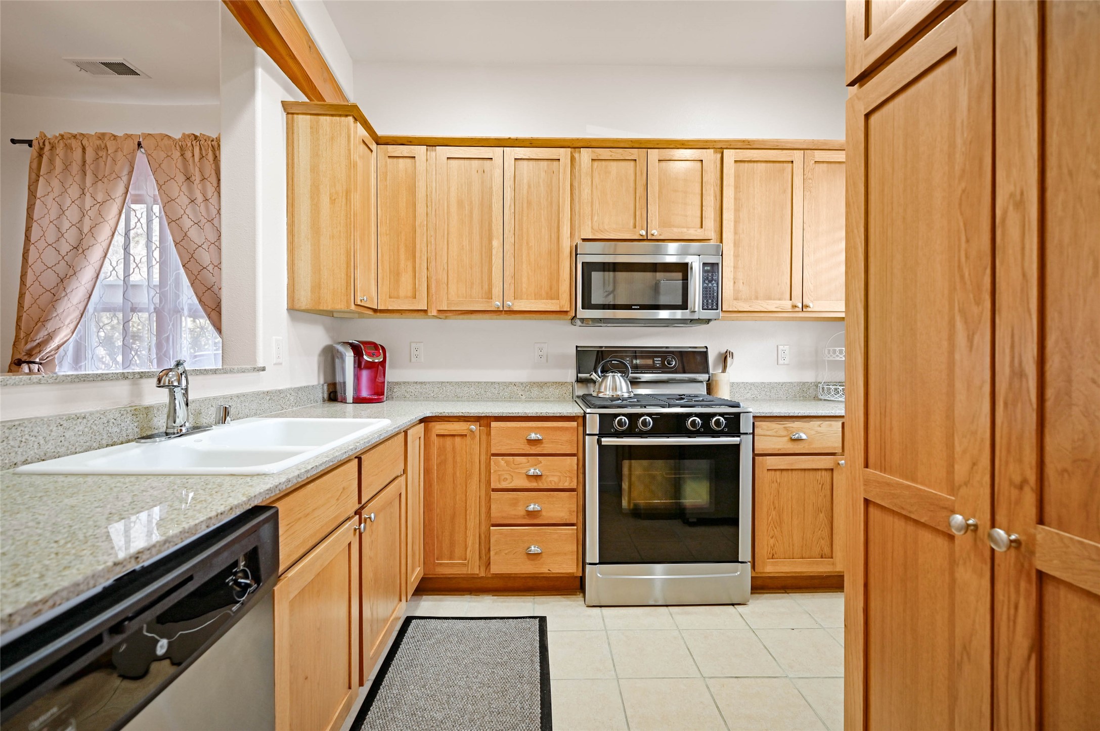 Centrally located condo! This fully furnished end unit features two bright bedrooms and a wonderful private patio. Unit #196 is being offered with all photographed items and would make a great investment property or ready to move in place to live. Tucked back near the amenities, the home has been carefully maintained and features thoughtful design touches including wood vigas, recessed nichos, and ample storage. The gated complex includes mature trees, grass, a community pool, clubhouse, and gym.