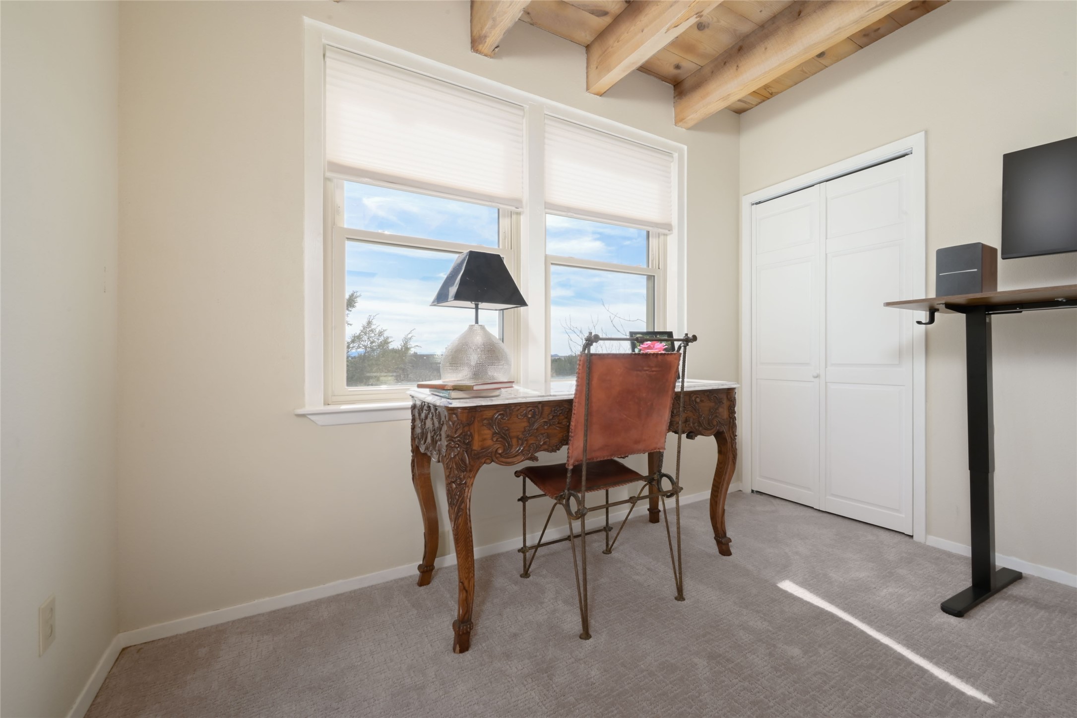 Enjoy peaceful living in this lovely home set on 1.3 acres with beautiful views. Featuring 3 bedrooms and 2 bathrooms, the home offers comfortable space for everyday living.Upon entering, you'll notice the warm character of wood-beamed ceilings and classic brick flooring, creating an inviting interior complemented by a modern kitchen with stone and butcher-block countertops. Numerous updates have been completed over the past five years, including kitchen and bathroom improvements, insulated windows, and updated stucco.The fenced backyard offers privacy and charm with mature fruit-bearing trees and a flagstone patio--perfect for relaxing or entertaining while enjoying the surrounding scenery.Conveniently located near the Agora Shopping Center with restaurants and everyday amenities. Community recreational facilities include a community center, horse facilities, jogging paths, playground, pool, tennis courts, walking paths, a dog park, and additional storage.