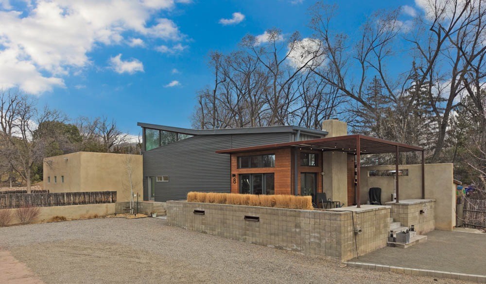 Discover a Scandi-Modern sanctuary where architectural precision meets the organic beauty of the Tesuque Valley. This 3-bed, 2-bath retreat offers a lifestyle of quiet luxury and environmental harmony. Located on a lush .84-acre lot along a private gated road, you are perfectly positioned just 10 minutes from downtown Santa Fe while remaining steps away from hiking trails, the iconic Tesuque Village Market, and fine dining at El Nido.Evolution of Design: This home is a masterclass in modern reconstruction. While the original steel structure dates to 1967, the home was meticulously rebuilt from the framing and foundation up in 2006. Further architectural expansions followed in 2010 and 2016, adding a garage, custom patios, and a sophisticated "pop-top" second story. The exterior is a striking composition of steel panels, smooth stucco, and a seamless, high-durability pro-panel metal roof. Inside, the "Scandi" influence is felt through soaring ceilings and expansive clear-view windows that invite the outside in, framing glorious high-desert sunsets and the region's famous dark skies.The interior boasts high-end, tactile finishes including polished concrete and tile flooring, sleek concrete countertops, and modern European cabinetry. A main-floor primary suite ensures long-term accessibility and ease of living. For year-round climate control, the home is equipped with efficient ductless mini-split HVAC units and a cozy gas fireplace, ensuring comfort regardless of the season.The grounds are a rare find with a running acequia with valuable transferable water rights. This is a true gardener's paradise, complete with a 10x20 powered greenhouse, an electric-equipped chicken coop, and a productive orchard of apricot, pear, and apple trees--all supported by a comprehensive drip irrigation system. Outdoor living is redefined by a wrapped patio with a custom steel portal. With a private well and septic, this property offers the ultimate in autonomy and modern elegance.