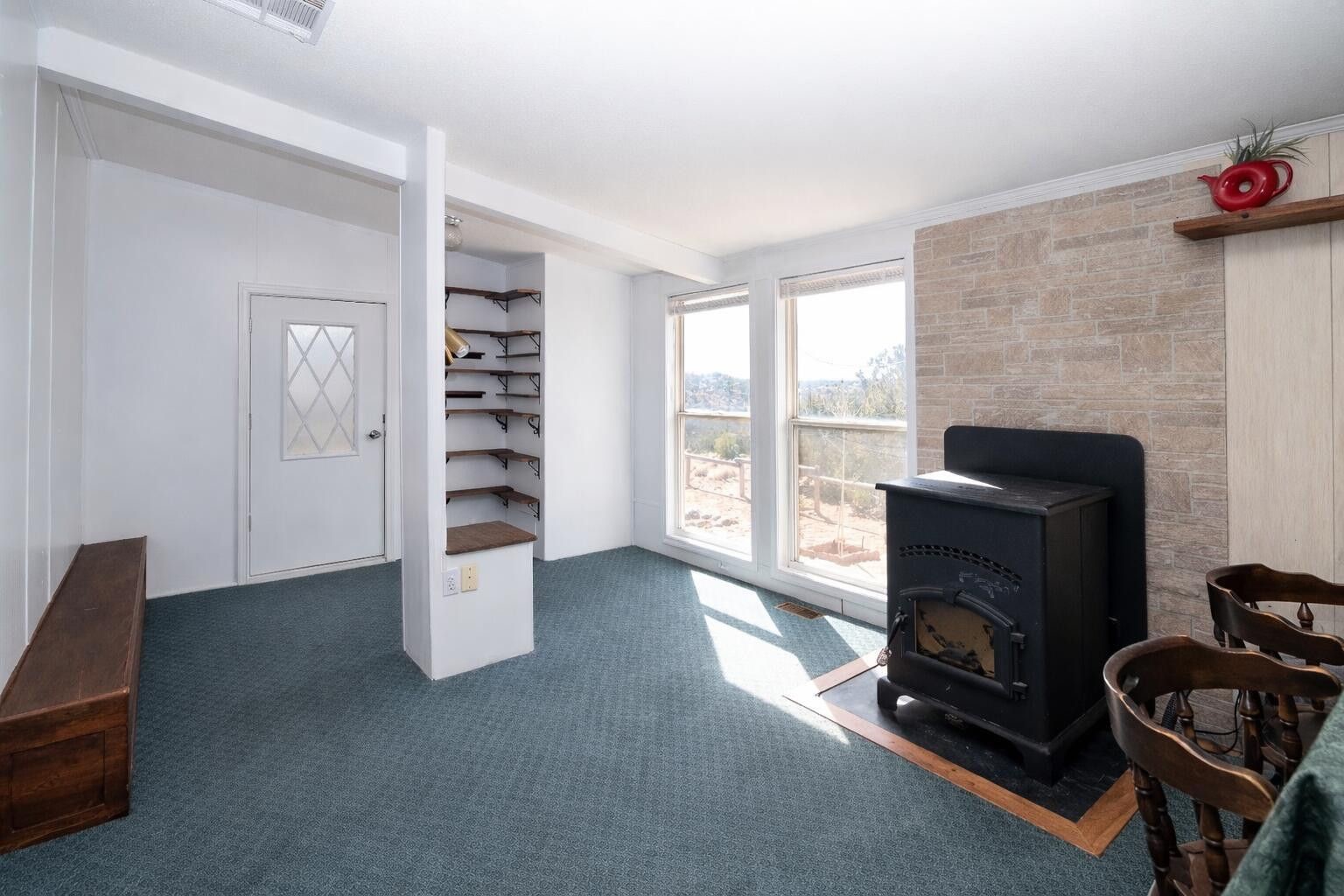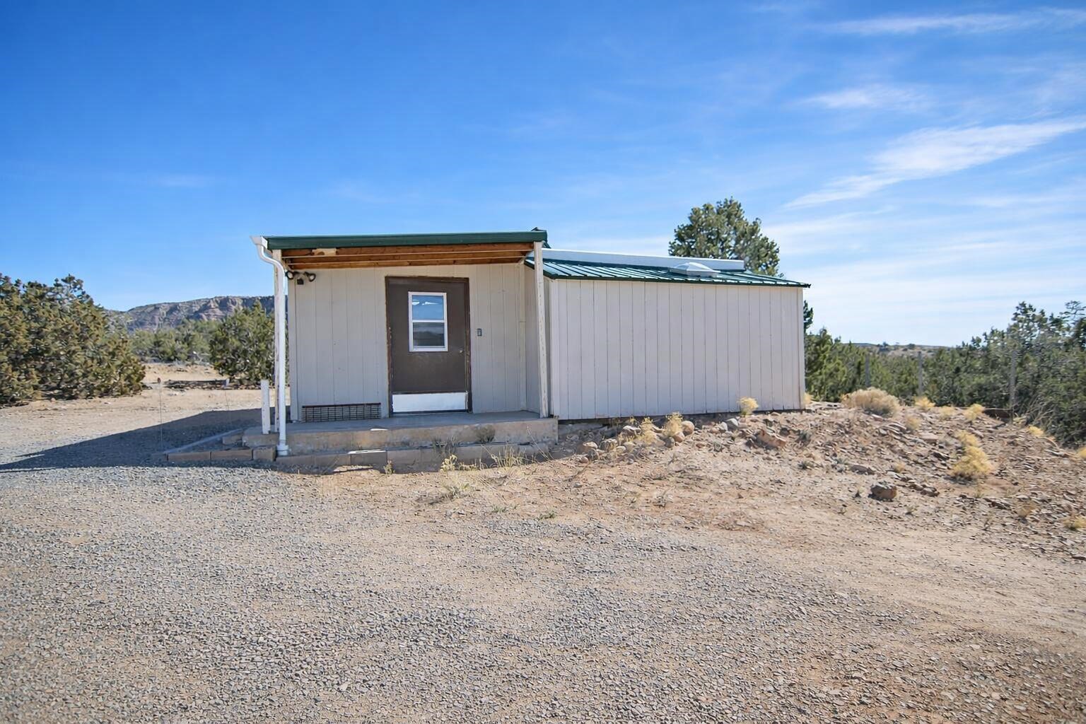 -bedroom, 2-bath manufactured home on a permanent foundation situated on approximately 1.6 acres with views overlooking the Jemez Valley. The home offers a functional floor plan with defined living and dining areas and ample natural light throughout. The property includes a detached casita/workshop structure, providing flexible space for storage, hobbies, workspace, or potential guest use (buyer to verify permitted uses). The acreage allows for additional outdoor improvements, parking, or recreational use. Located in a scenic setting with open surroundings, this property combines residential living with additional usable land and accessory space.