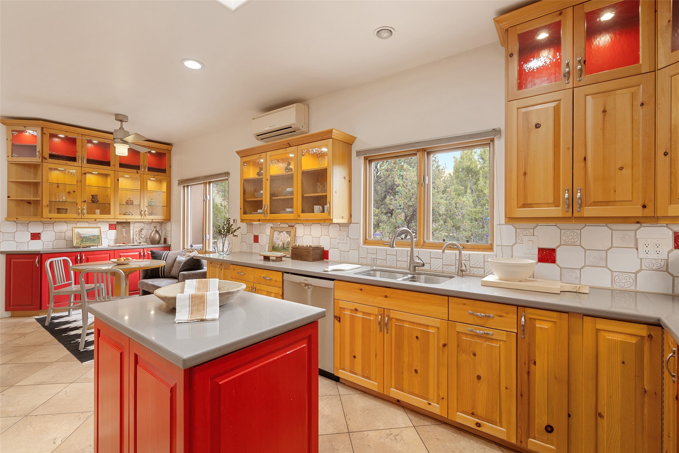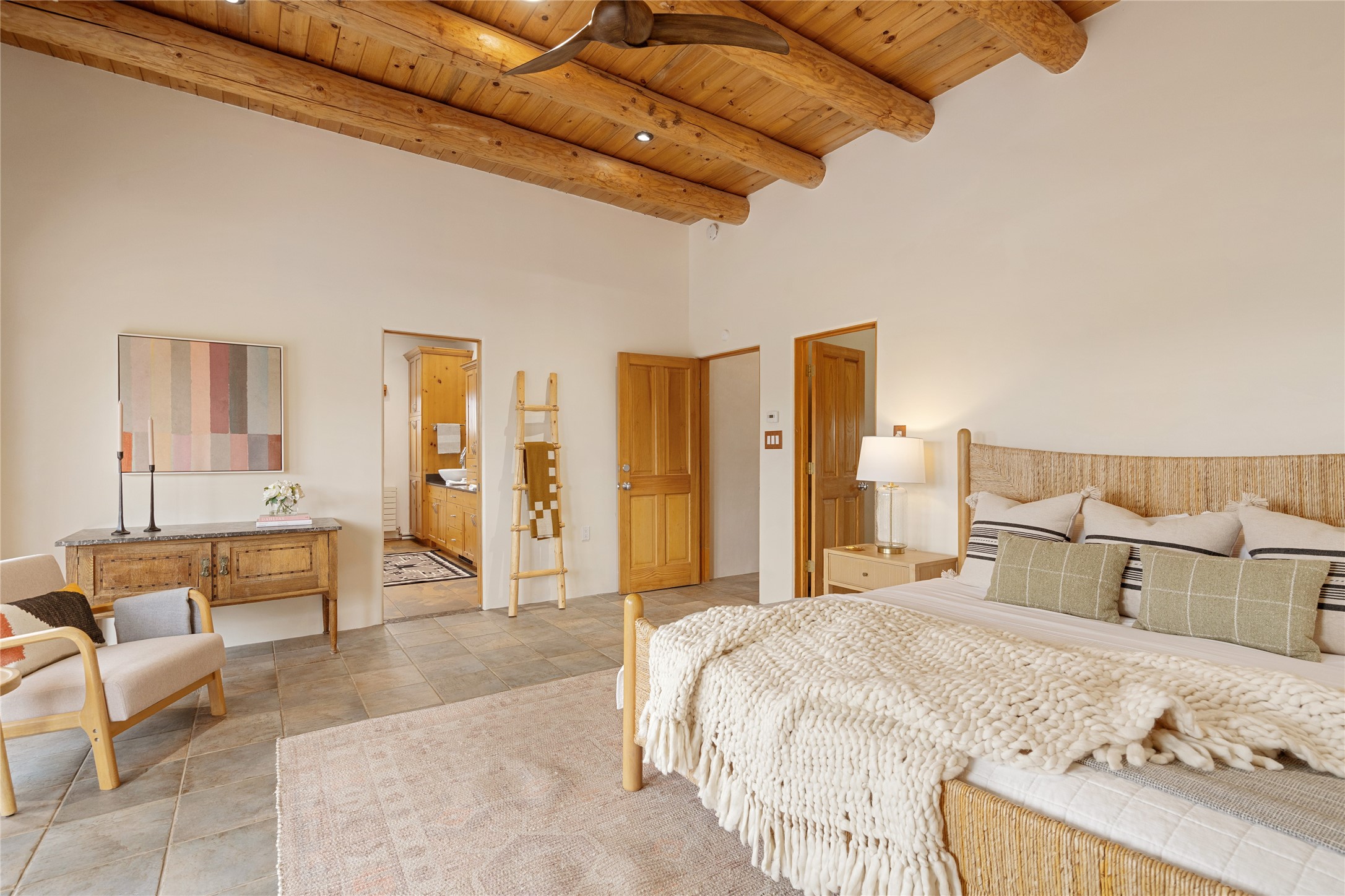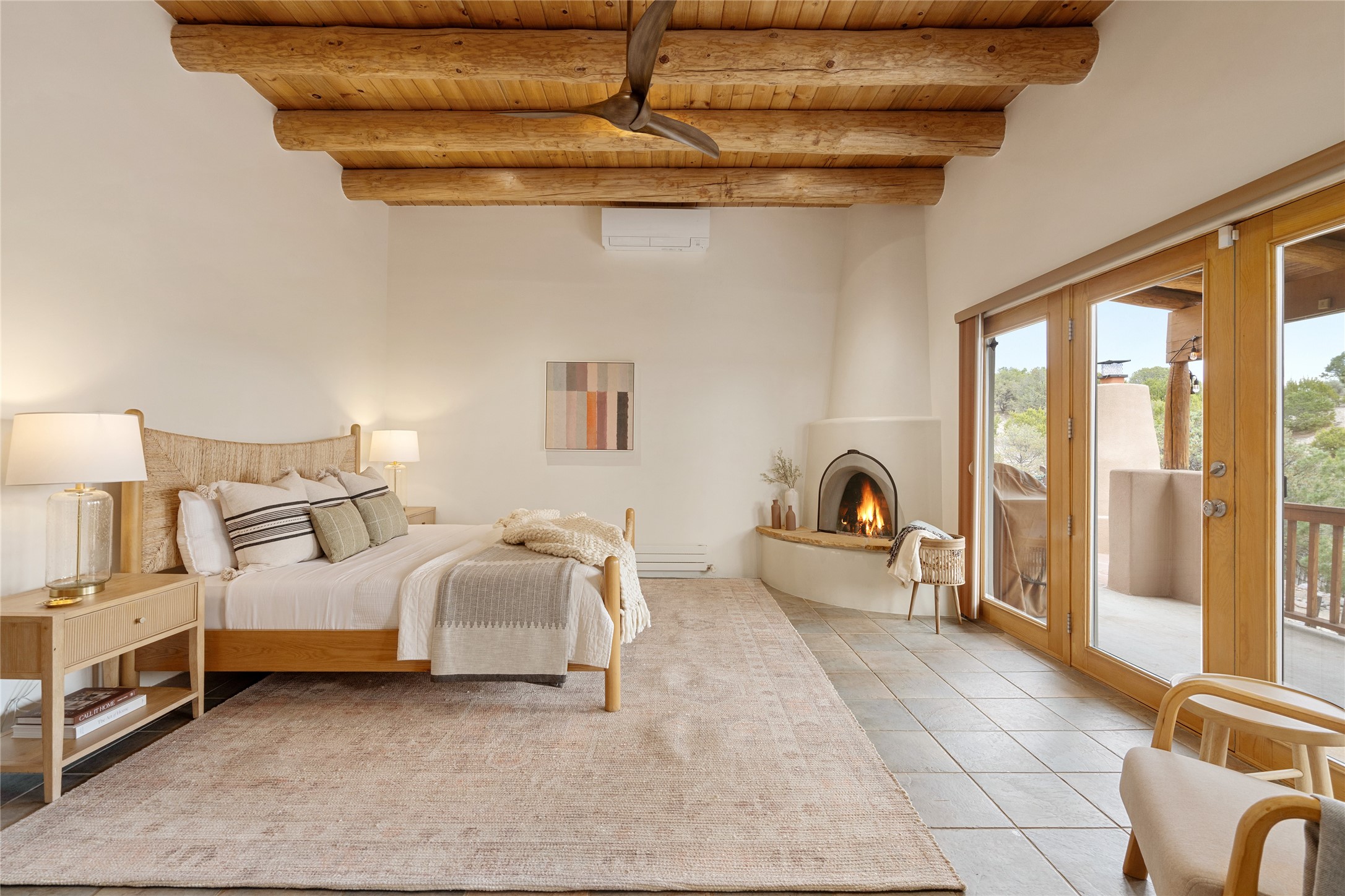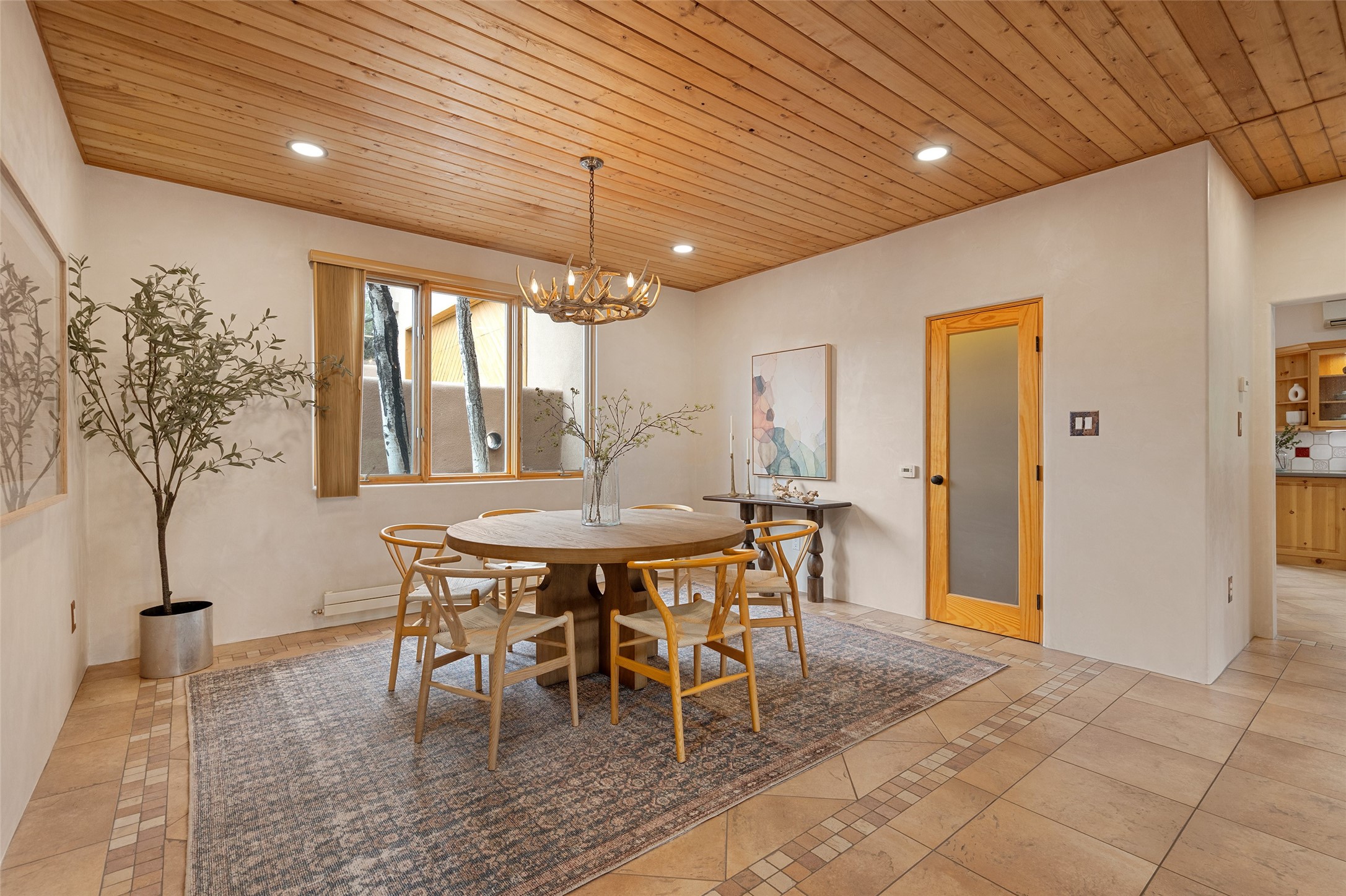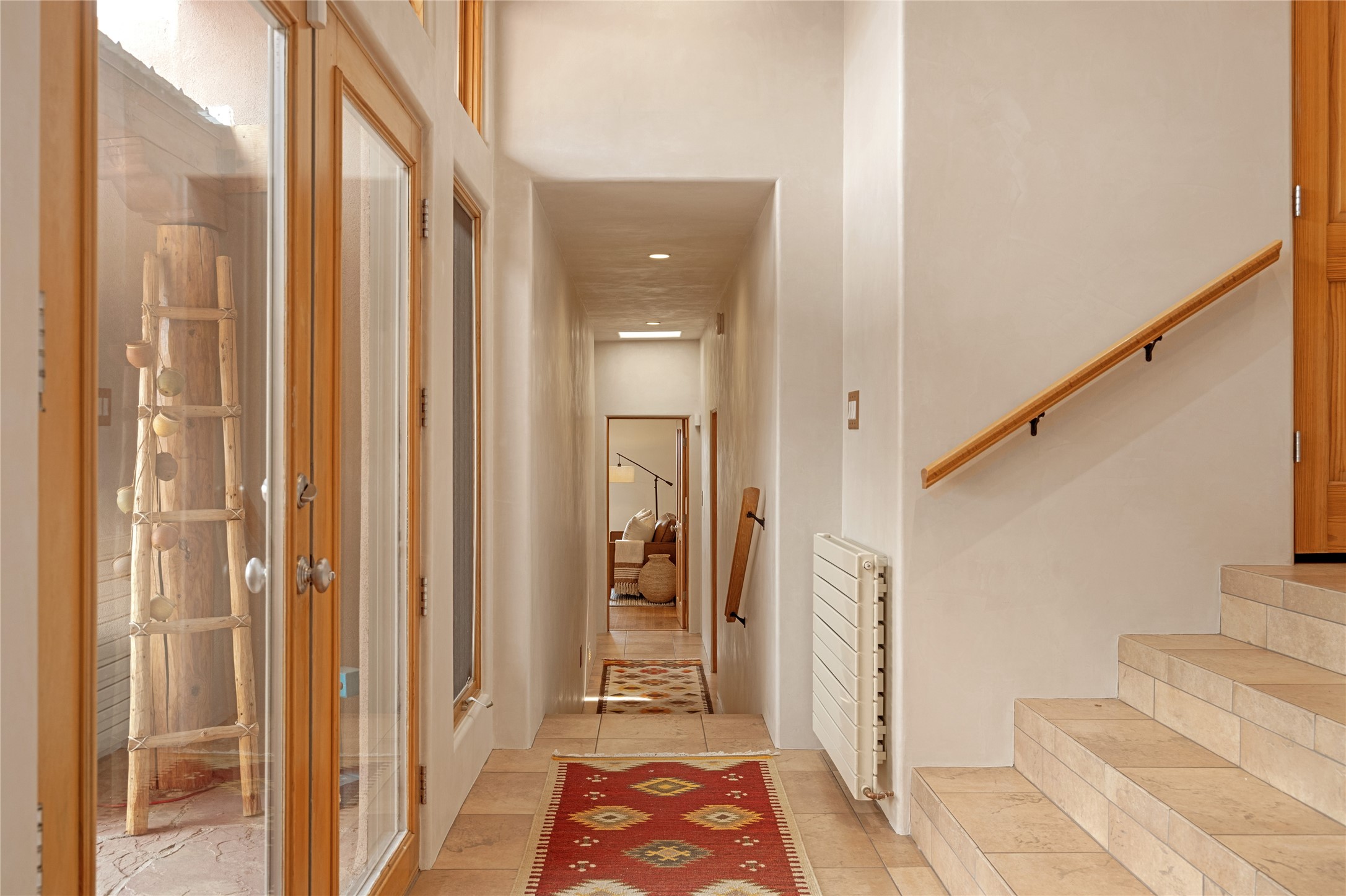 This exceptional custom Pueblo-style residence is positioned to capture sweeping mountain views and city lights across the horizon. Set within the desirable Las Lomas neighborhood, the property is minutes from the historic downtown Plaza and convenient to the Santa Fe River Trail. 1702 Watchpoint is a classic Santa Fe offering that authentically blends New Mexico architecture with modern comfort across 2,745 square feet of thoughtfully designed living space. Hand-carved entry doors open to immediate, expansive views off the patio, a first impression that sets the tone throughout. The living room anchors the main level with a classic kiva fireplace and hand-troweled plaster walls, also, directly off the living room is a flex-space suitable for a home office or studio. The multi-level layout flows naturally from formal dining with recessed lighting to an updated chef's kitchen featuring Silestone quartz countertops, stainless appliances, and a handsome tile backsplash. Many rooms connect to the outdoors, making indoor-outdoor living effortless whether for a quiet morning or a gathering on one of the home's covered portales.The primary suite is a private retreat, complete with a kiva fireplace, walk-in closet, outdoor portal, and spa-inspired bath with deep soaking tub, oversized pebble shower, and dual sinks. Two additional guest rooms share a generous full bath.An oversized two-car garage provides direct kitchen access and a dedicated laundry area. The home has been meticulously maintained and thoughtfully improved -- a full list of upgrades is available upon request. 1702 Watchpoint is a rare opportunity to own one of Las Lomas' finest homes, where authentic Santa Fe character, breathtaking views, and careful stewardship come together in one distinguished property.