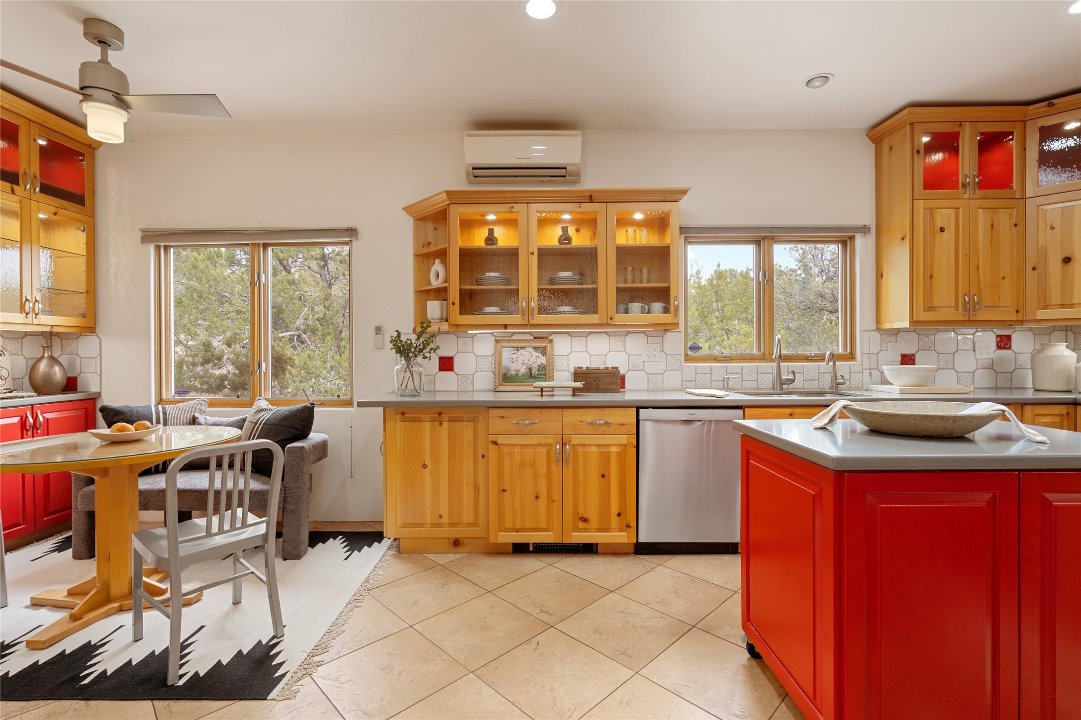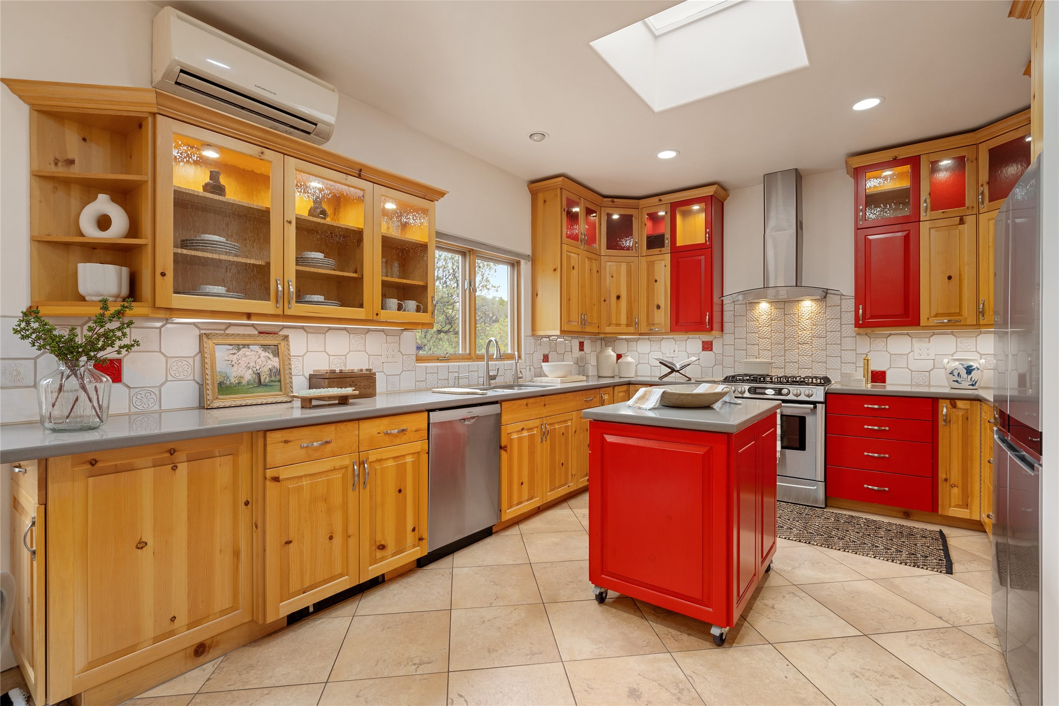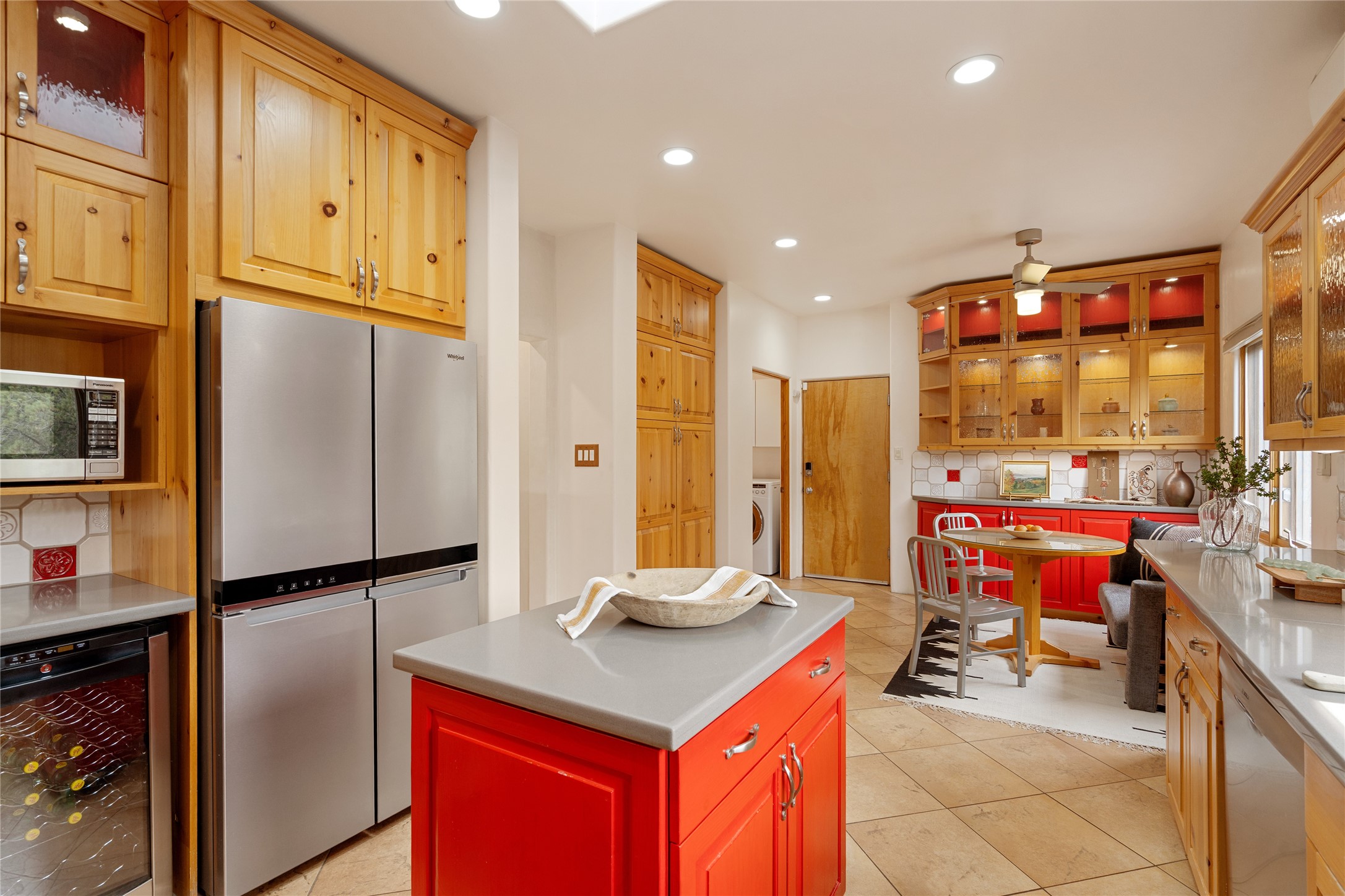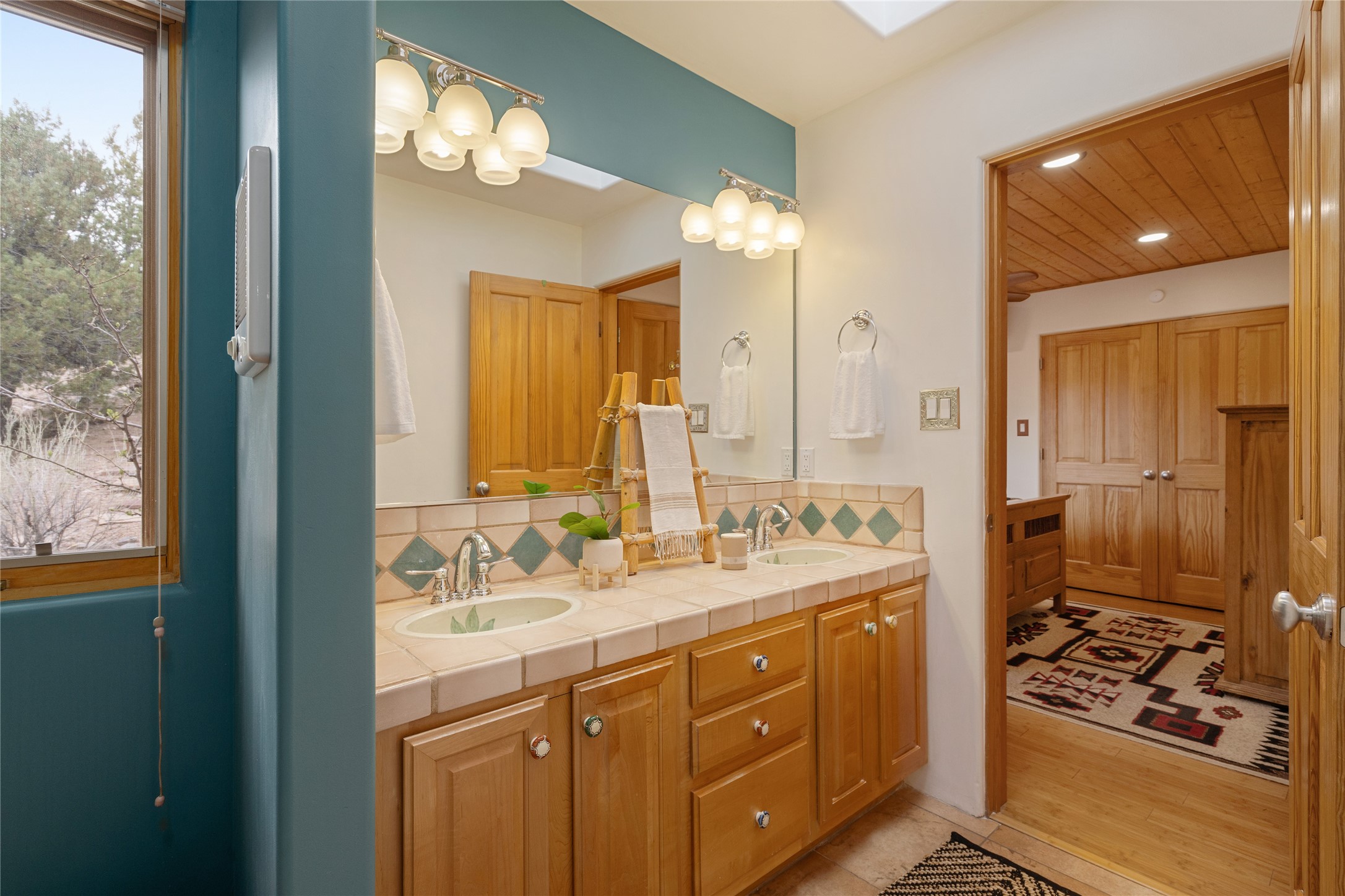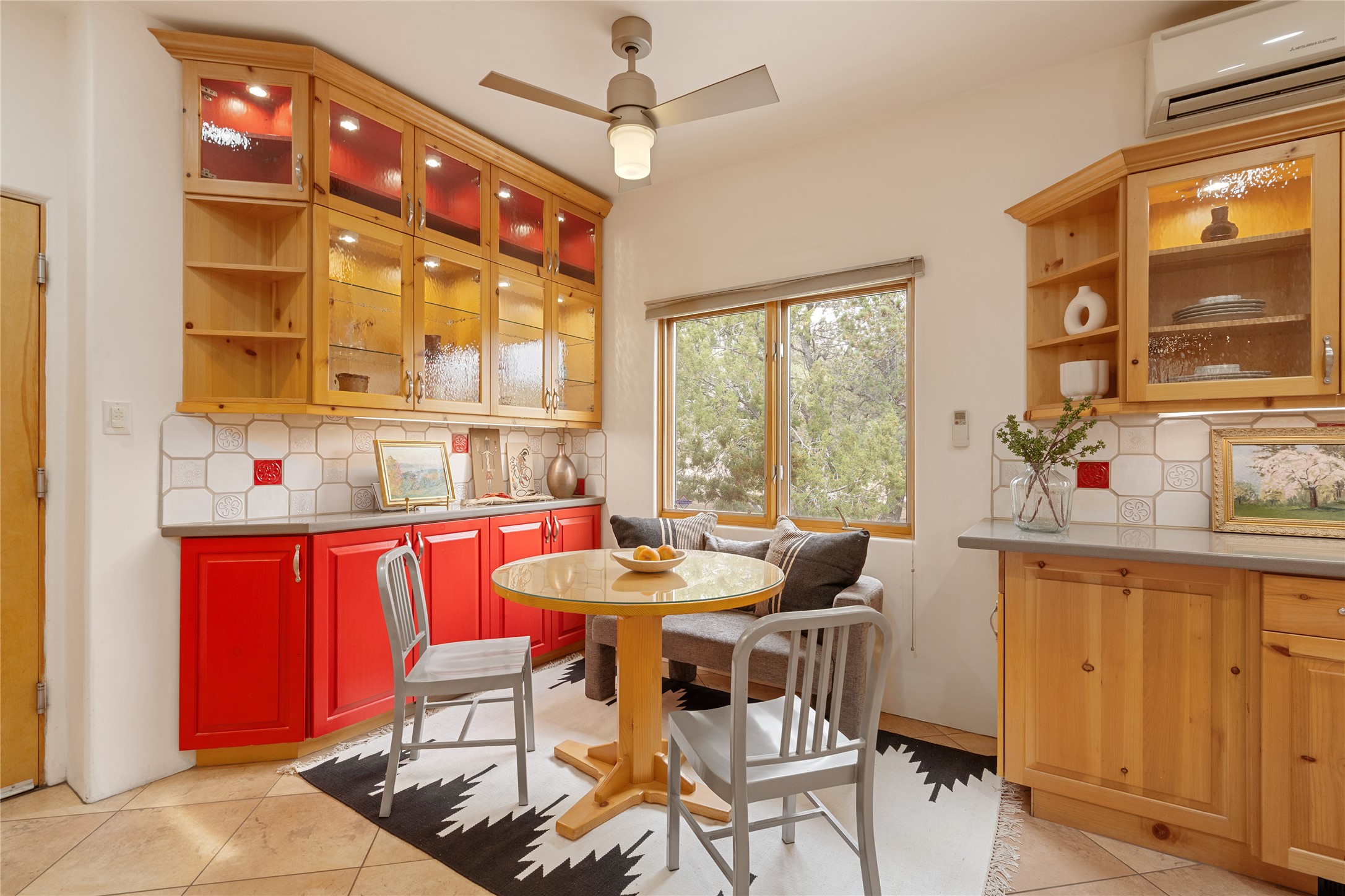 This exceptional custom Pueblo-style residence is positioned to capture sweeping mountain views and city lights across the horizon. Set within the desirable Las Lomas neighborhood, the property is minutes from the historic downtown Plaza and convenient to the Santa Fe River Trail. 1702 Watchpoint is a classic Santa Fe offering that authentically blends New Mexico architecture with modern comfort across 2,745 square feet of thoughtfully designed living space. Hand-carved entry doors open to immediate, expansive views off the patio, a first impression that sets the tone throughout. The living room anchors the main level with a classic kiva fireplace and hand-troweled plaster walls, also, directly off the living room is a flex-space suitable for a home office or studio. The multi-level layout flows naturally from formal dining with recessed lighting to an updated chef's kitchen featuring Silestone quartz countertops, stainless appliances, and a handsome tile backsplash. Many rooms connect to the outdoors, making indoor-outdoor living effortless whether for a quiet morning or a gathering on one of the home's covered portales.The primary suite is a private retreat, complete with a kiva fireplace, walk-in closet, outdoor portal, and spa-inspired bath with deep soaking tub, oversized pebble shower, and dual sinks. Two additional guest rooms share a generous full bath.An oversized two-car garage provides direct kitchen access and a dedicated laundry area. The home has been meticulously maintained and thoughtfully improved -- a full list of upgrades is available upon request. 1702 Watchpoint is a rare opportunity to own one of Las Lomas' finest homes, where authentic Santa Fe character, breathtaking views, and careful stewardship come together in one distinguished property.