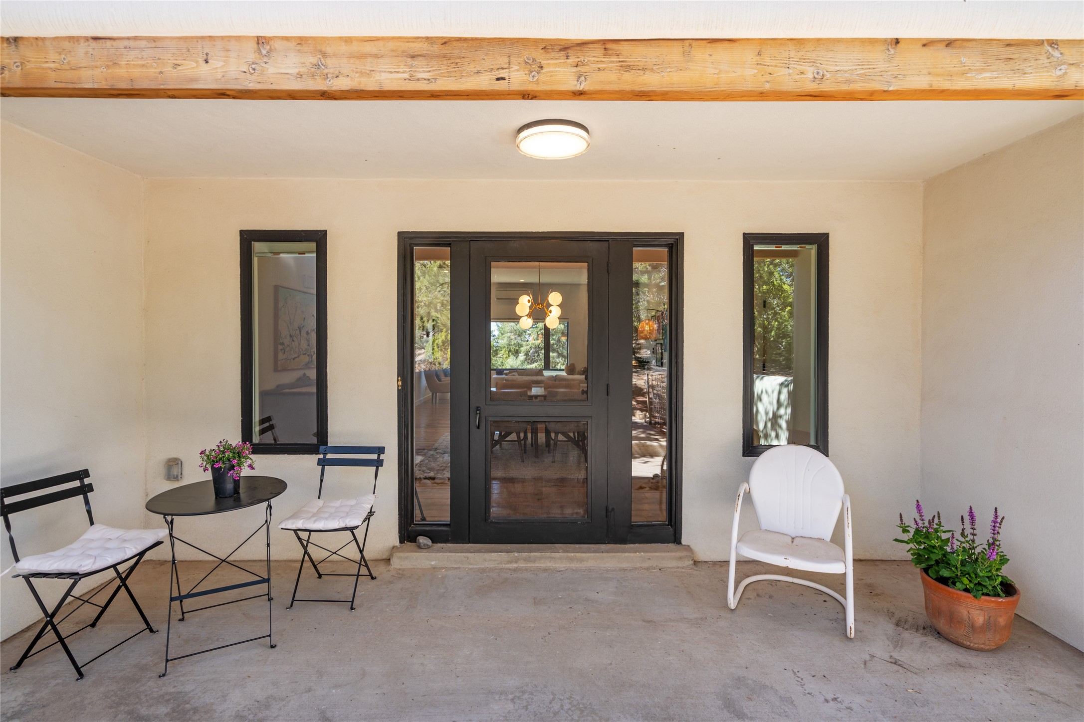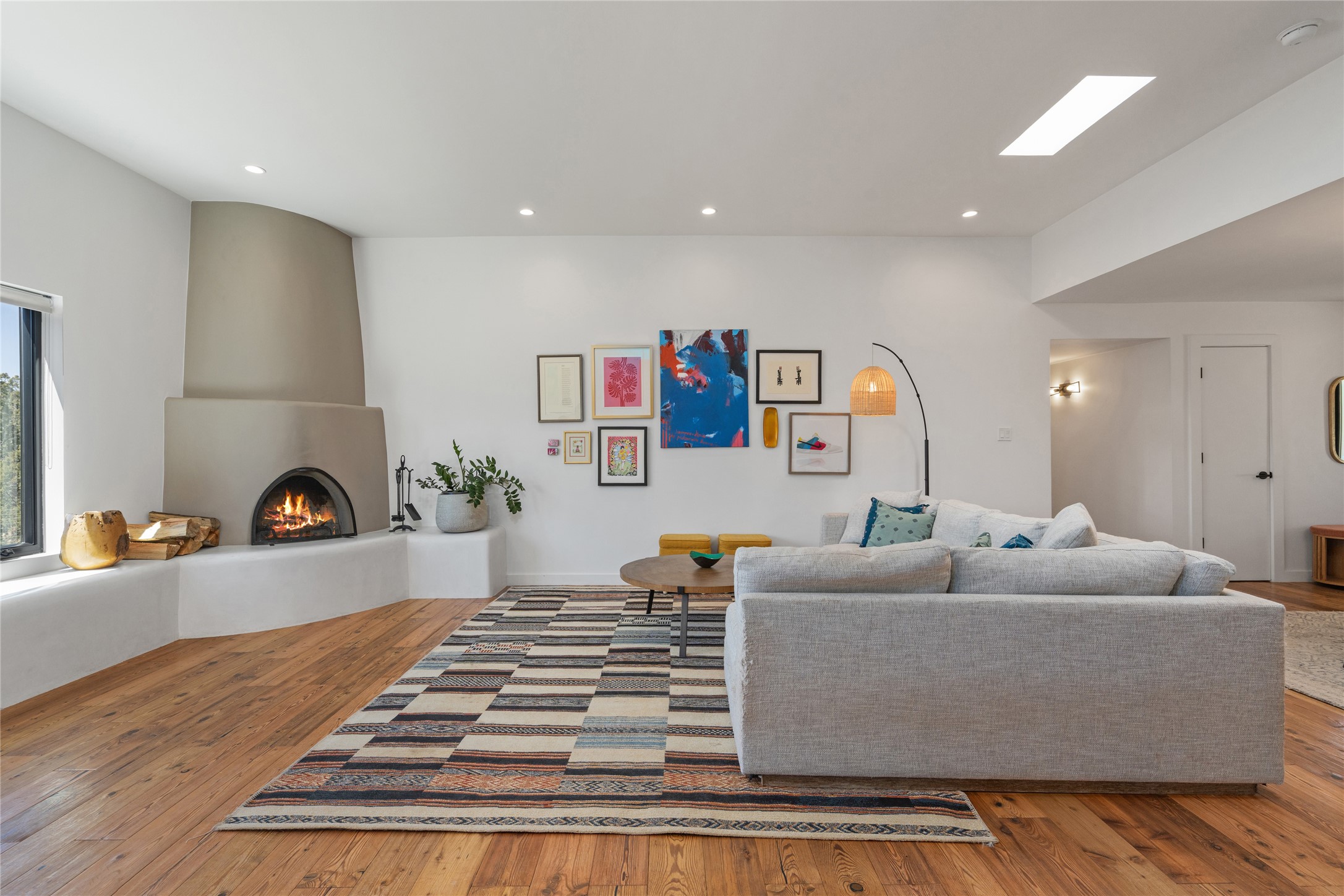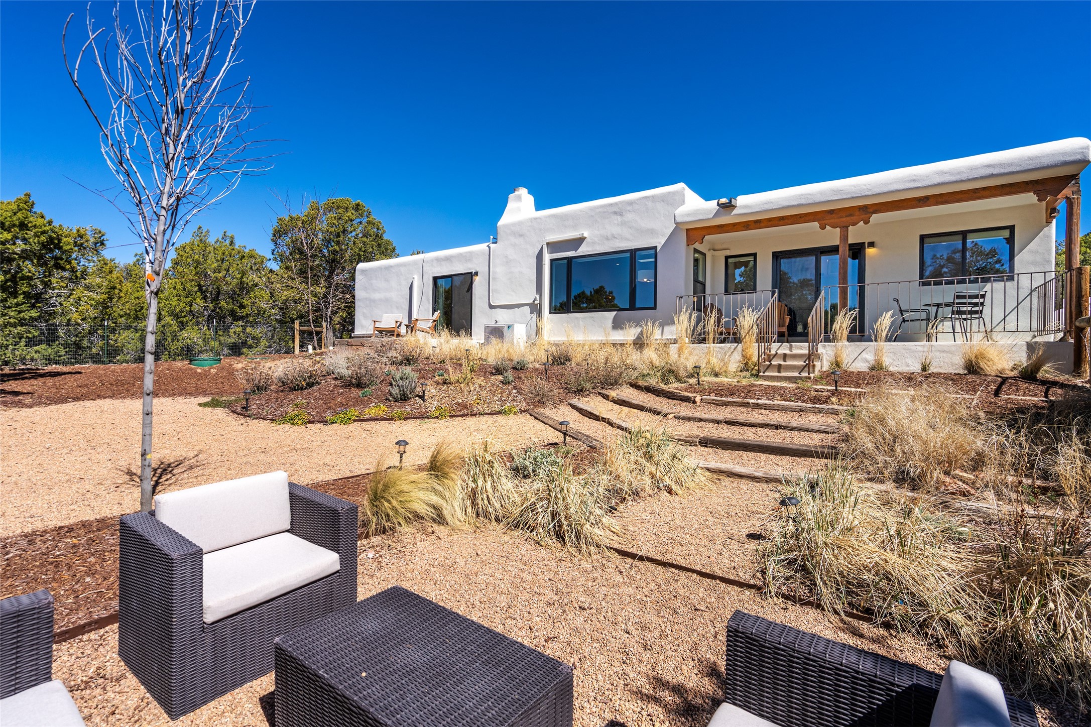 Set among pion and juniper trees in the coveted Hondo Hills neighborhood, this fully remodeled 3-bedroom, 2-bathroom, plus flex space home delivers modern comfort combined with Southwestern character.The interior is light and bright, with smooth plaster walls, rich wood flooring in the main living areas, tile in the bathrooms, and a classic kiva fireplace that anchors the living space beautifully. The updated kitchen opens to a patio perfect for outdoor dining, while a second patio off the primary bedroom offers a quiet personal retreat. A ductless mini-split system ensures efficient, year-round comfort.Every major system was addressed during the remodel in 2021- new windows, roof, and stucco this means the big-ticket items are already taken care of. The 2-car garage adds storage and everyday convenience.Out back, a fully fenced and landscaped yard provides privacy and a sense of place, near Arroyo Hondo hiking trails. A move-in ready home where thoughtful updates meet the beauty of the high desert.