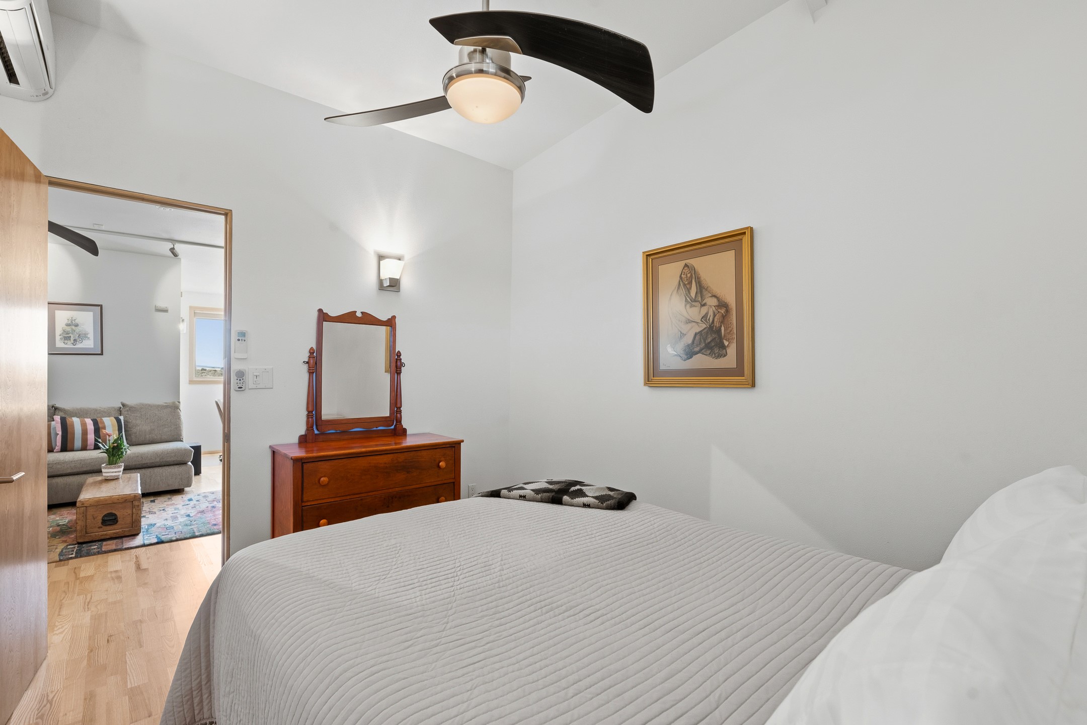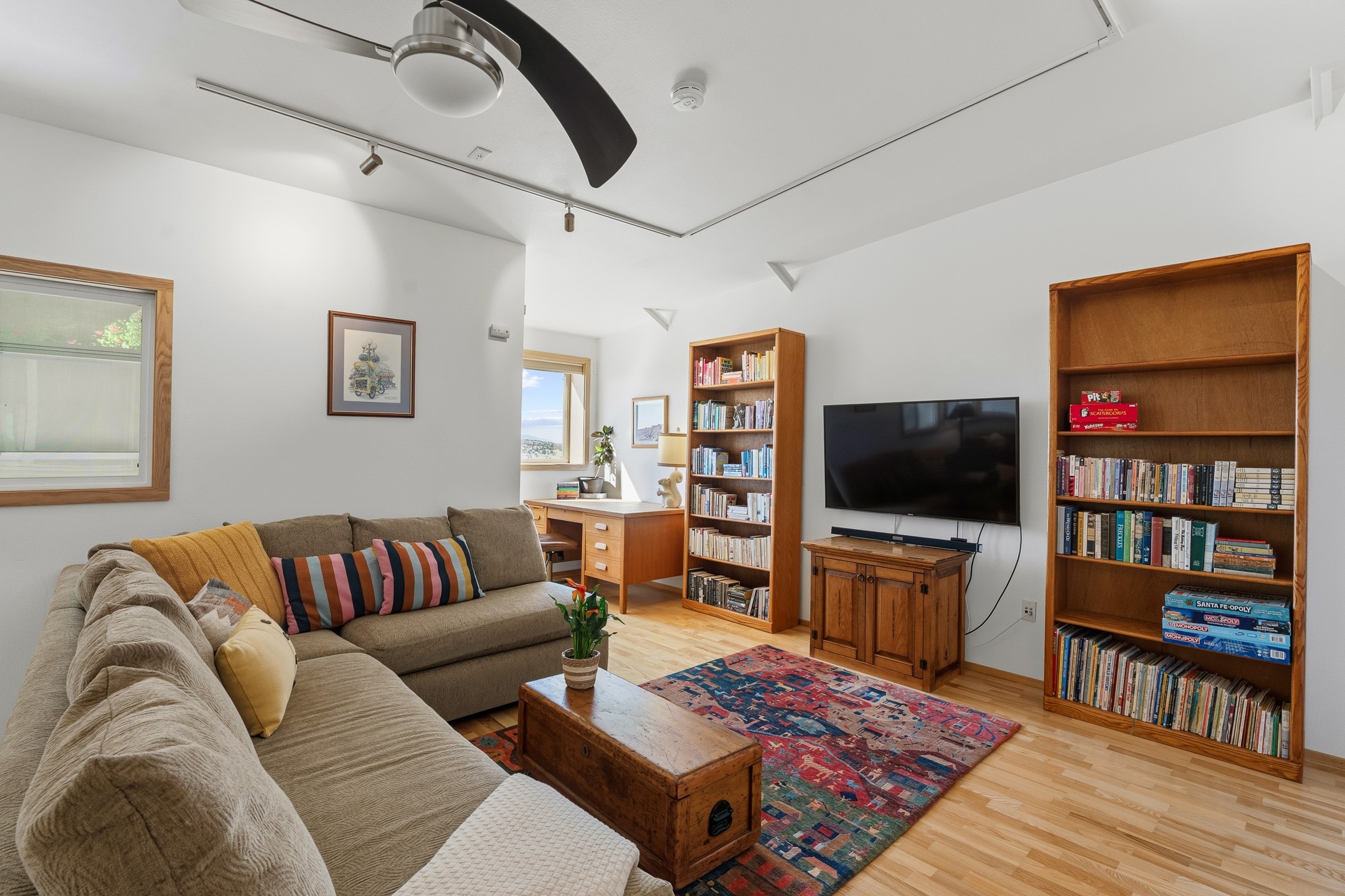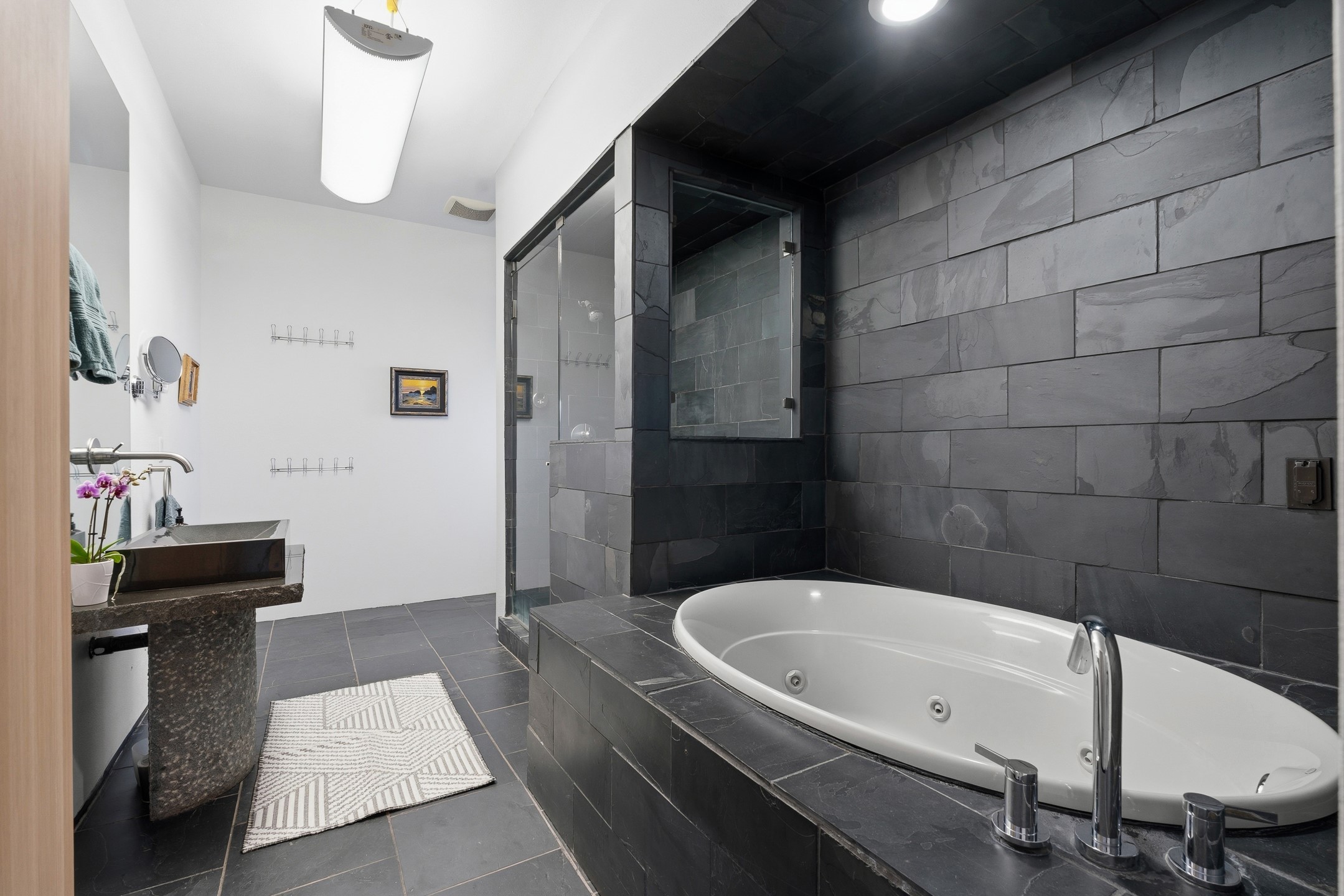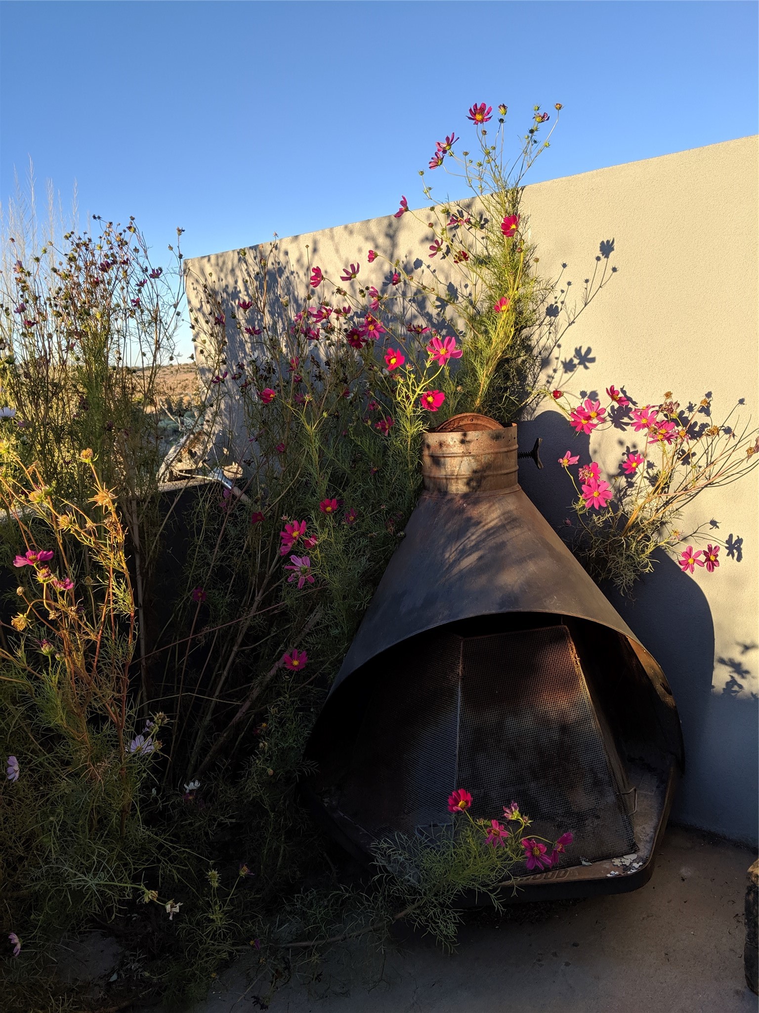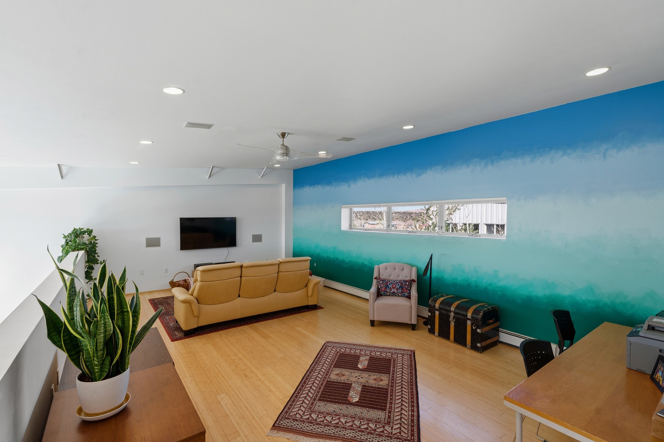 Sculptor-designed Modern Compound with Guesthouse, Shop with Unobstructed Views bordering BLM Land. Built in 2007 with exceptional craftsmanship, this custom steel-and-concrete home offers a rare blend of modern design, energy efficiency, & privacy on the edge of undevelopable BLM land. Commercial- grade windows & doors, 12" insulated walls (R-50), radiant in-floor heat, & mini-splits provide year-round comfort. Whole house catalytic carbon filtration for PFAS & contaminants. The main house features soaring 18-19.5' ceilings, concrete floors, passive solar living/dining spaces with dramatic 16' windows, & unobstructed views of the Ortiz Mountains, Cerrillos Hills, & Sandias. A chef's kitchen anchors thehome with stainless counters & island, cherry cabinetry, Viking range, Bosch dishwasher, double ovens, & a walk-in pantry. Quiet spaces include a library-style study/bedroom with built-ins on the main level, upstairs loft bedroom and TV/study areas, spa-like bath with slate and glass shower, and abundant storage. Sound-proofed construction separates the main house from the guesthouse for true privacy. The fully equipped guesthouse offers flexible living with radiant heat & mini splits, a full kitchen, steam shower, jetted tub, one bedroom plus a study, & dramatic operable glass garage doors which open to private patios--ideal for guests, rental income, or multigenerational living. A 3,100 sq ft insulated red iron steel shop (2014) with high-psi concrete floors for heavy equipment, pellet stove, plumbing (1/2 bath), including 1,100 sq ft loft, and 3-phase power is perfect for artists, or serious tradespeople. Outside, enjoy a fully fenced, irrigated landscape.A gardener's dream! with over 80 native & fruit trees, an edible forest garden with serviceberries, buffaloberry, elderberry, gooseberry, red and yellow currants, raspberries, native plum & cherry. The setting is expansive, & visually stunning, with seasonal cactus blooms across the protected BLM land with easy access to trails and the Santa Fe River.