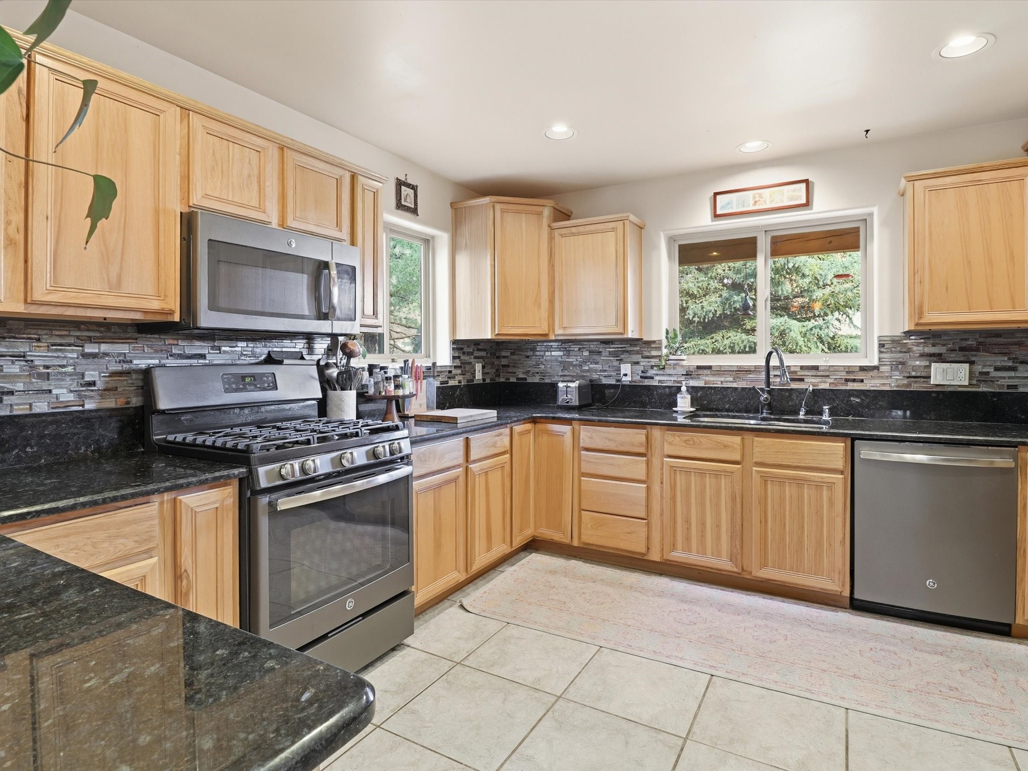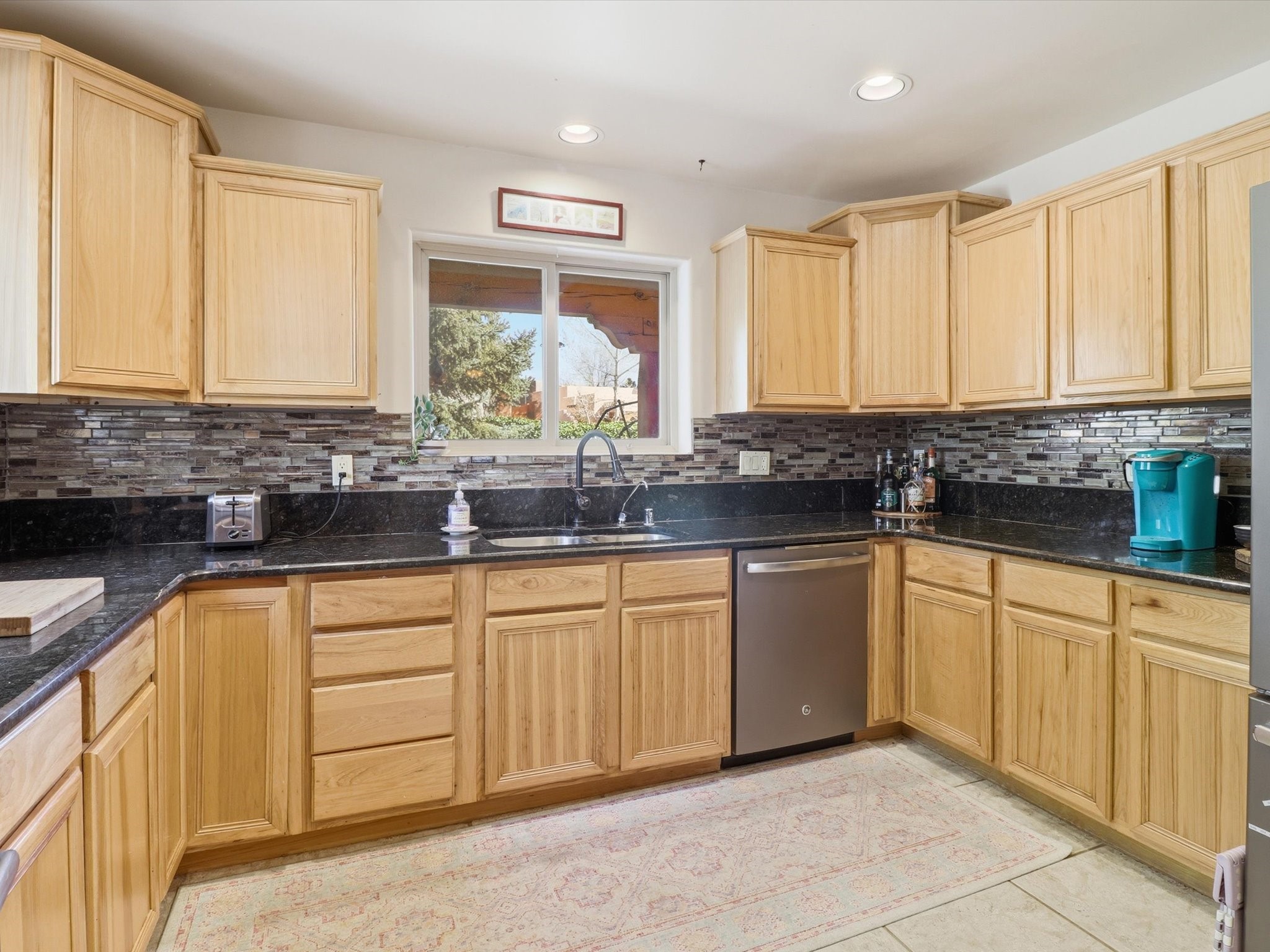 Tranquil Living Within the City! Discover a peaceful retreat while still being conveniently located within the city. Set against a backdrop of open space and mature pine trees, this inviting property offers a sense of privacy and serenity rarely found in town. A spacious deck extends the living area outdoors--perfect for morning coffee, evening gatherings, or simply enjoying the quiet surroundings and natural views. Inside, the home features 3 bedrooms and 2 bathrooms with warm, welcoming Southwestern character. The main living room showcases beautiful tongue-and-groove ceilings and a classic kiva fireplace. Cherry wood flooring adds warmth and elegance to the bedrooms, while radiant floor heating ensures comfort throughout the cooler months and evaporative cooling keeps the home comfortable in the summer. The kitchen is designed for both functionality and style with granite countertops and ample workspace, making it ideal for everyday living or entertaining. Outside, the property continues to impress with plenty of space for gardening, including raised garden beds ready for seasonal planting. Nature lovers will appreciate the nearby trails and surrounding open space, offering easy access to outdoor recreation.