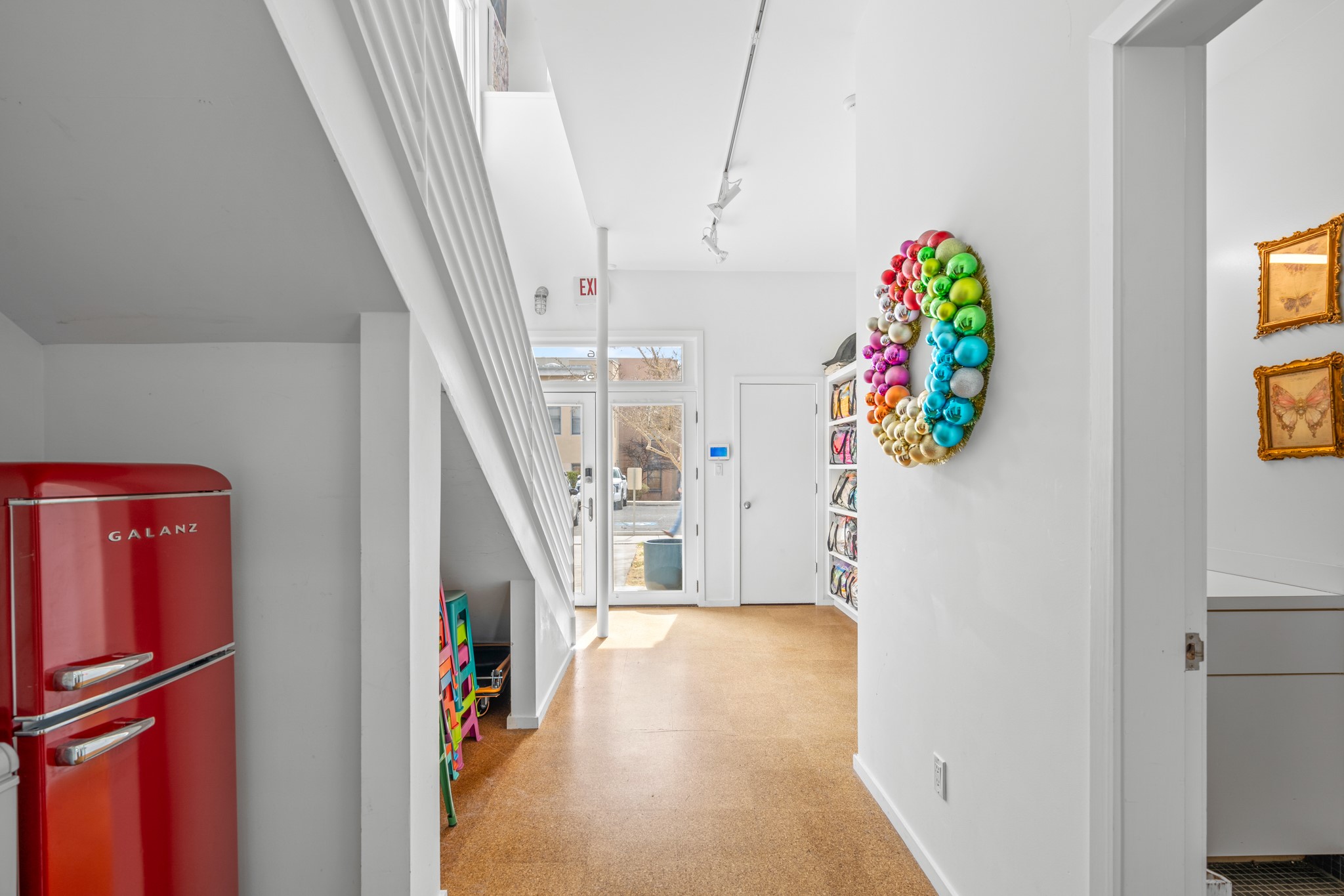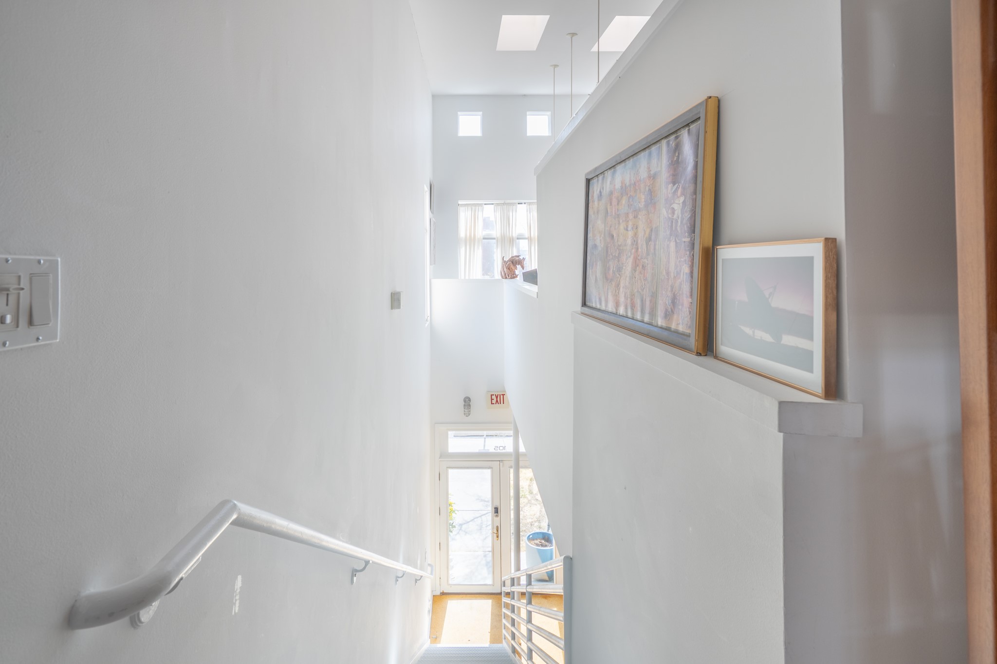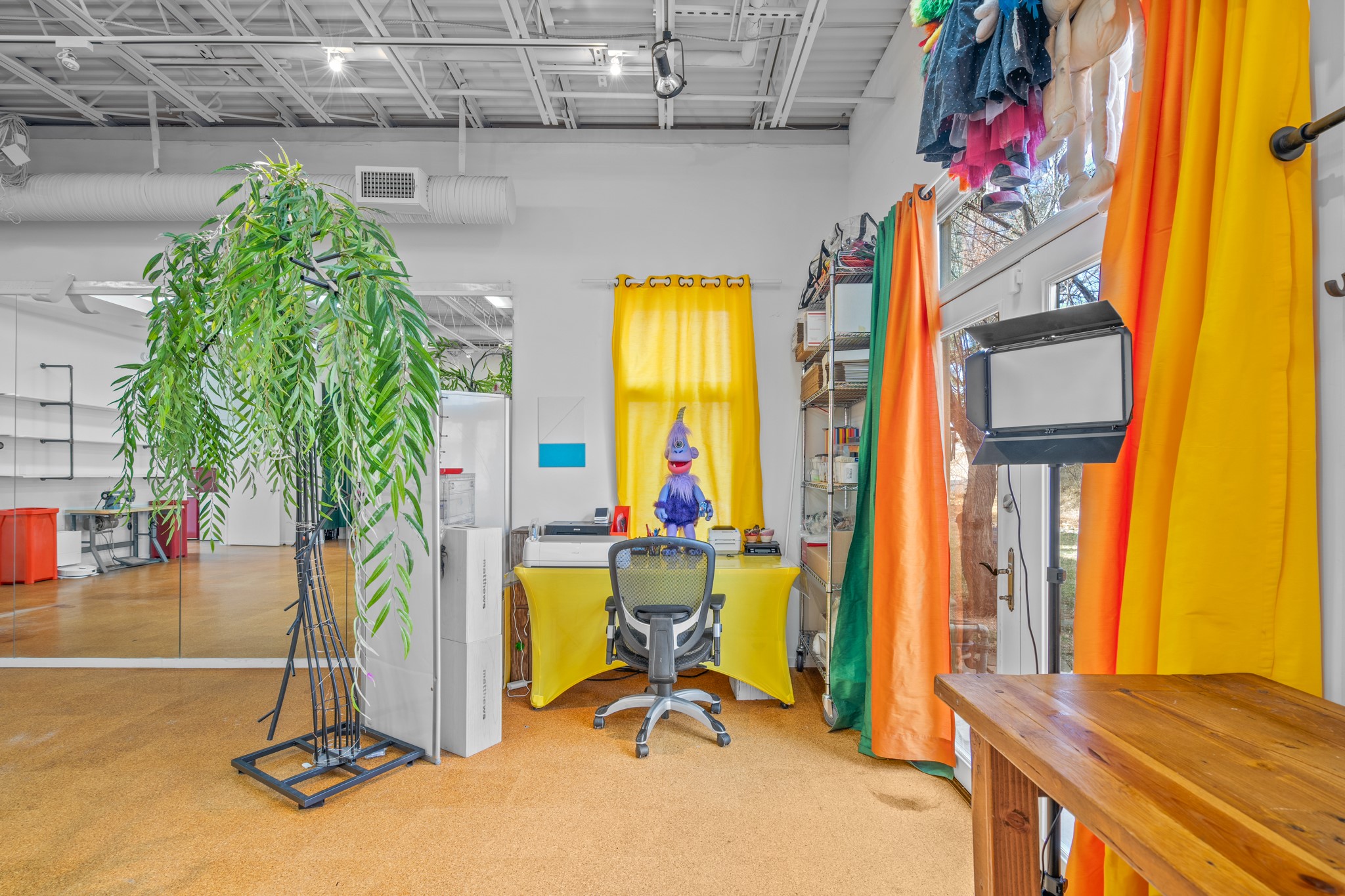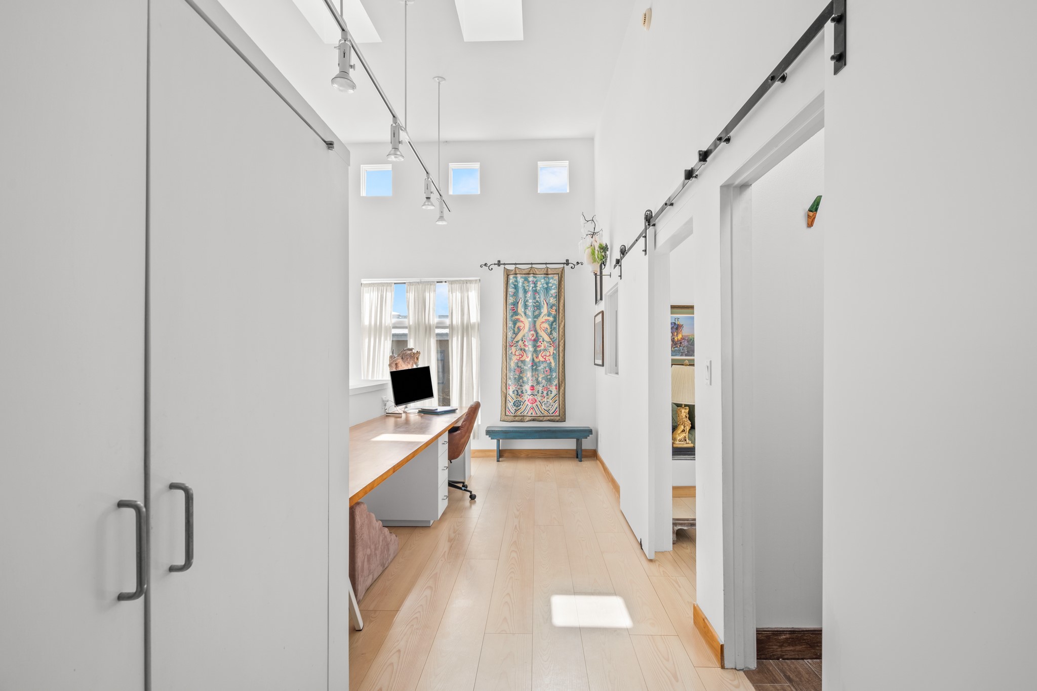 Could this be the most fabulous live / work studio in all of Santa Fe!! 2 commercially zoned live-work loft units in one.Upstairs: Completely remodeled 2 years ago. Open concept, high ceilings, very bright with skylights throughout. A 12.5x12.5 Primary Bedroom with an attached laundry space with stacked high end washer / dryer combo. The Kitchen is a high end $50K Douglas Maahs design featuring custom fixtures, custom bar / glass and lighting throughout. Many unique features were added at the time of installation. The primary bathroom is custom designed with zen copper and brass piping with wood effect tile, oversized tub and a built in bidet toilet creating a spa like feel. In the hallway there is a custom wooden work station and two stand alone closets. The open living room and dining area face a private wooded area creating a tranquil and peaceful environment.Downstairs: There is a huge 27x24 industrial space with mirrors lining one wall, cork flooring and 2 sets of french doors leading out to a tiled patio space. This room has a sink area and additional closets for storage. There are endless possibilities for this space: yoga studio, dance studio, art studio, gathering space etc. A full bath and a second 12x12 flex room for either an office, storage or a second downstairs bedroom.There are many built in custom shelve systems and plenty of storage.2550 square feet in total with the top floor and bottom floor in equal size but in different configurations. These 2 floors can be separated into 2 unique spaces or kept as one large unit. There are many businesses and private living spaces in The Lofts Complex, commercially zoned, ample parking with handicapped parking right in front ... did I mention the large dog park just a few feet away? ... Will you be the next owners to move in and make your work / live dreams come true?