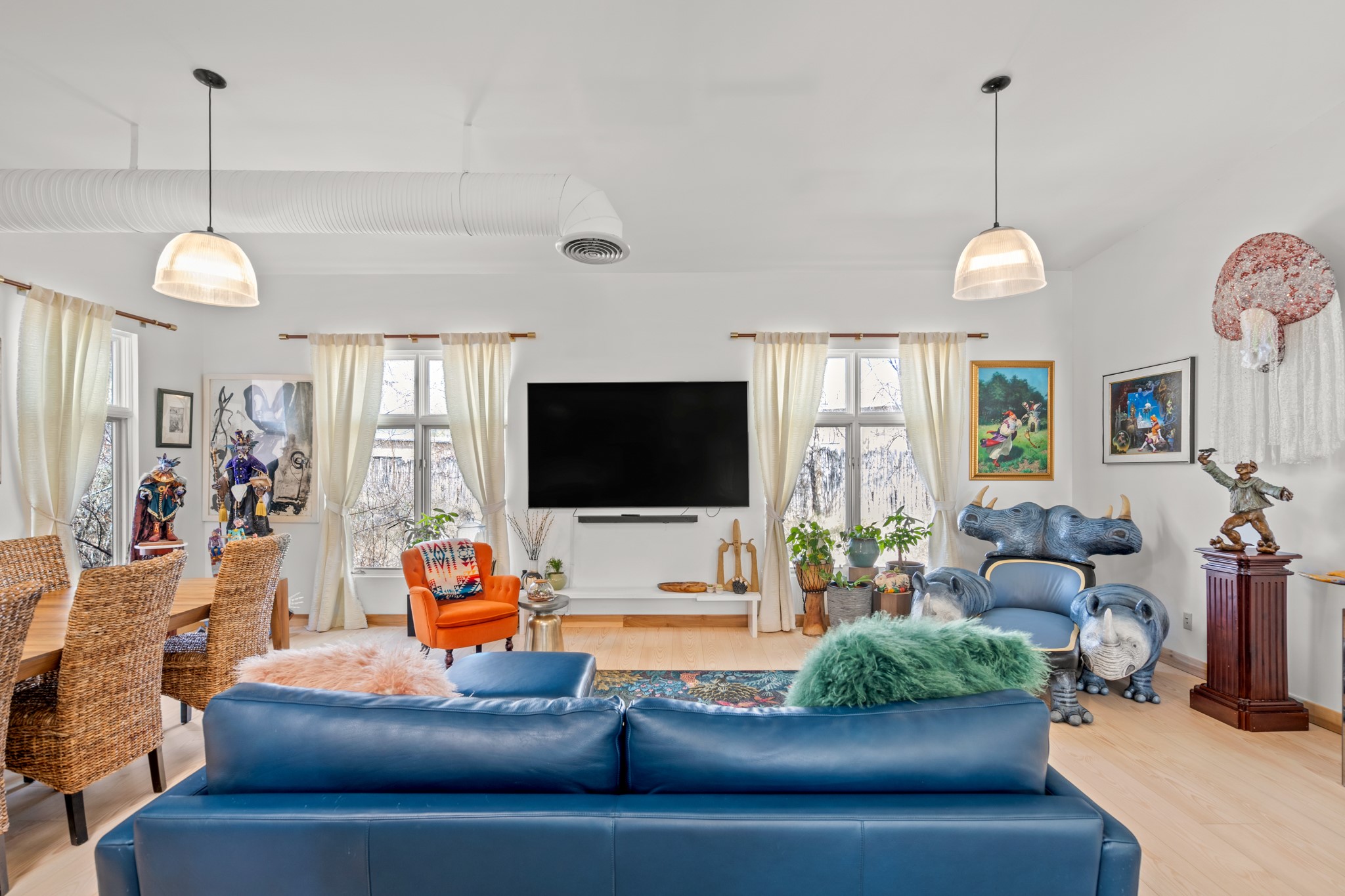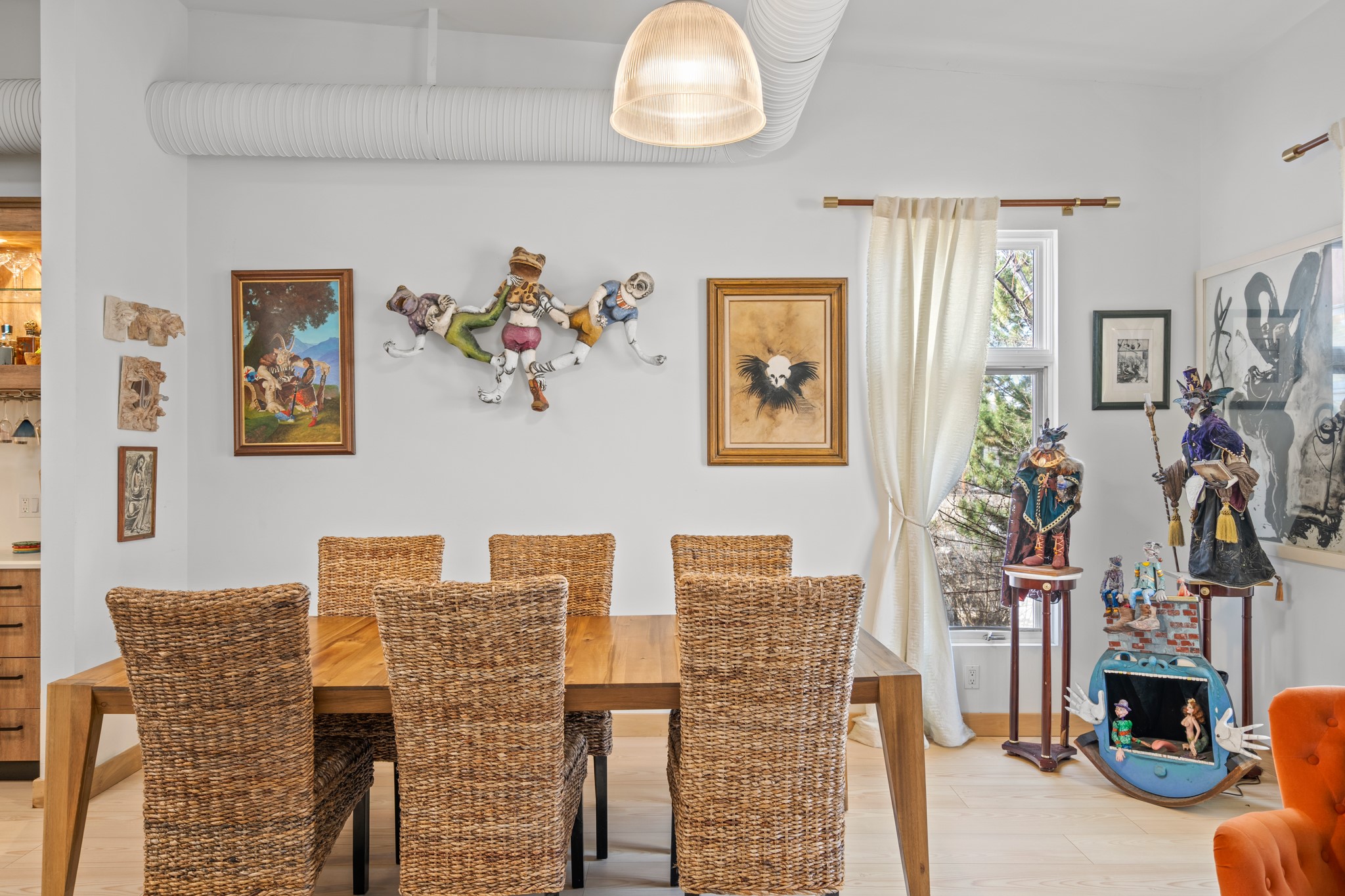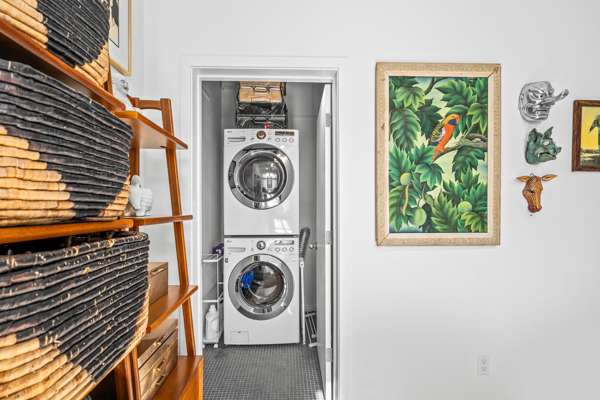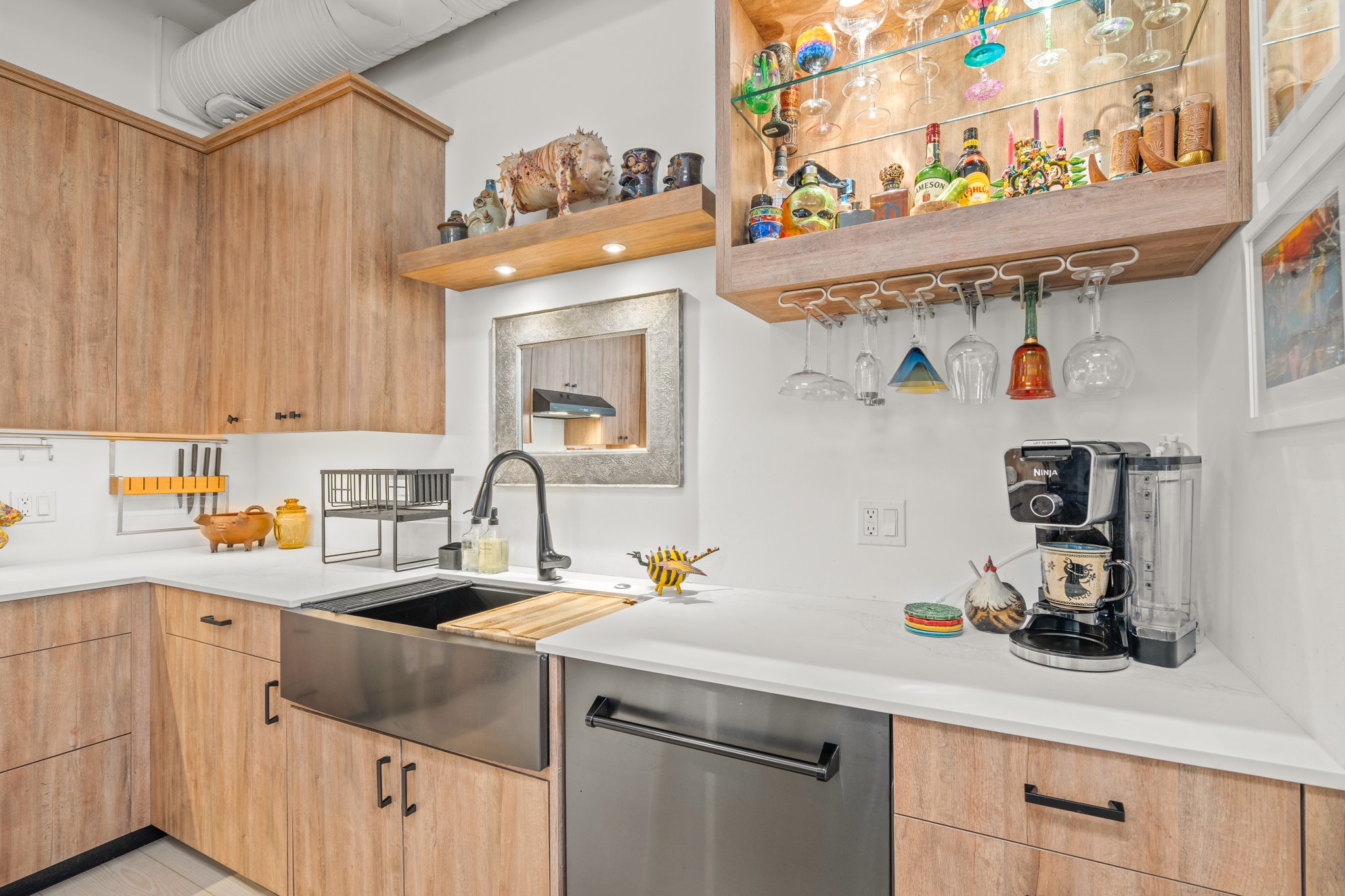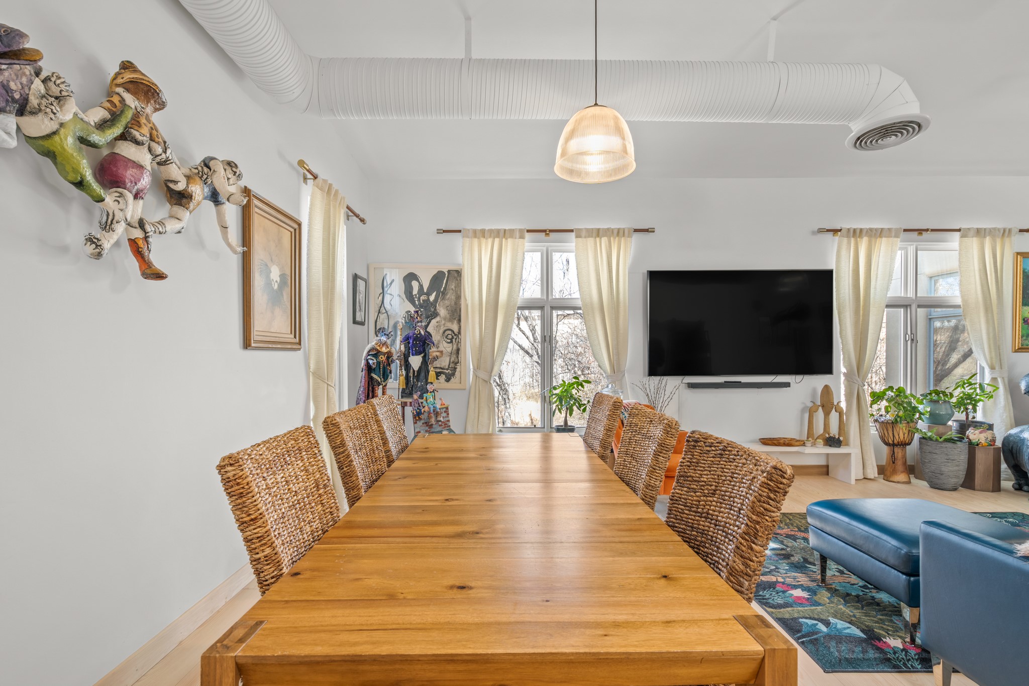 Could this be the most fabulous live / work studio in all of Santa Fe!! 2 commercially zoned live-work loft units in one.Upstairs: Completely remodeled 2 years ago. Open concept, high ceilings, very bright with skylights throughout. A 12.5x12.5 Primary Bedroom with an attached laundry space with stacked high end washer / dryer combo. The Kitchen is a high end $50K Douglas Maahs design featuring custom fixtures, custom bar / glass and lighting throughout. Many unique features were added at the time of installation. The primary bathroom is custom designed with zen copper and brass piping with wood effect tile, oversized tub and a built in bidet toilet creating a spa like feel. In the hallway there is a custom wooden work station and two stand alone closets. The open living room and dining area face a private wooded area creating a tranquil and peaceful environment.Downstairs: There is a huge 27x24 industrial space with mirrors lining one wall, cork flooring and 2 sets of french doors leading out to a tiled patio space. This room has a sink area and additional closets for storage. There are endless possibilities for this space: yoga studio, dance studio, art studio, gathering space etc. A full bath and a second 12x12 flex room for either an office, storage or a second downstairs bedroom.There are many built in custom shelve systems and plenty of storage.2550 square feet in total with the top floor and bottom floor in equal size but in different configurations. These 2 floors can be separated into 2 unique spaces or kept as one large unit. There are many businesses and private living spaces in The Lofts Complex, commercially zoned, ample parking with handicapped parking right in front ... did I mention the large dog park just a few feet away? ... Will you be the next owners to move in and make your work / live dreams come true?