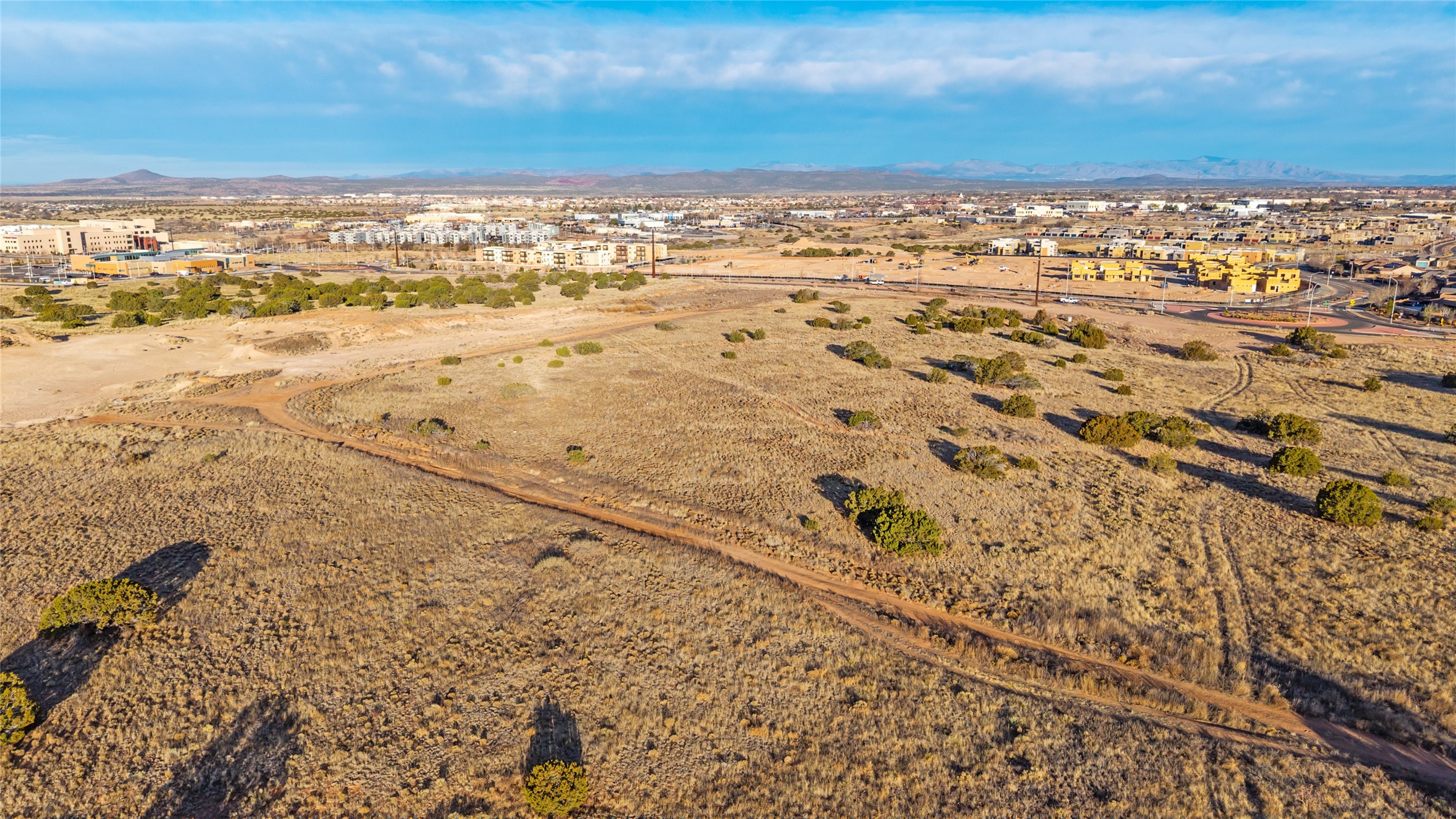 Commercial development parcel available for sale in Las Soleras, a master-planned mixed-use community located in one of Santa Fe's fastest growing commercial corridors. The sites are positioned near Beckner Road, Cerrillos Road, and State Road 599, with convenient access to Interstate 25, providing excellent connectivity throughout Santa Fe and northern New Mexico. The properties are located near major regional anchors including Christus St. Vincent Regional Medical Center, the VA Medical Center, Super Walmart, and Santa Fe Place Mall, placing them within Santa Fe's primary retail, healthcare, and service district. Parcel is zoned C-2 Commercial, allowing a wide range of uses including retail, office, medical, financial, multifamily residential, educational, recreational, and religious facilities, among others. The sites feature gently rolling terrain suitable for a variety of development concepts. City water, sewer, and electricity are available along Beckner Road, making these parcels ready for near-term development. Parcels 20, 25, and 26 are offered together in bulk price, and each parcel is also available for purchase individually. Las Soleras offers developers the opportunity to build in a growing area of Santa Fe supported by strong healthcare, retail, and residential demand with excellent regional access.