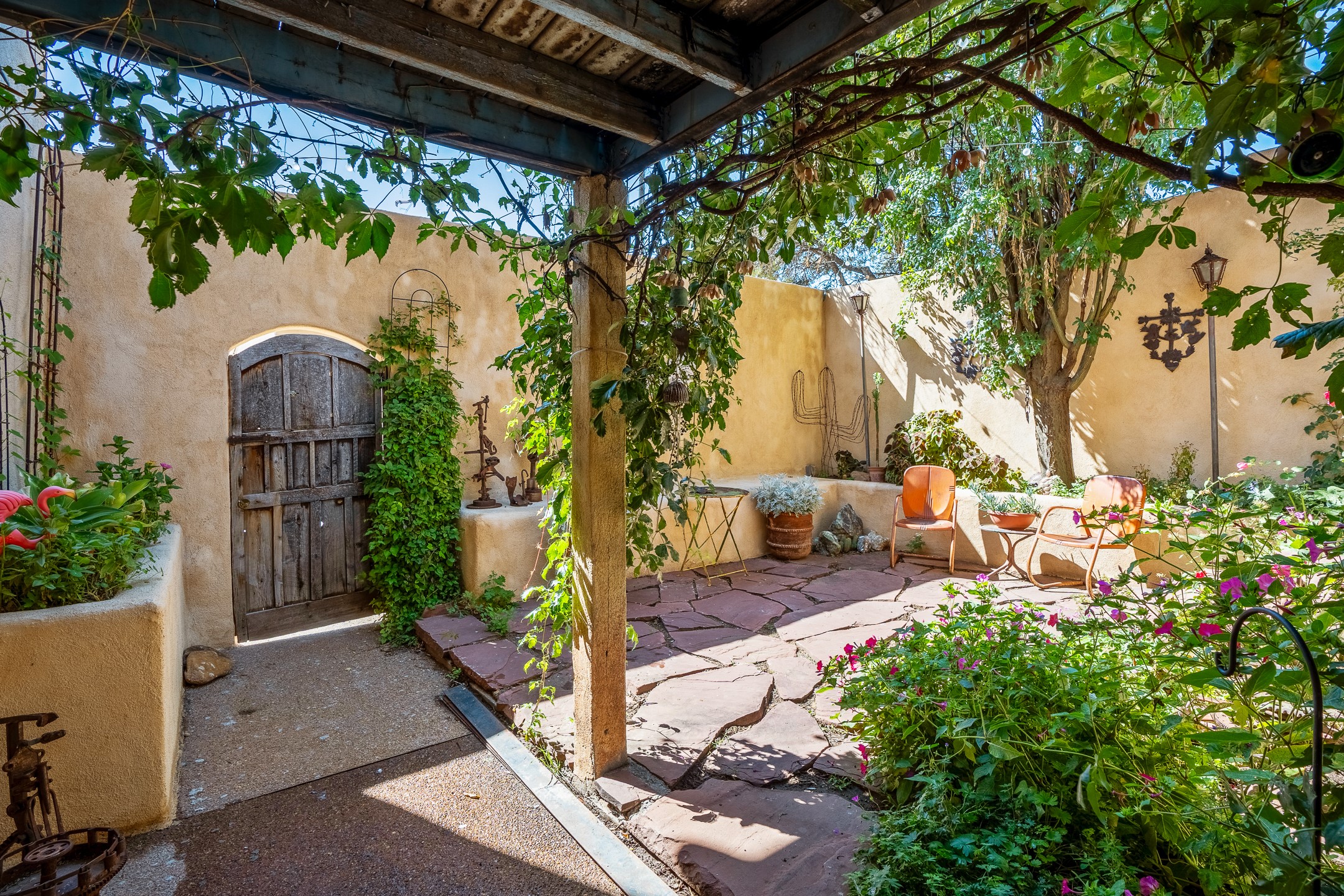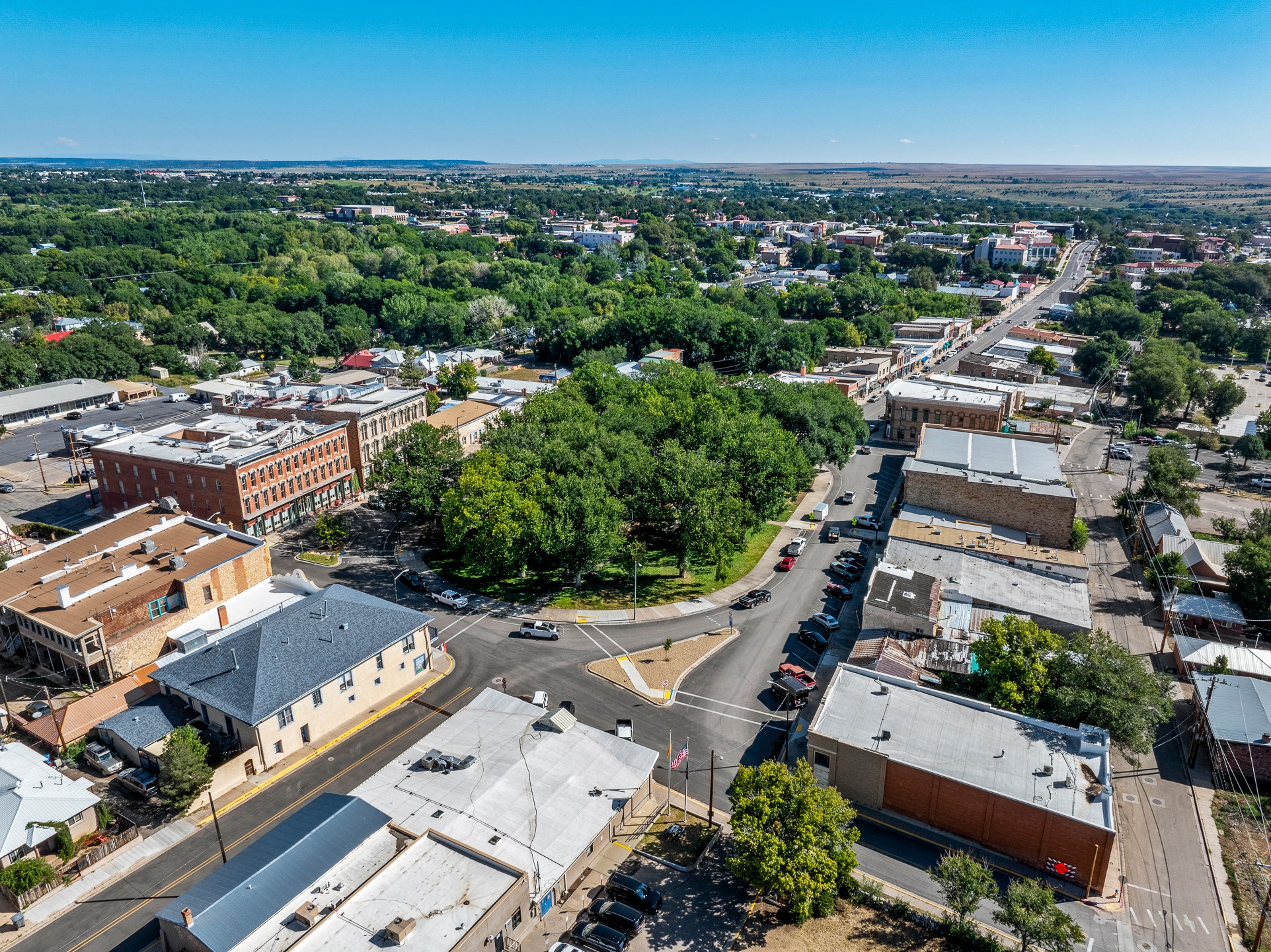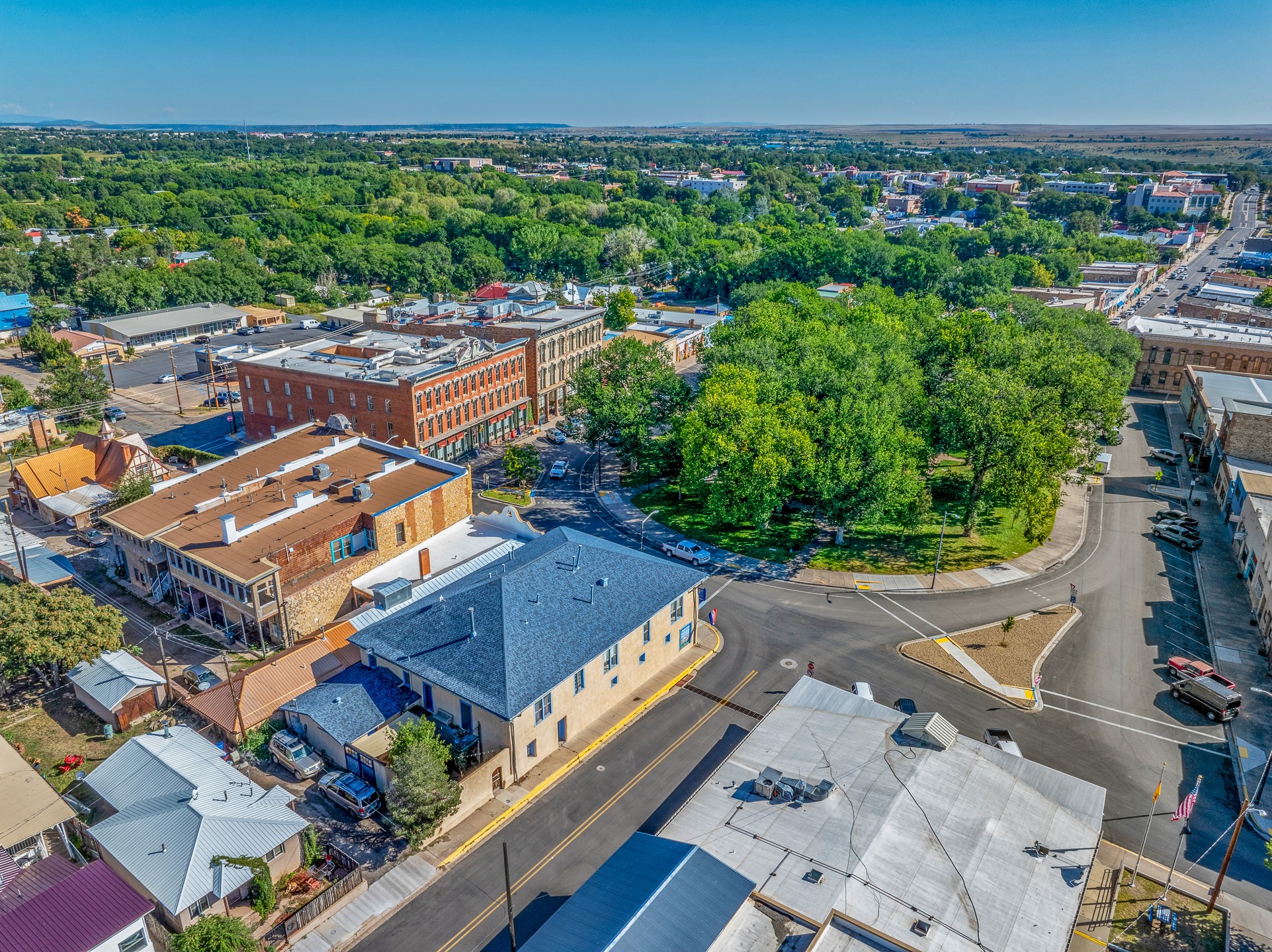 BEST RESIDENTIAL/COMMERCIAL LOCATION IN LAS VEGAS, NM! Zoned R2 + C2 on the Historic Plaza. Exceptional commercial and residential opportunity with 57 feet of glass retail display frontage, 3,000 sq. ft of retail space, and 5,000+ sq.ft. of finished residential with tree covered views of the Historic Plaza Park! Winning the 1996 Historic Preservation Award this prestigious and prominent adobe architectural achievement was built to its preeminent glory in 1870. Built as the 1st catholic church in Las Vegas, New Mexico in 1836 and crowned "The Most Civilized Object in the West." In 1870 the Dold brothers, German merchants, built the two story adobe around the nave of the church establishing A.Dold & Company/Charles Emil Wesche General Merchandise Store. This 15,000 square foot building is comprised of three foot thick adobe walls and two stories(3 levels) standing proud as one of the few two story adobe's in the state of New Mexico. Completely restored to its original distinction all while meeting current building codes to include installing custom built french doors and windows; hand crafted balconies, hand made balustrades, new PVC, new wiring, new roof and stucco, new fixtures, new demising walls to shape what is currently a 2,500 +/-square foot residence with a gorgeous European style kitchen, living, den with two bedrooms and two baths in the main residence. 3,000 additional square feet of beautifully finished interior living/ office spaces on the 2nd floor for office rental; multifamily use; or develop into wine bar/restaurant/gallery/retail. 3,000 square feet of dedicated store front retail on ground level and 3,600 square feet of developable space inside the pillars on the 3rd floor envisioned to be a spectacular penthouse suite overlooking the park. All original hardwood oak flooring in the retail area, all original fur and maple flooring in the residential areas. Truly one of the most outstanding representations of our New Mexico heritage to ever be offered to the market.
