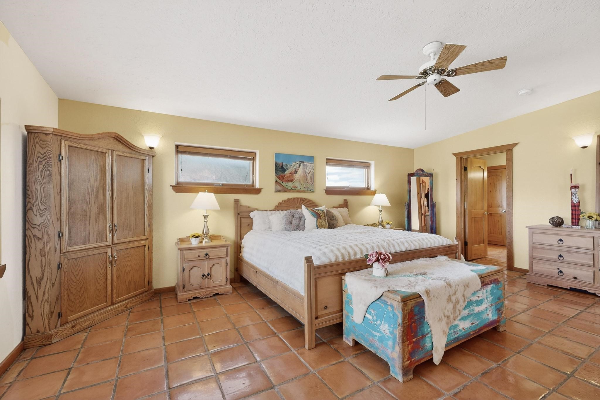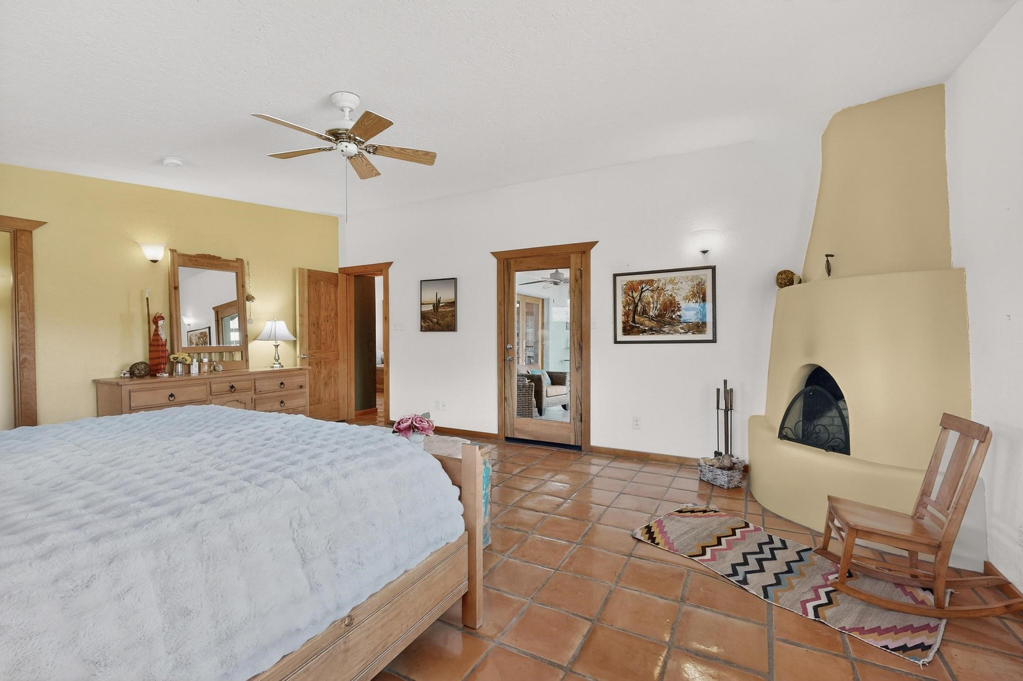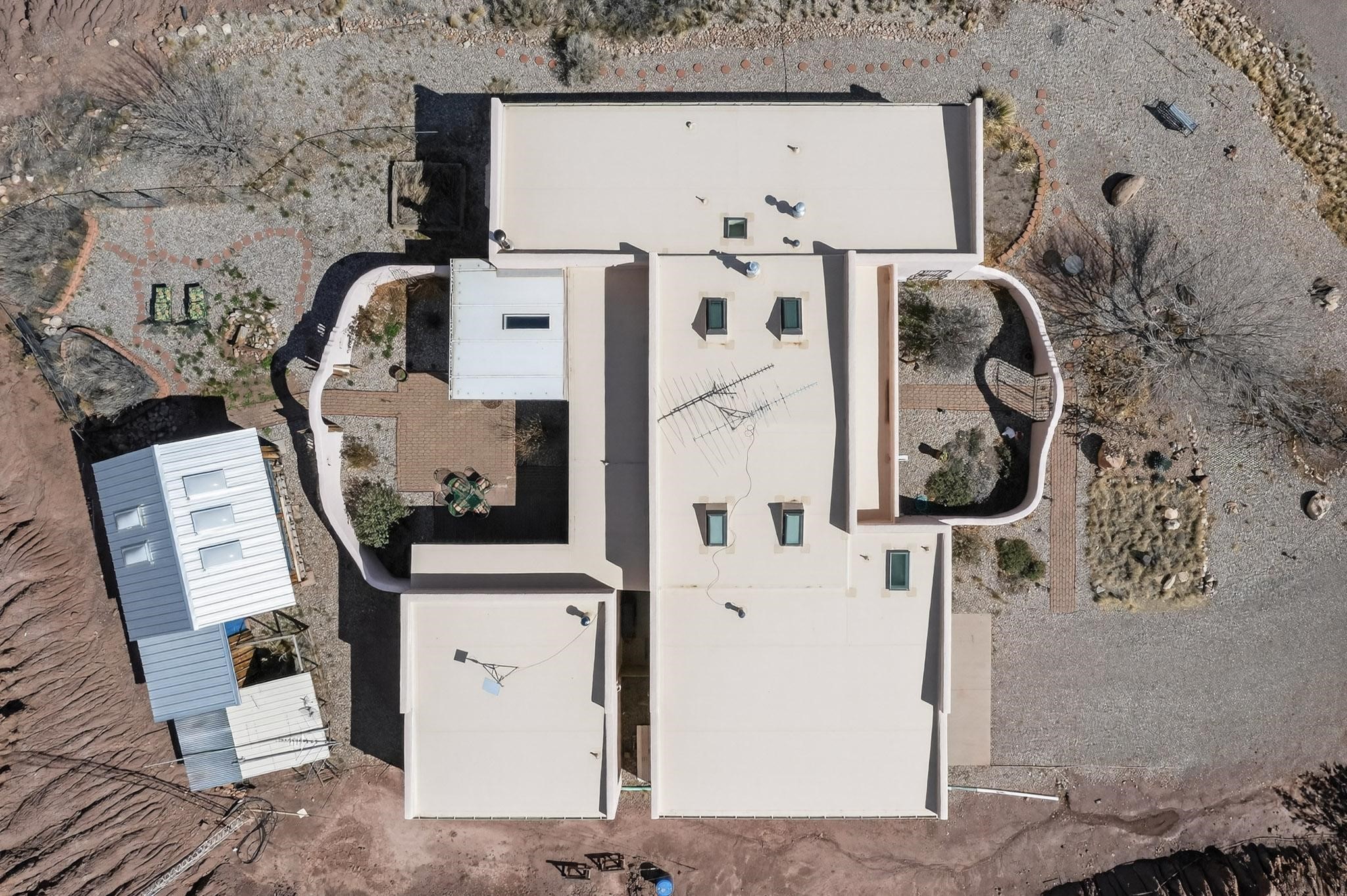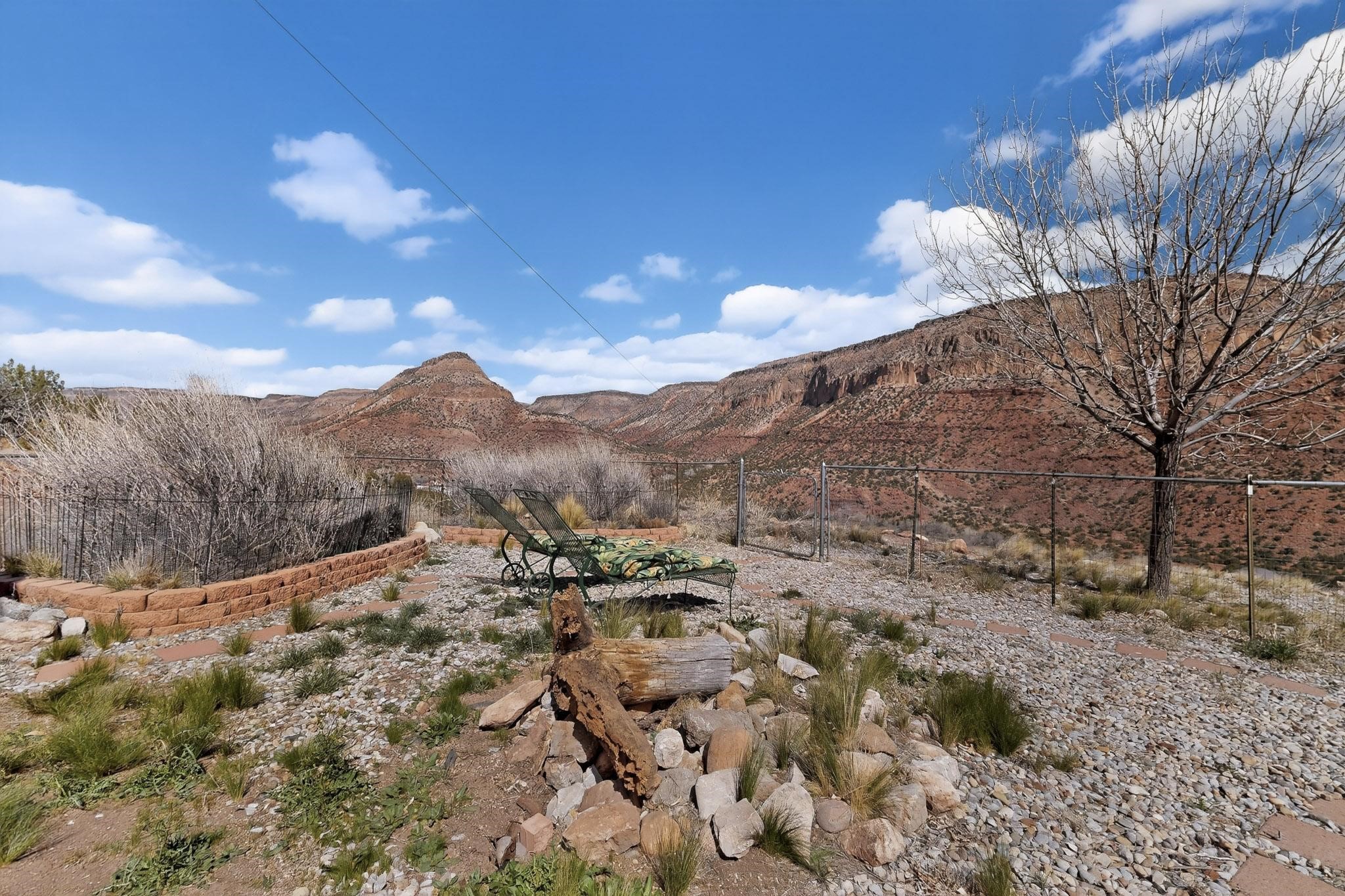 An Elevated Southwest experience on 5.75 acres set against breathtaking Red Mesas of Jemez, capturing expansive VIEWS & exceptional seclusion in a private end of road setting. Enter through courtyard garden into great room, high wood beam ceilings & Radiant Saltillo tile throughout. Spacious kitchen w/ island opens seamlessly for gathering & entertaining. Meticulously cared for, this property reflects lasting quality. Beautiful, spacious primary suite w/ private bath & walk in closet. Comfortable enclosed sunroom w/ hot tub for year round relaxation. Outside, Casita beautifully finished in matching materials, perfect for guests or multigenerational living. Newer TPO roof, 2 fireplaces, laundry room, oversized finished 2 car garage w/ workshop & generator, plus additional studio & RV PAD.At the crown of established Tower Ridge Road, this bespoke retreat commands sweeping red rock views and a rare sense of privacy. The home enjoys a naturally elevated setting where surrounding residences remain respectfully set apart, while direct access to bordering public land opens to miles of unspoiled landscape and quiet exploration. Pella windows throughout, complemented by automated skylights with remote controlled venting a. The spacious primary suite, well appointed bath, walk in closet. The laundry room offers thoughtful functionality. Throughout the home, doors, cabinetry crafted from hardwood, coordinated hardware.The detached casita offers exceptional flexibility for guests or extended stays, wood burning stove, radiant floor heat, Evap. cooler, heating, private bath.Detached studio annex heating /cooling wall unit 3 skylights, ambient diffusing shade screens, offering exceptional versatility for art, yoga, storage, studio work, a wood shop, light industrial projects.An oversized finished 2 car garage, storage or projects. A propane powered generator is also included. Full tiled sunroom with a nice hot-tubFurniture may be available with an acceptable offer.