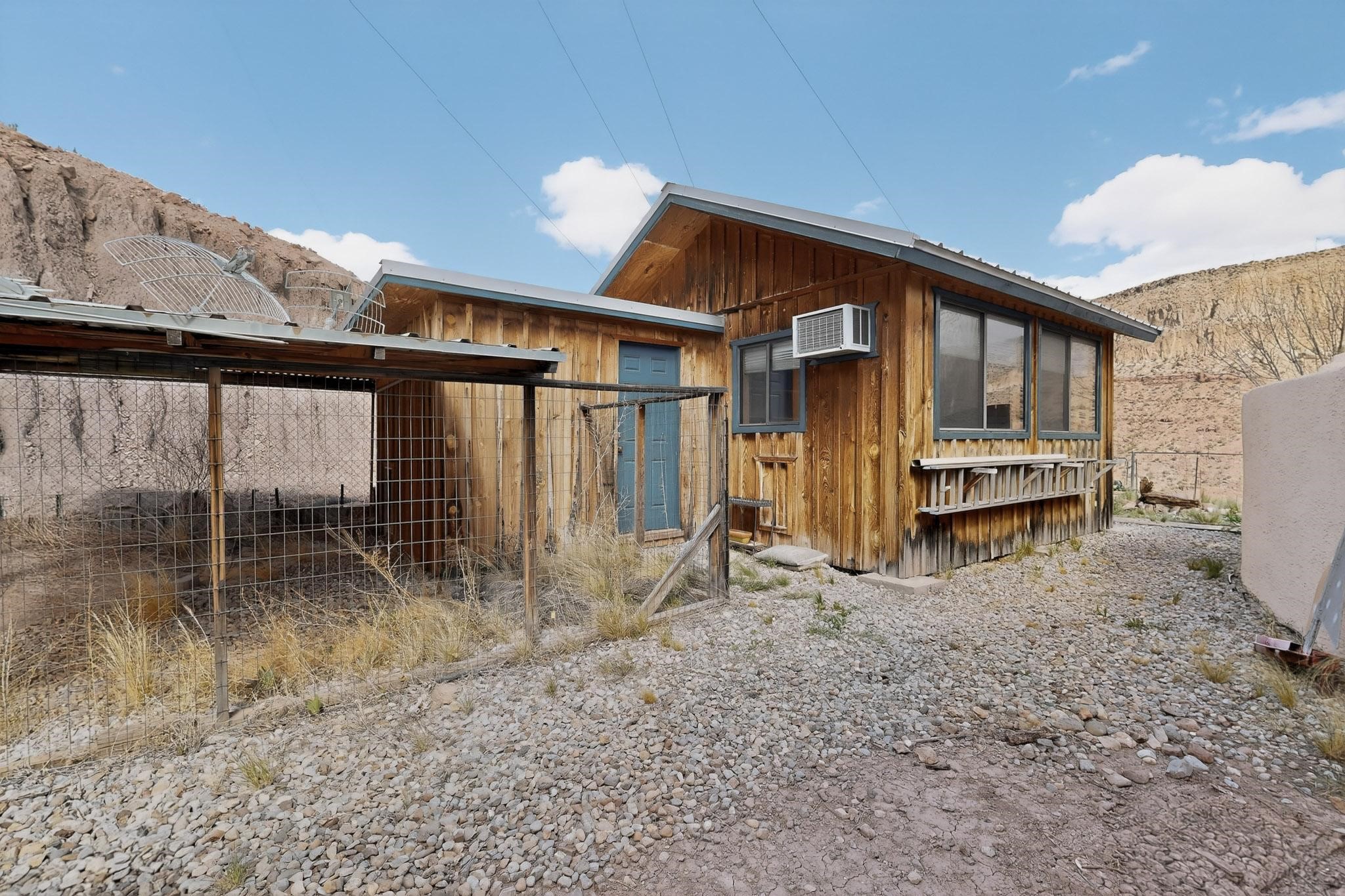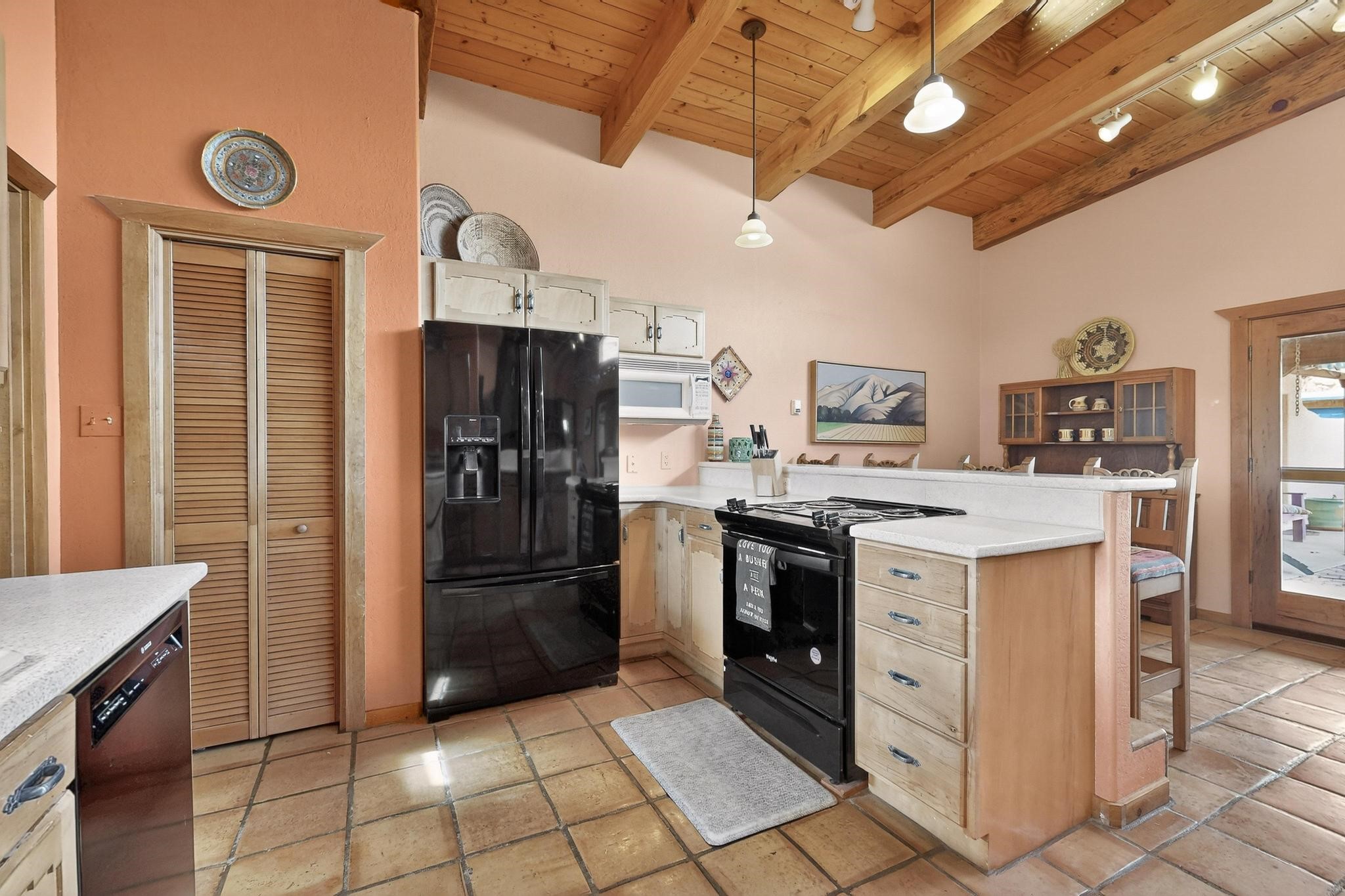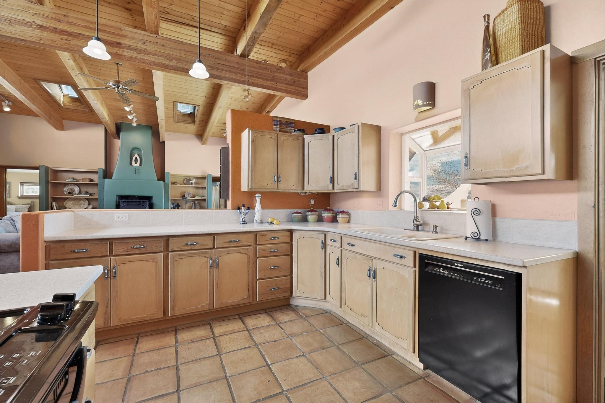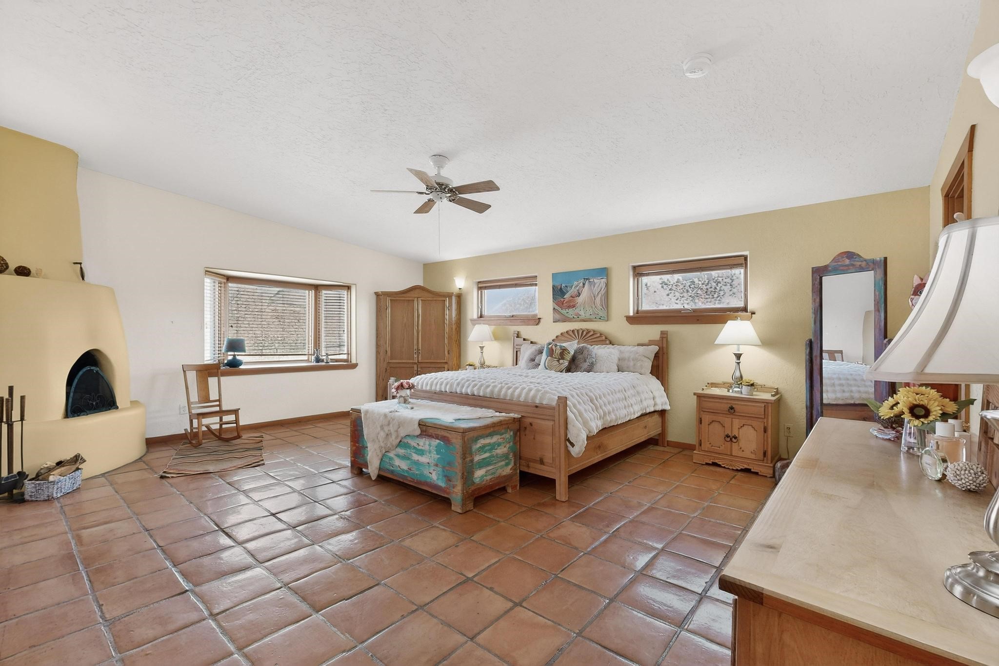 An Elevated Southwest experience on 5.75 acres set against breathtaking Red Mesas of Jemez, capturing expansive VIEWS & exceptional seclusion in a private end of road setting. Enter through courtyard garden into great room, high wood beam ceilings & Radiant Saltillo tile throughout. Spacious kitchen w/ island opens seamlessly for gathering & entertaining. Meticulously cared for, this property reflects lasting quality. Beautiful, spacious primary suite w/ private bath & walk in closet. Comfortable enclosed sunroom w/ hot tub for year round relaxation. Outside, Casita beautifully finished in matching materials, perfect for guests or multigenerational living. Newer TPO roof, 2 fireplaces, laundry room, oversized finished 2 car garage w/ workshop & generator, plus additional studio & RV PAD.At the crown of established Tower Ridge Road, this bespoke retreat commands sweeping red rock views and a rare sense of privacy. The home enjoys a naturally elevated setting where surrounding residences remain respectfully set apart, while direct access to bordering public land opens to miles of unspoiled landscape and quiet exploration. Pella windows throughout, complemented by automated skylights with remote controlled venting a. The spacious primary suite, well appointed bath, walk in closet. The laundry room offers thoughtful functionality. Throughout the home, doors, cabinetry crafted from hardwood, coordinated hardware.The detached casita offers exceptional flexibility for guests or extended stays, wood burning stove, radiant floor heat, Evap. cooler, heating, private bath.Detached studio annex heating /cooling wall unit 3 skylights, ambient diffusing shade screens, offering exceptional versatility for art, yoga, storage, studio work, a wood shop, light industrial projects.An oversized finished 2 car garage, storage or projects. A propane powered generator is also included. Full tiled sunroom with a nice hot-tubFurniture may be available with an acceptable offer.