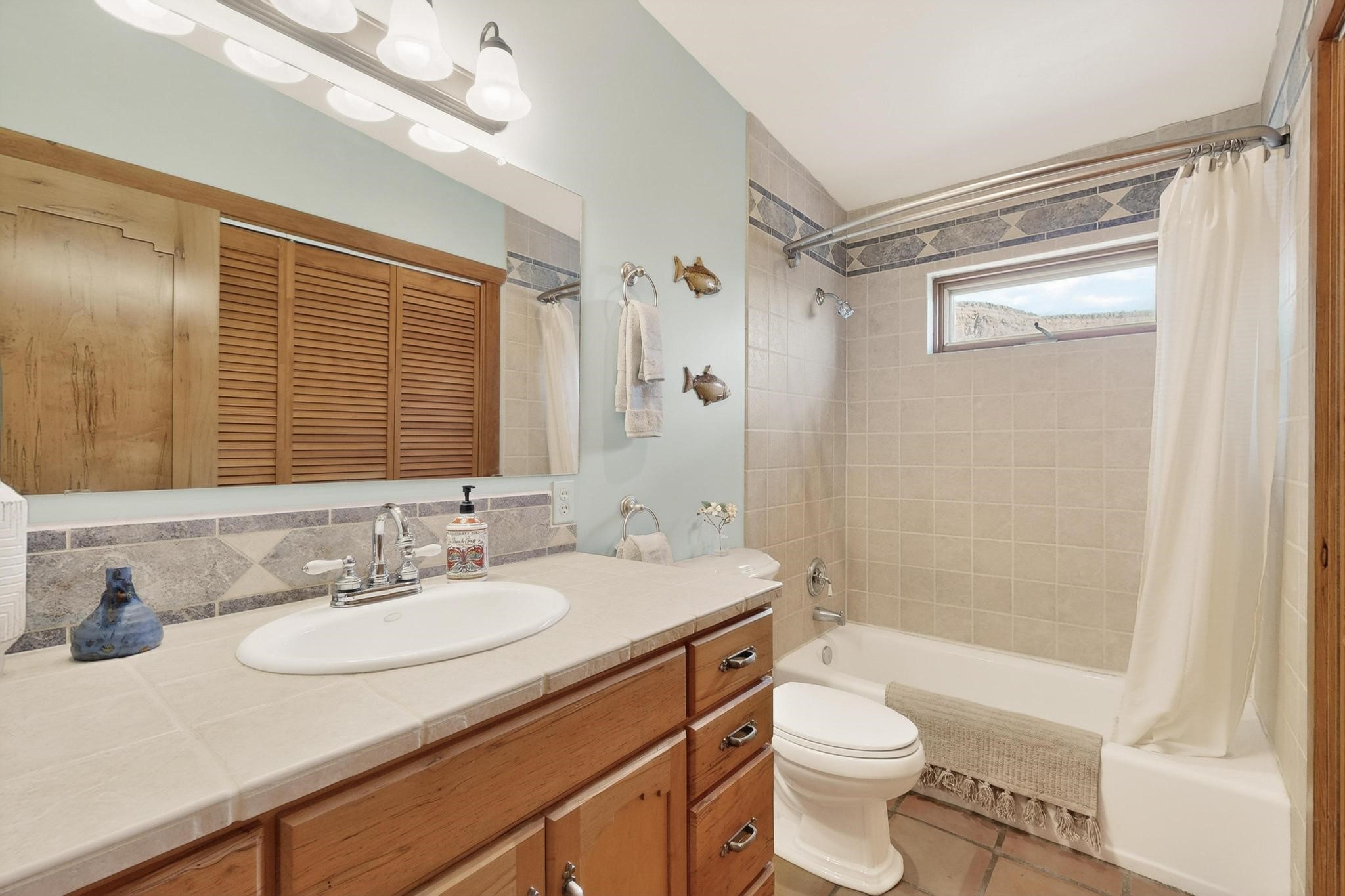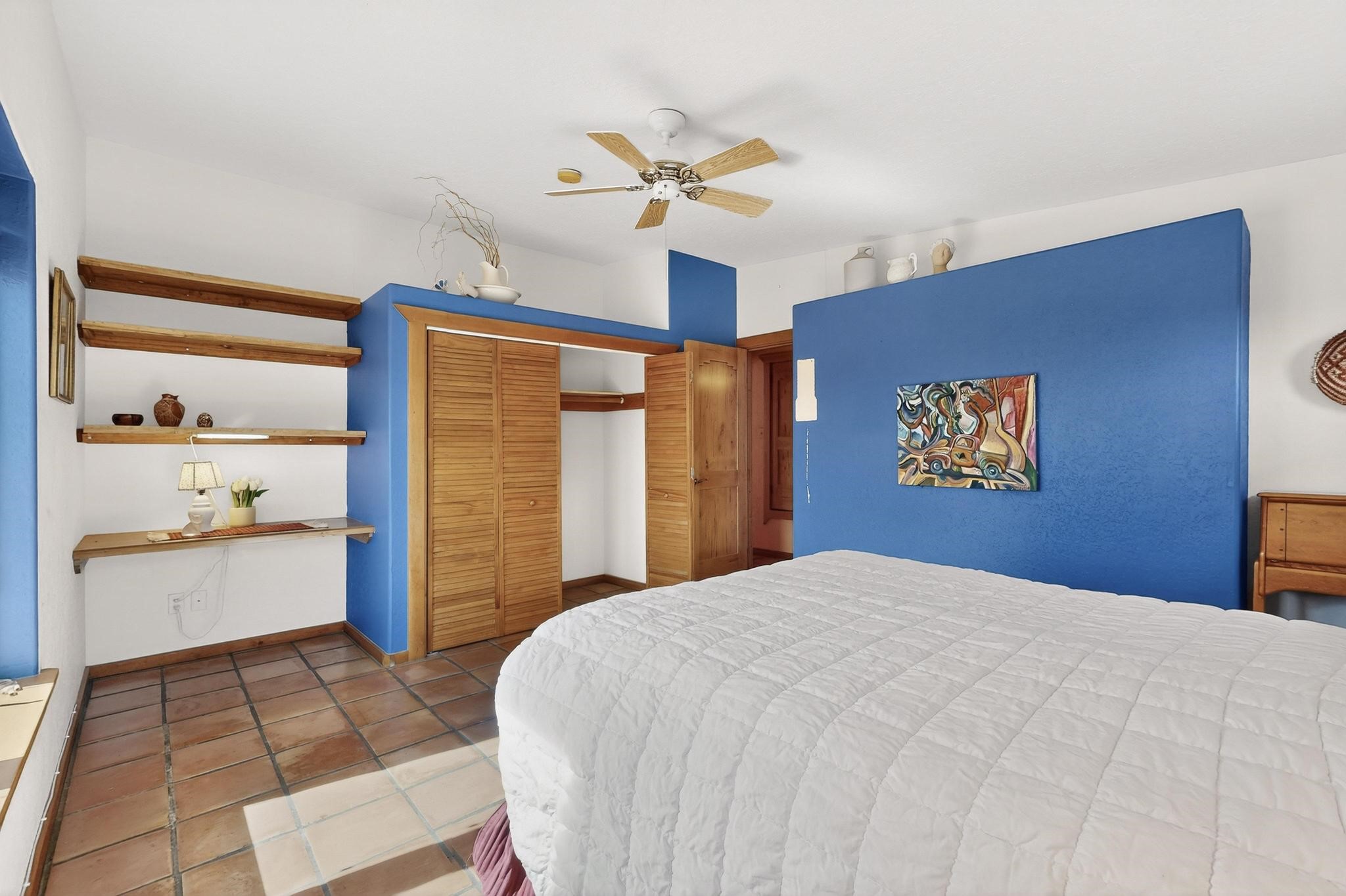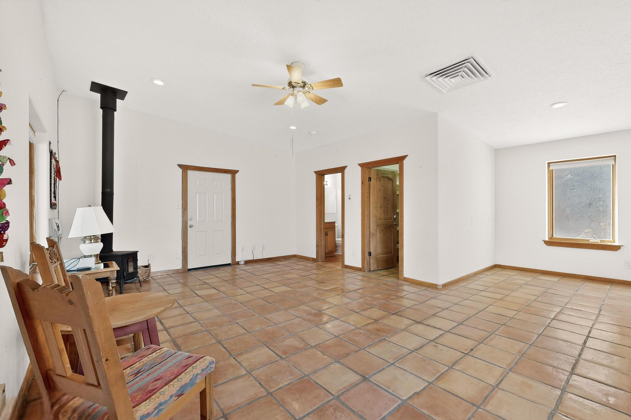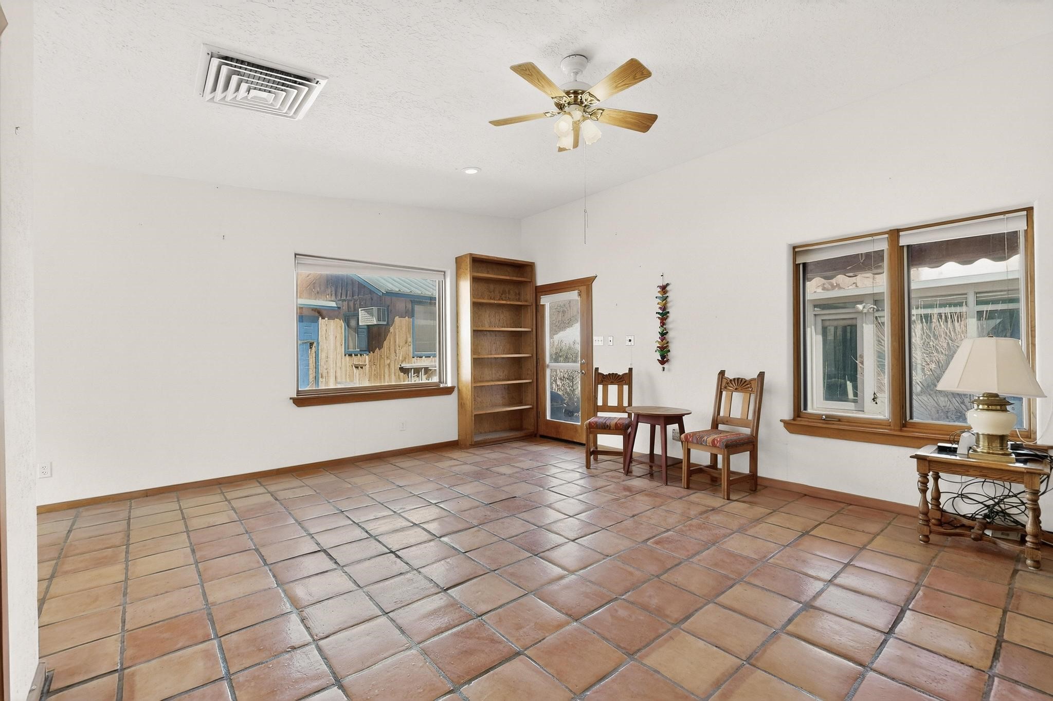 An Elevated Southwest experience on 5.75 acres set against breathtaking Red Mesas of Jemez, capturing expansive VIEWS & exceptional seclusion in a private end of road setting. Enter through courtyard garden into great room, high wood beam ceilings & Radiant Saltillo tile throughout. Spacious kitchen w/ island opens seamlessly for gathering & entertaining. Meticulously cared for, this property reflects lasting quality. Beautiful, spacious primary suite w/ private bath & walk in closet. Comfortable enclosed sunroom w/ hot tub for year round relaxation. Outside, Casita beautifully finished in matching materials, perfect for guests or multigenerational living. Newer TPO roof, 2 fireplaces, laundry room, oversized finished 2 car garage w/ workshop & generator, plus additional studio & RV PAD.At the crown of established Tower Ridge Road, this bespoke retreat commands sweeping red rock views and a rare sense of privacy. The home enjoys a naturally elevated setting where surrounding residences remain respectfully set apart, while direct access to bordering public land opens to miles of unspoiled landscape and quiet exploration. Pella windows throughout, complemented by automated skylights with remote controlled venting a. The spacious primary suite, well appointed bath, walk in closet. The laundry room offers thoughtful functionality. Throughout the home, doors, cabinetry crafted from hardwood, coordinated hardware.The detached casita offers exceptional flexibility for guests or extended stays, wood burning stove, radiant floor heat, Evap. cooler, heating, private bath.Detached studio annex heating /cooling wall unit 3 skylights, ambient diffusing shade screens, offering exceptional versatility for art, yoga, storage, studio work, a wood shop, light industrial projects.An oversized finished 2 car garage, storage or projects. A propane powered generator is also included. Full tiled sunroom with a nice hot-tubFurniture may be available with an acceptable offer.