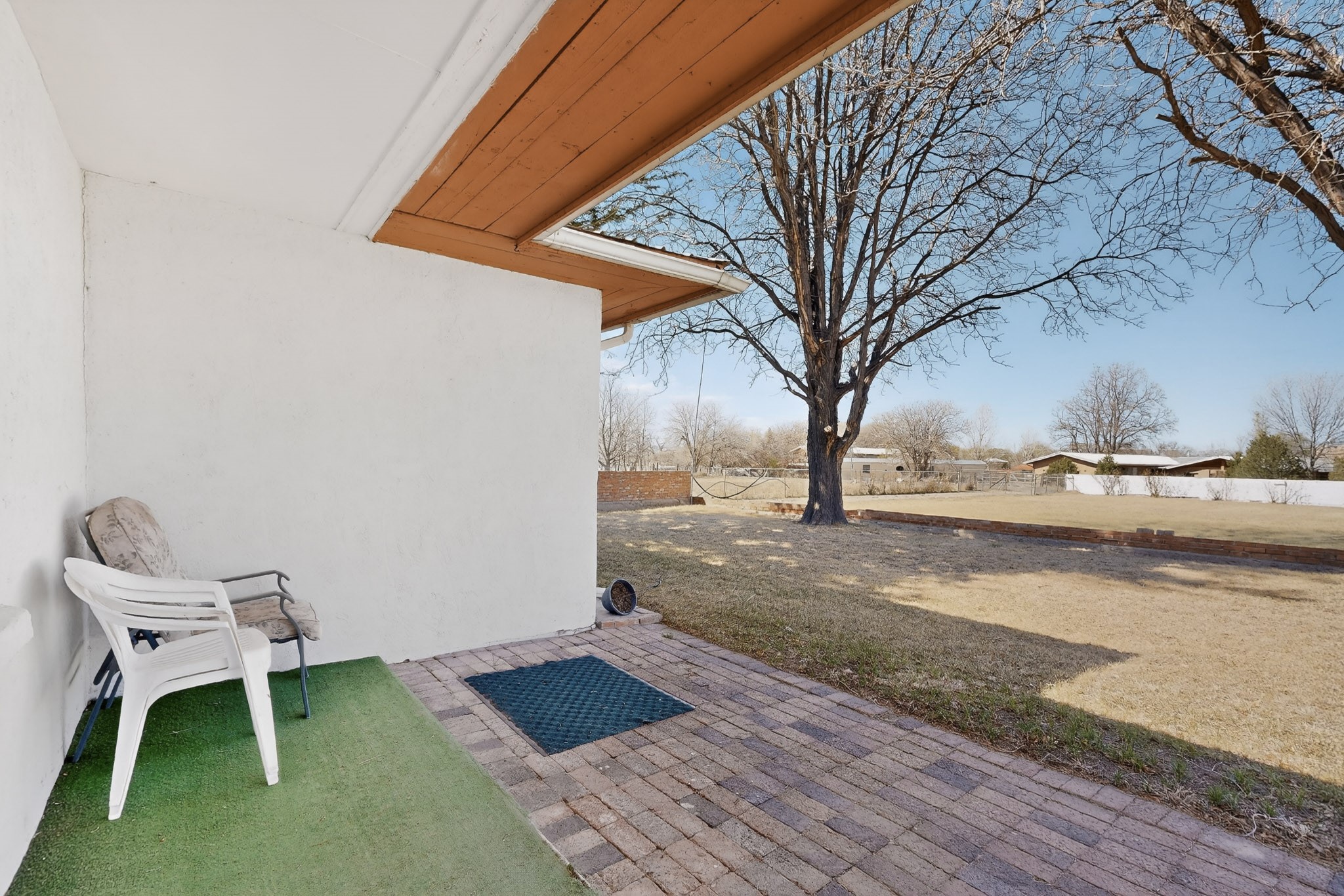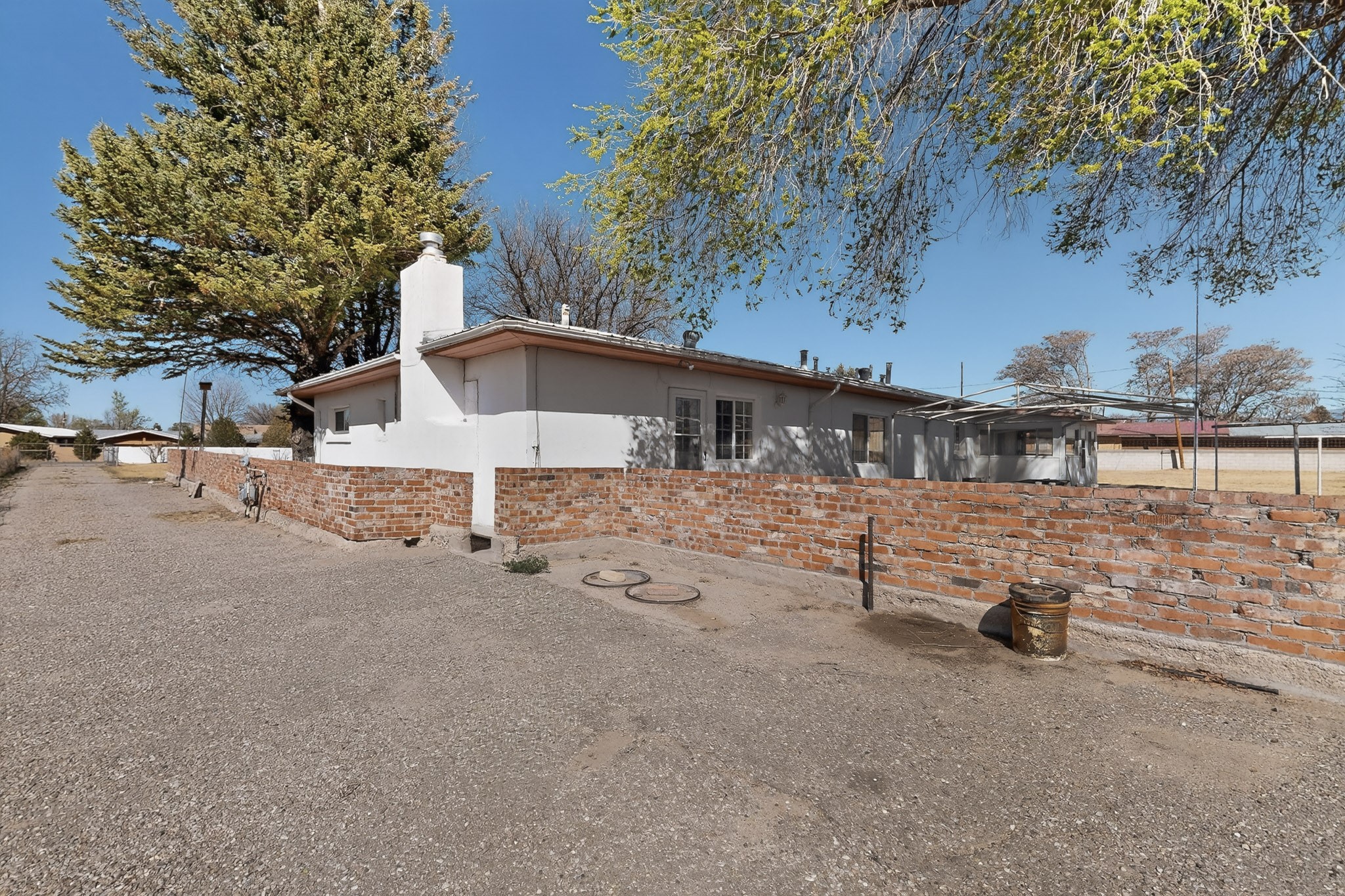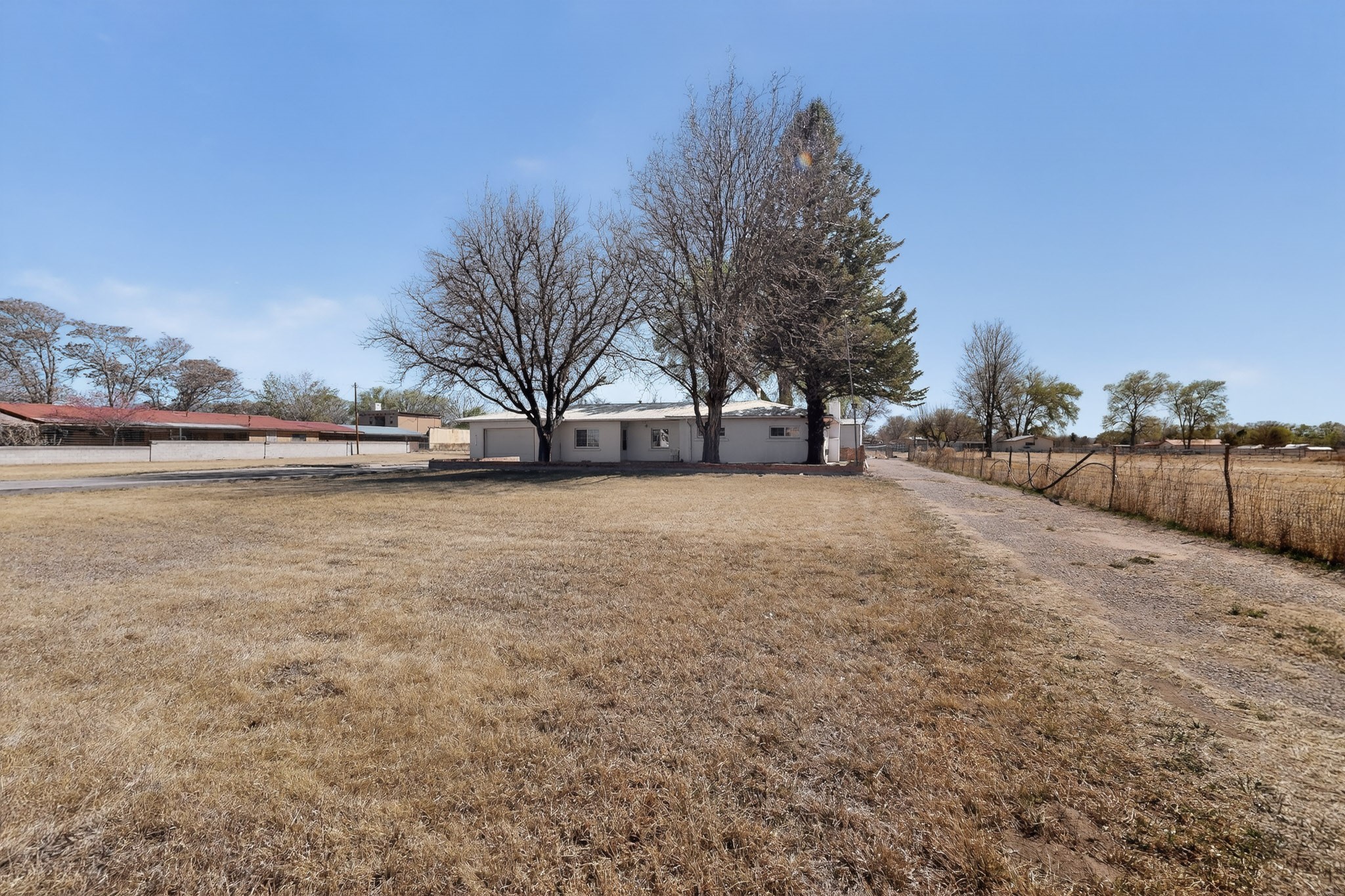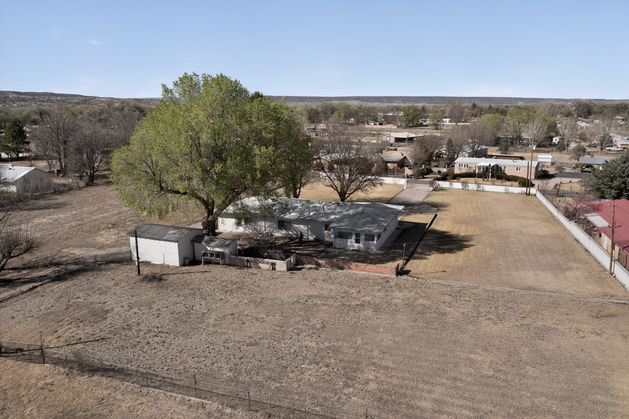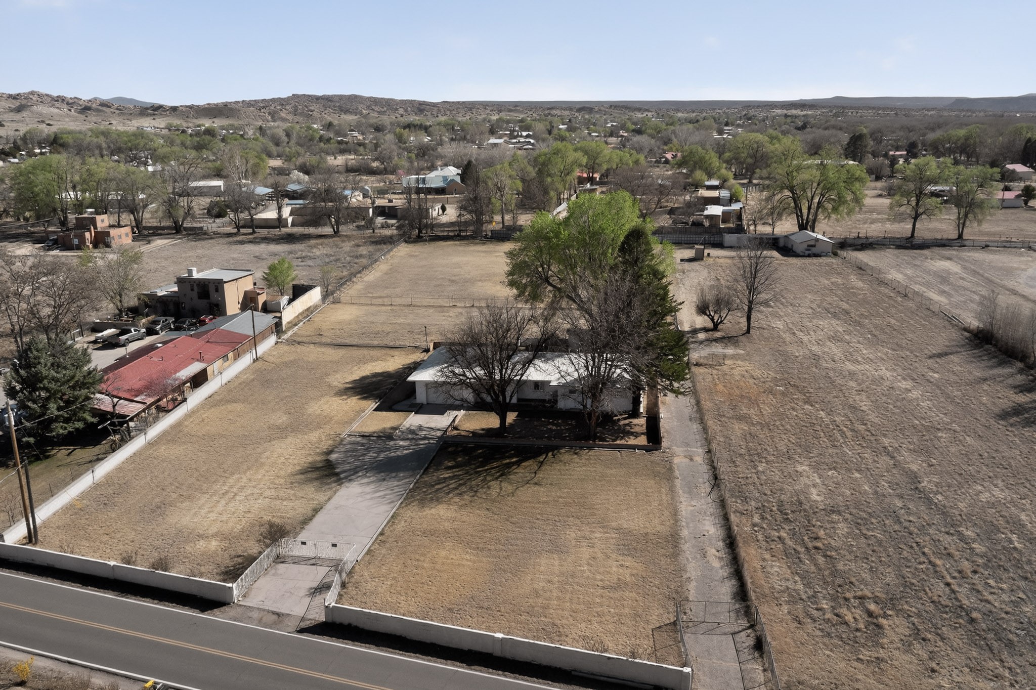 This charming adobe home is ready for its new owners to step inside and appreciate its potential. Featuring original oak wood flooring (currently under carpet), the interior offers a clean slate, allowing a buyer to easily personalize the space. The property includes a two-car garage and a lovely screened-in outdoor porch. The land (3.6 acres) is a fantastic feature, surrounded by mature vegetation. While mostly covered in grass now, it can be readily prepared for planting the buyer's choice of fruits, vegetables, and/or flowers. There is ample space for farm animals. For the avid gardener or farmer, the property is equipped with valuable irrigation rights and a dedicated extra well for working the soil. Outbuildings provide perfect storage for all landscaping and farming tools. This home and land are poised to become a dream dwelling for a family that enjoys a vibrant lifestyle, both indoors and out, surrounded by nature and the things they cherish.