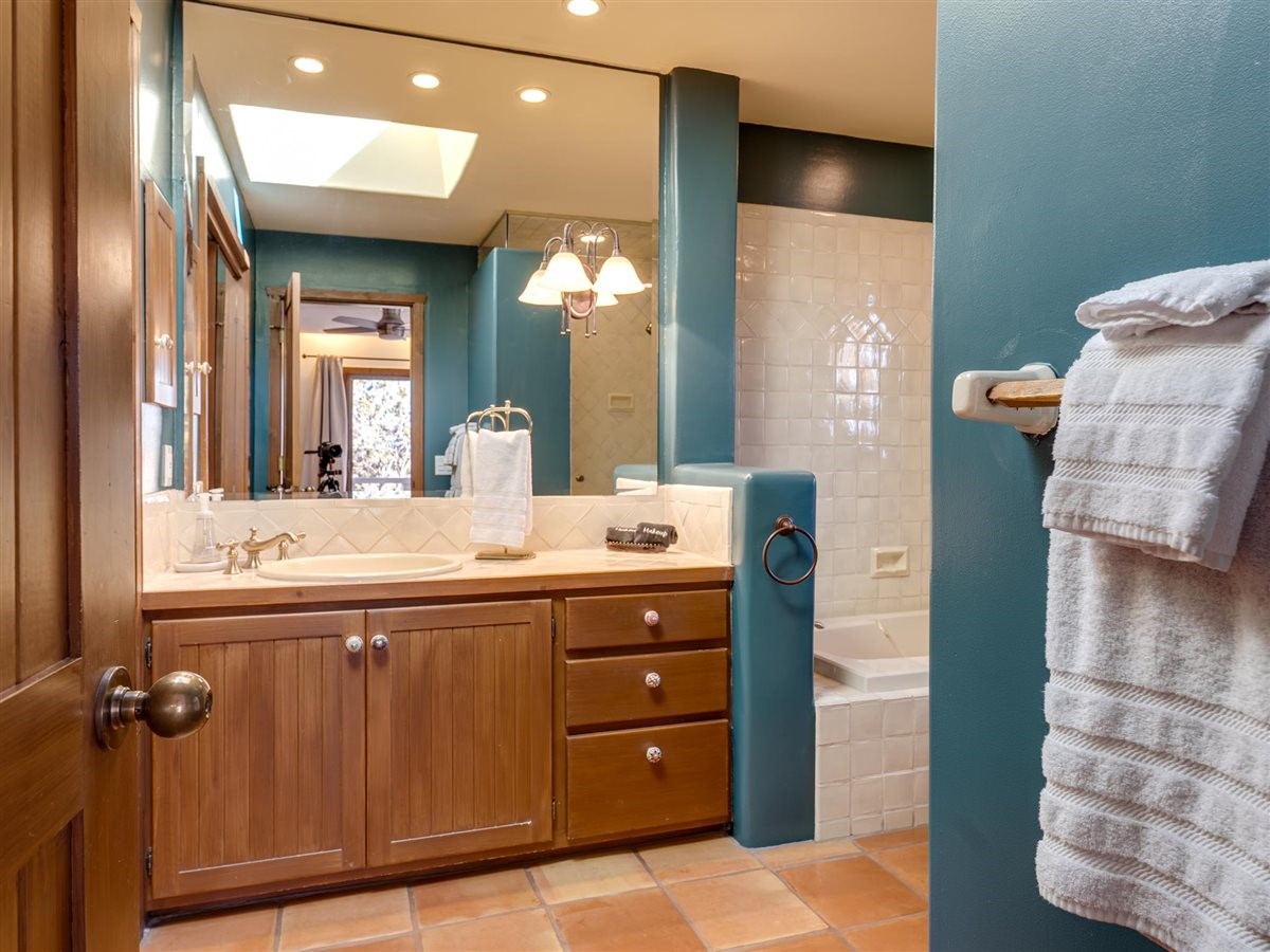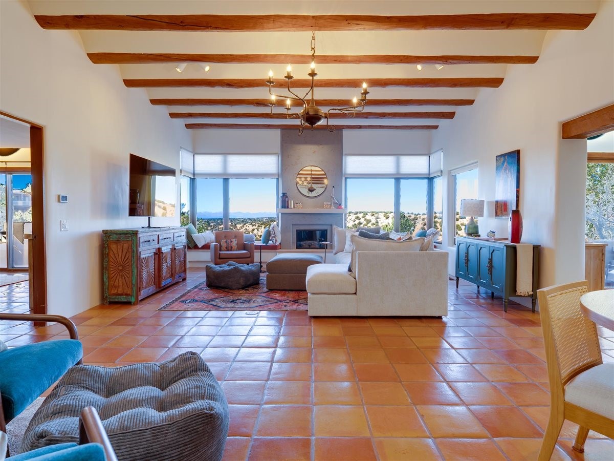 Extraordinary home in coveted 1000 East community off Hyde Park Road. Panoramic Jemez views greet you as you walk into this single level residence. Welcoming great room, beautiful dining area, brand new kitchen and primary suite all capture the magical light and expansive views. Beautiful design features throughout include elevated, coved ceilings, skylights, saltillo tiles & fireplaces. This stand alone condo features 3 bedrooms and 2 full baths with an attached 2 car garage (with cedar closet!). The private patio expands your living space with alfresco dining and seating to enjoy the twinkling lights and stargazing. Newly renovated... New roof, new stucco, new skylights. Completely painted inside and out. Total kitchen renovation includes custom cabinets, quartz countertops, hardware, plumbing and light fixtures, new Bosch refrigerator and dishwasher. Ideal location makes this perfect for full time residence or as a Santa Fe retreat. Just minutes from the plaza with shopping, dining and the arts close by. Head up the mountain to the trails for hiking...or a short drive up to Ski Santa Fe. Make this your new home!